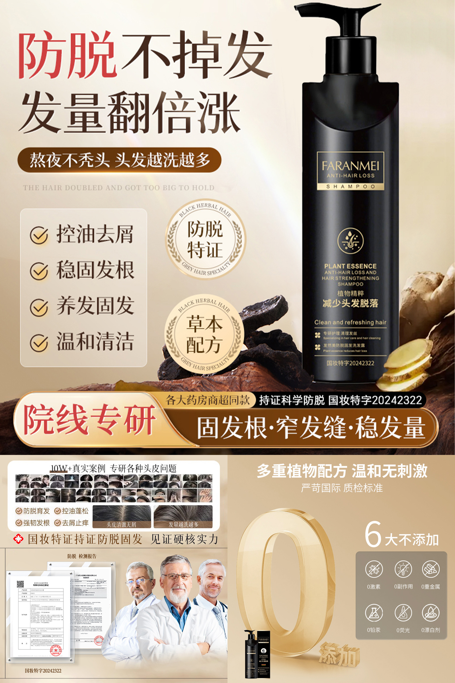 山姆断货王【发然美防脱固发洗发露】顺滑滋养去屑,持证上岗防脱啦添加多种草本成分,滋养毛发,强韧发根√拥有防脱特证,持证上岗,温和高效去屑,缓解头皮炎症!