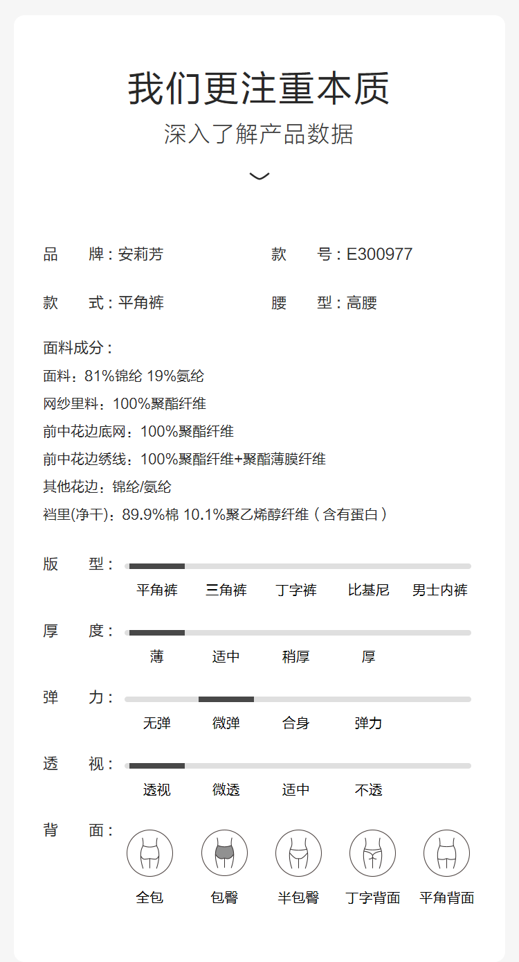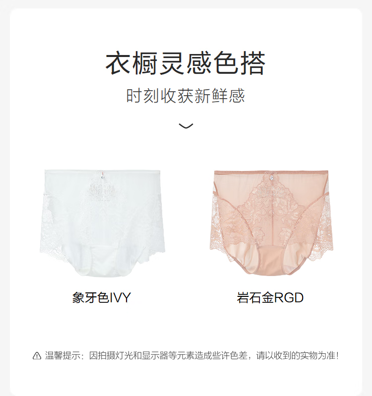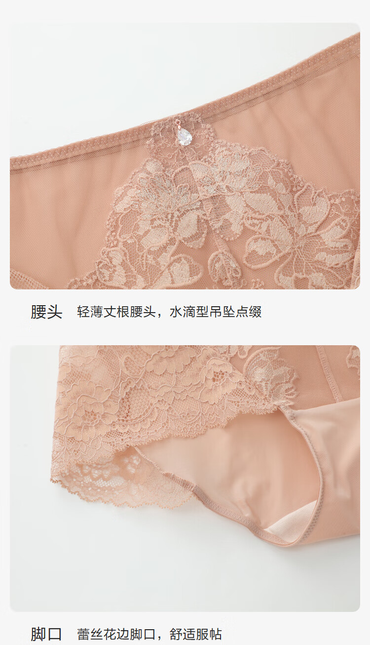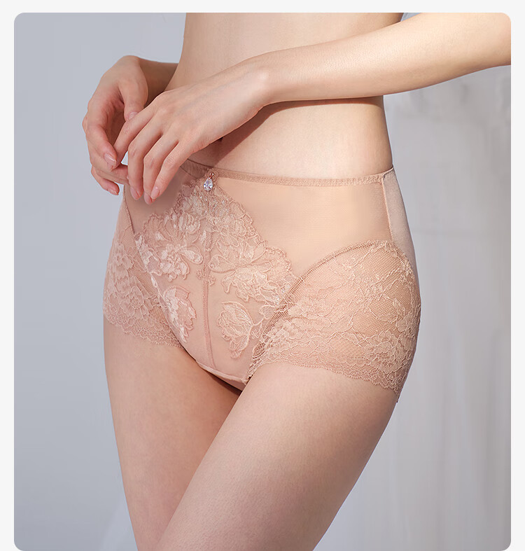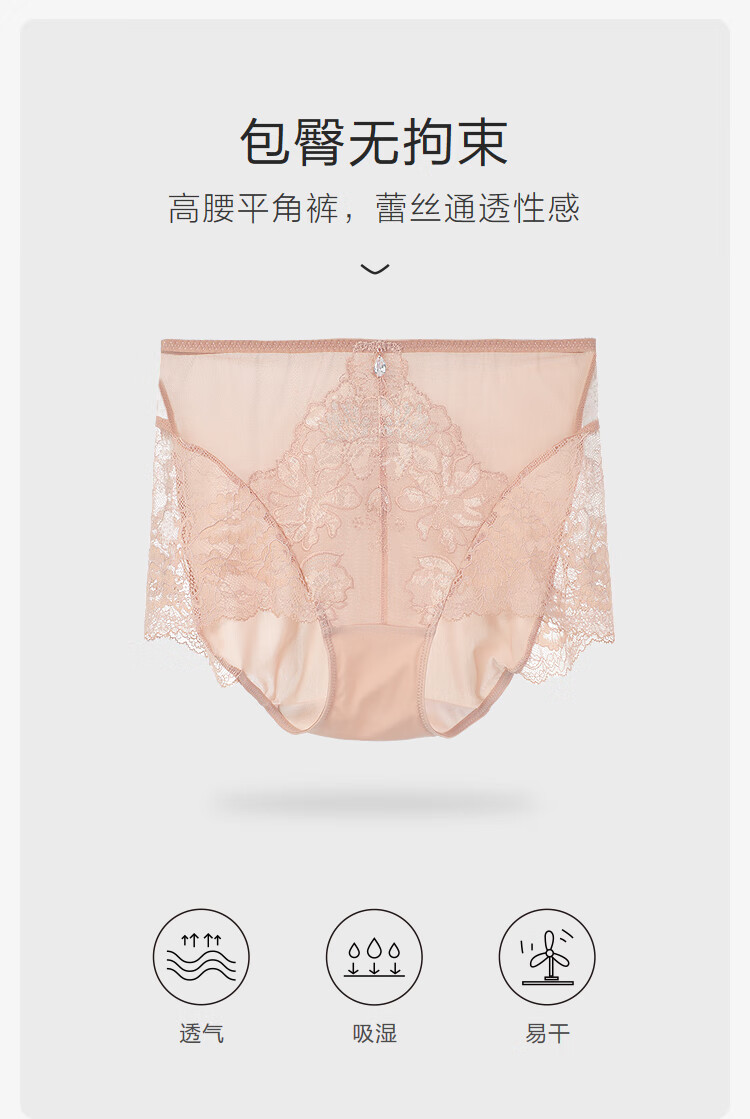 【3F】安莉芳蕾丝通透性感高腰平角裤舒适透气女士内裤E300977