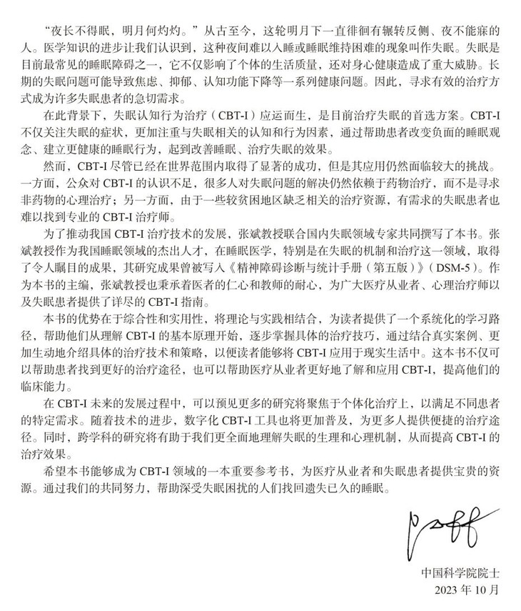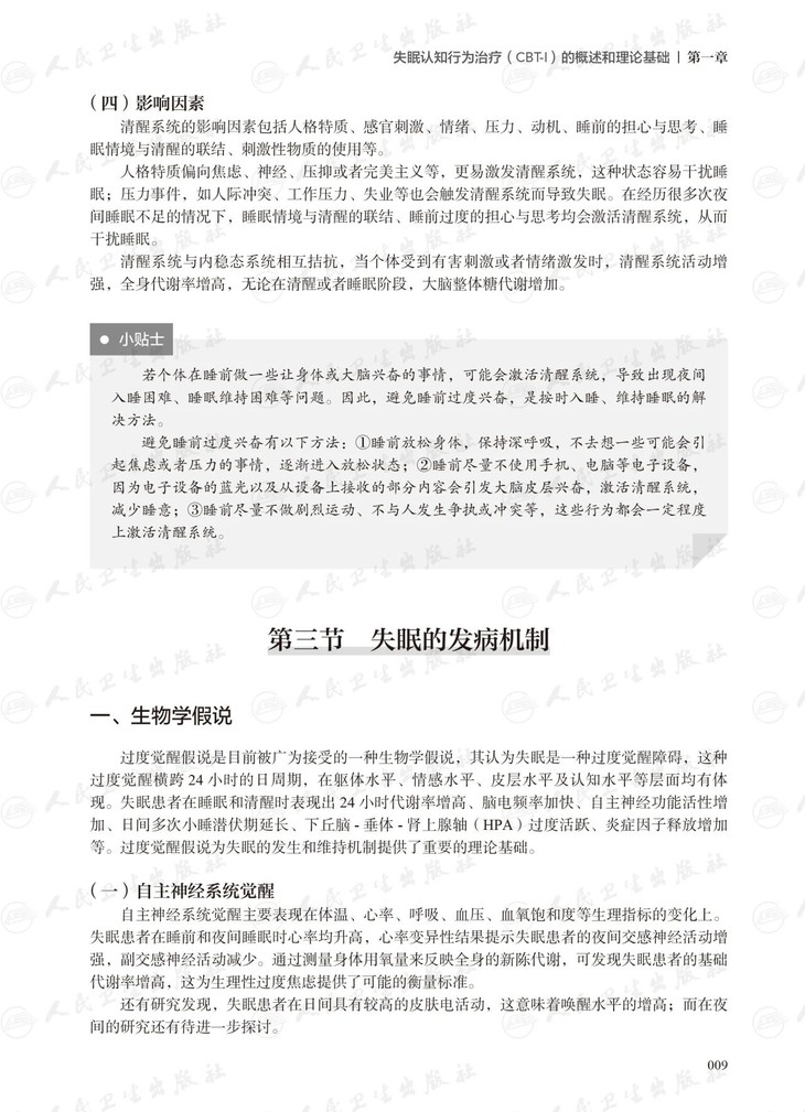 本书兼具综合性和实用性,将理论与实践相结合,为读者提供了一个系统化的学习路径,帮助理解CBT-I的基本原理,逐步掌握具体的治疗技巧,通过结合真实案例、生动地介绍具体的治疗技术和策略,以便读者能够将CBT-I应用于现实生活中。