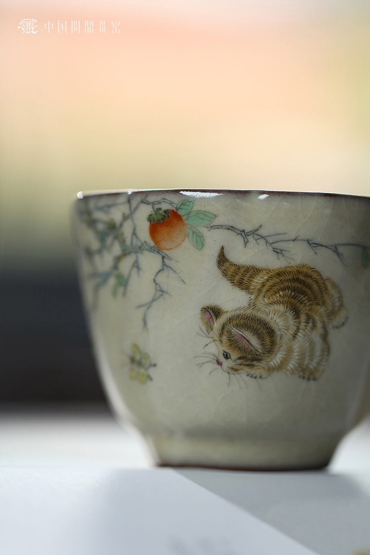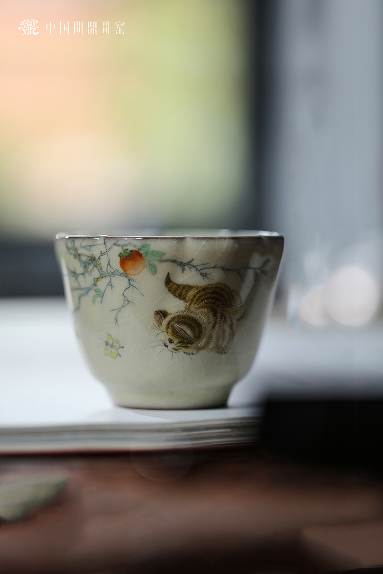 问鼎哥窑传世款旋花杯(猫蝶相戏)