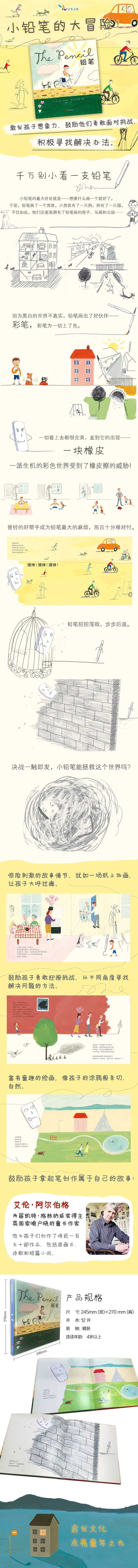 在英国,艾伦阿尔伯格可谓是家喻户晓的童书作家。在过去的三十多年里,他为孩子们创作了将近一百五十部作品,包括图画书、诗歌和短篇小说。作为文字作者,阿尔伯格以幽默简洁的语言和天马行空的想象力构思了许多古灵精怪的故事,譬如穿越时空去给灰姑娘、小红帽等经典童话主角送信的《快乐邮递员》(The Jolly Postman),还有本书中那支蠢蠢欲动、画出无数种可能的《铅笔》(The Pencil)。读过这些作品的大人们通常会感慨,阿尔伯格的故事真是让人脑洞大开;而孩子们却认为,阿尔伯格是真正懂得他们的人。