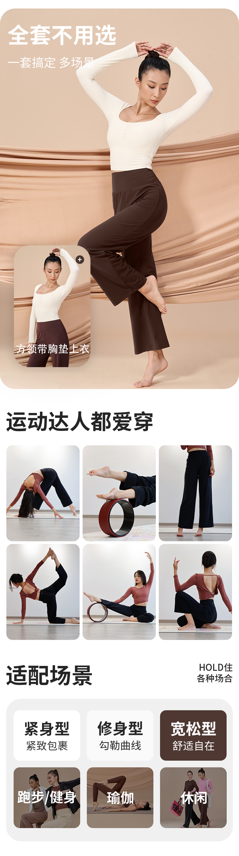 跃牌【海听系列】2025新款带胸垫纯欲性感修身瑜伽服短款方领纽扣长袖上衣XC55