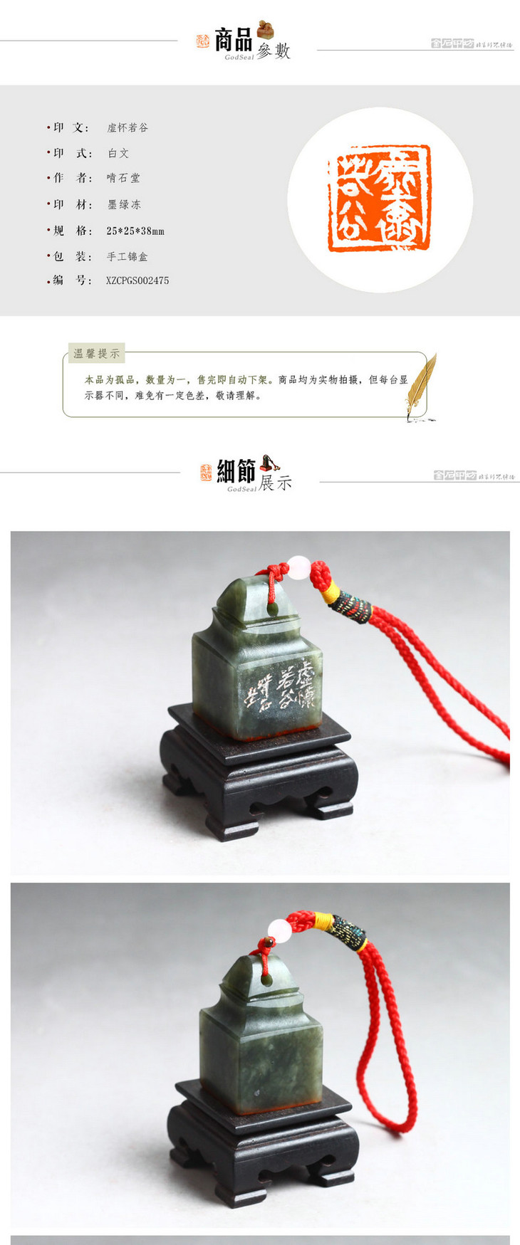 成品闲章:虚怀若谷 墨绿冻 啃石堂作品 XZCPGS002475