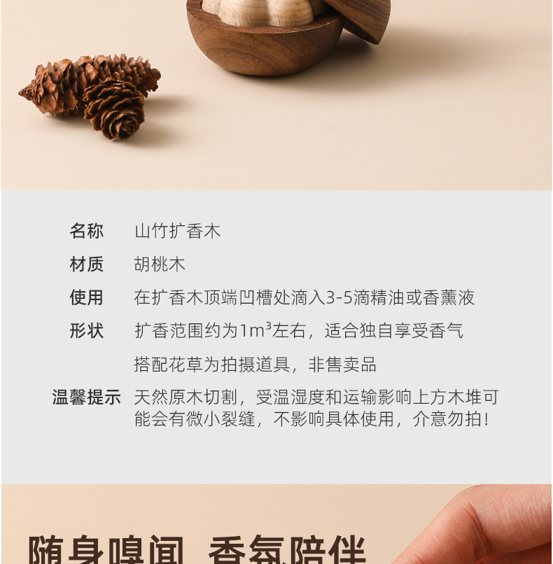 【以油养木,以木锁香!会扩散香气的木头】以有形载体,散发无形自然气息!扩香木山竹家用室内卧室摆件车载香薰精油扩香石无火扩香器随身