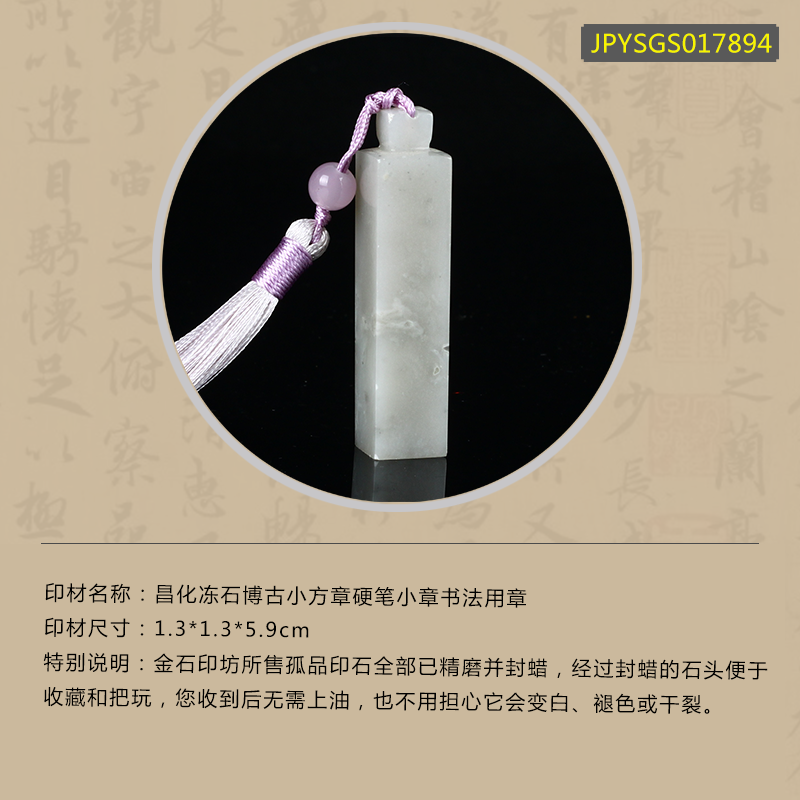 孤品17894昌化冻石博古小方章硬笔小章书法用章石1.3*1.3*5.9cm