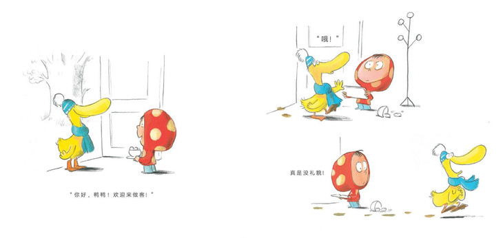 点点邀请好朋友鸭鸭来做客, 可是鸭鸭真是太没有礼貌了, 点点越来越生气……猜一猜,这对好朋友会怎样呢?