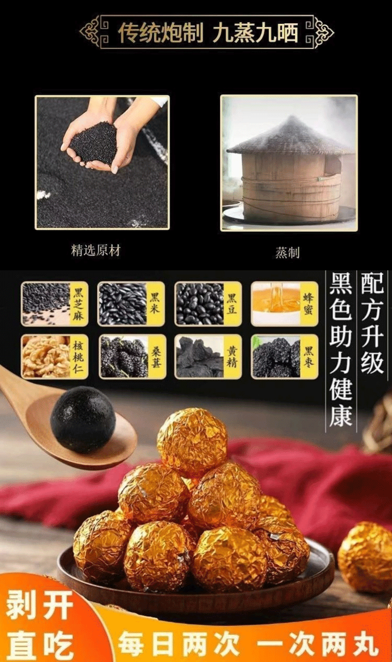 芝麻丸 黑芝麻丸养身丸黑芝麻丸养生肾丸九蒸九晒芝麻丸丸辟谷丸子芝麻球