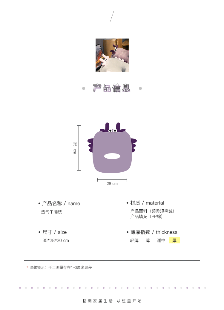 【家纺】可爱卡通毛绒可插手午休学生睡枕抱枕 神器多功能午睡暖手趴趴枕