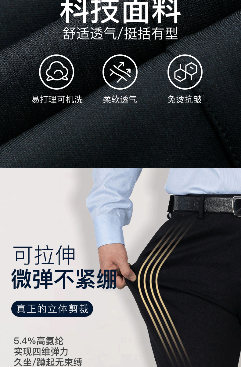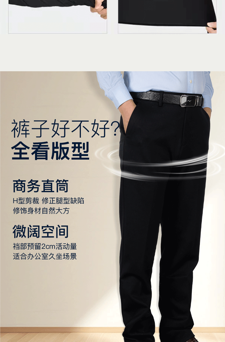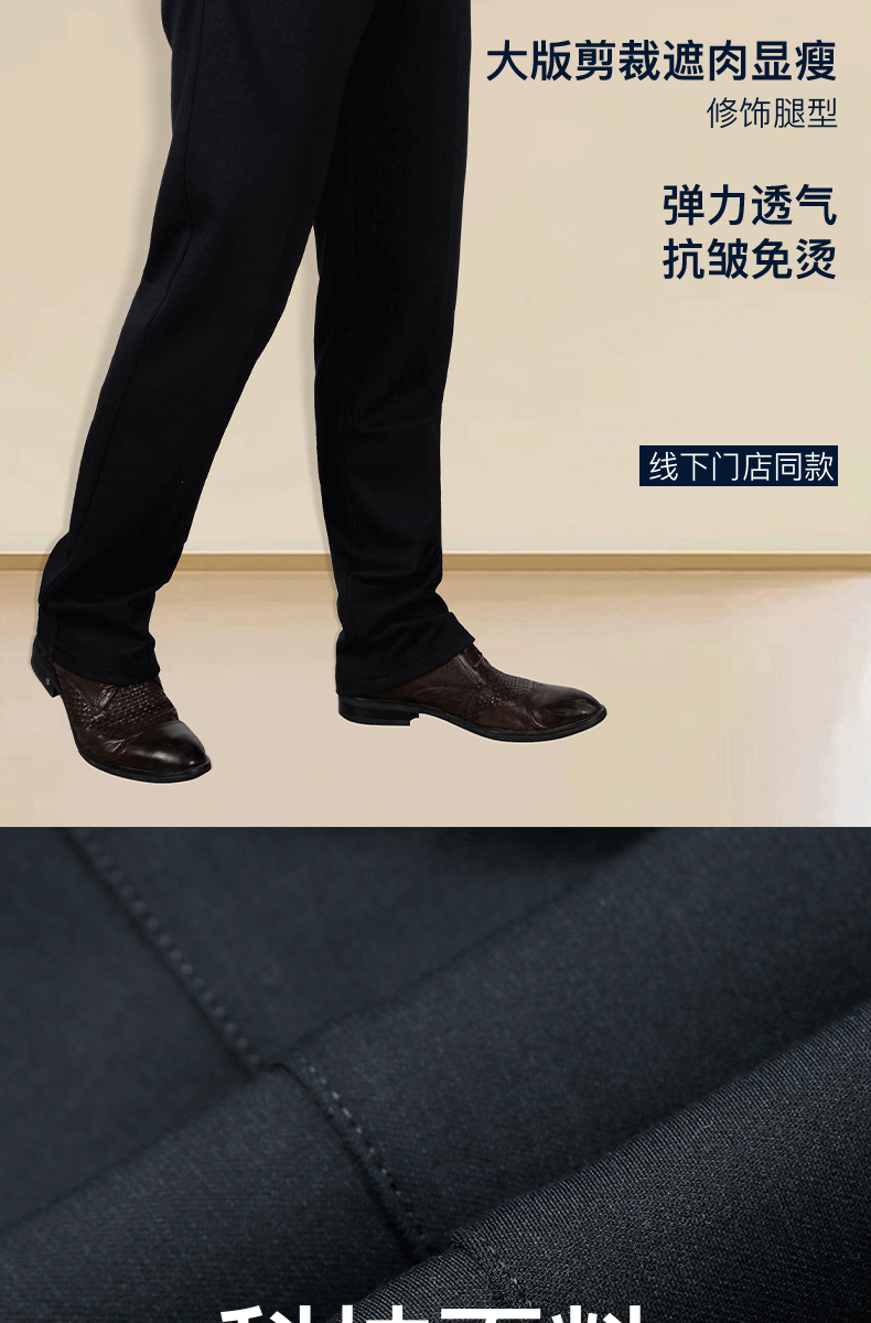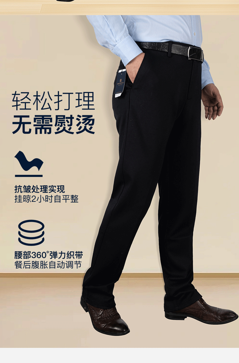 【限时特惠 直降100】占姆士男士直筒商务大版西裤微弹春秋长裤中老年爸爸免烫抗皱防皱