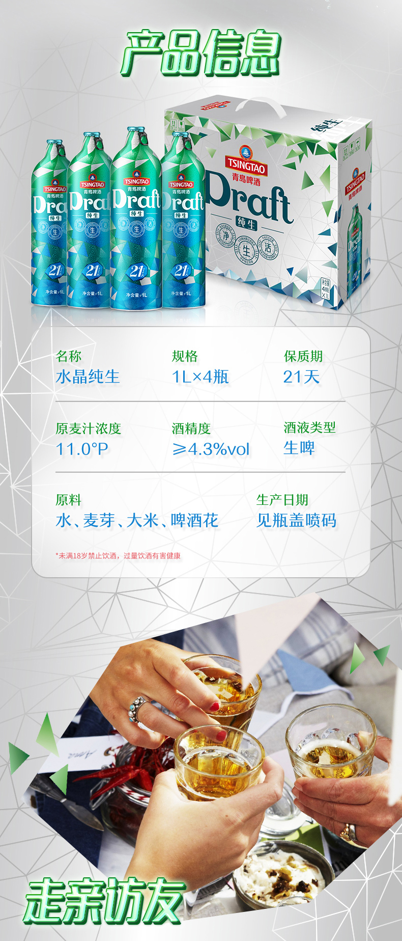 【预计12月3~4日生产发货】青岛啤酒水晶纯生1L*4瓶礼盒装 I啤酒