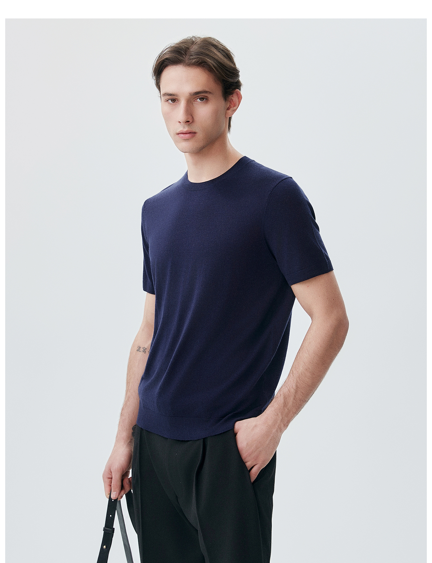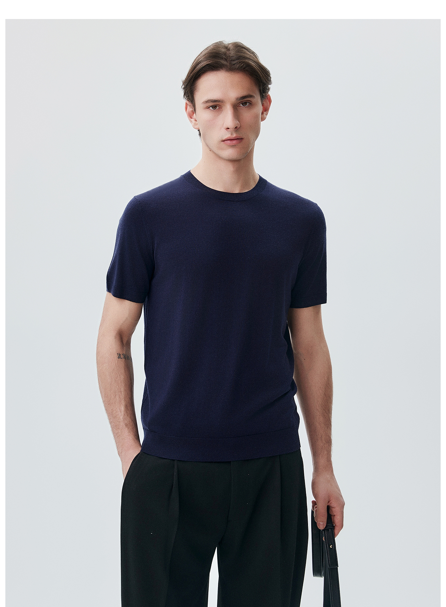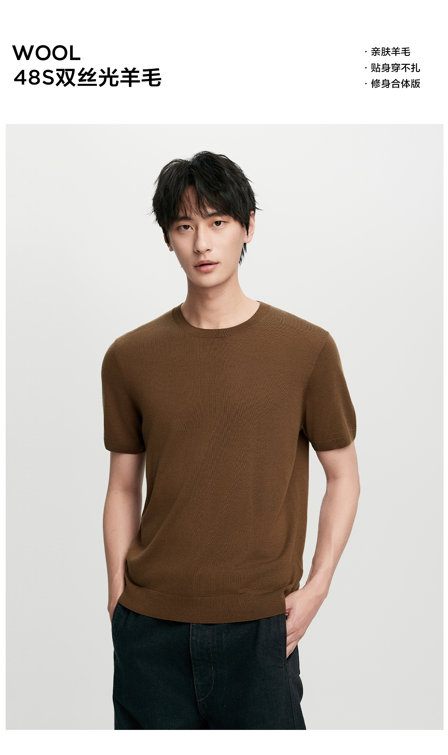 棉仓363801043-48支双 丝光羊毛 圆领短袖T