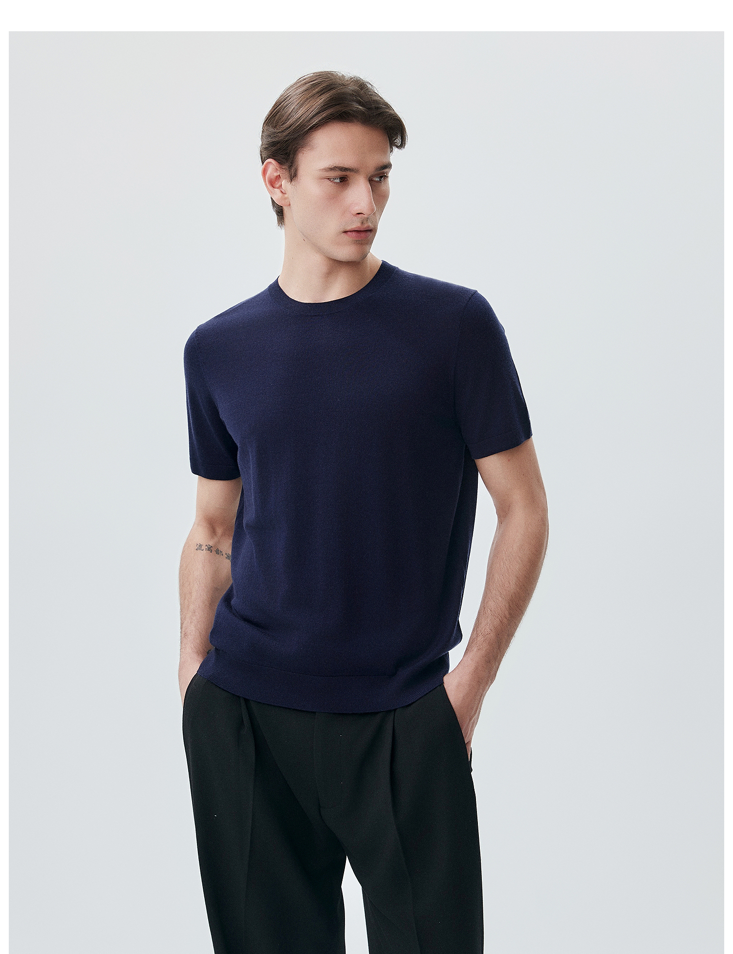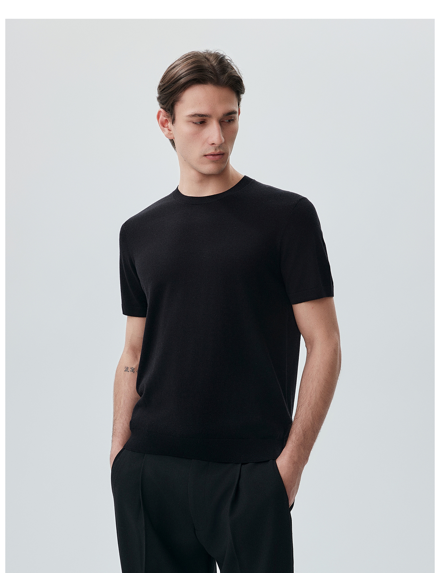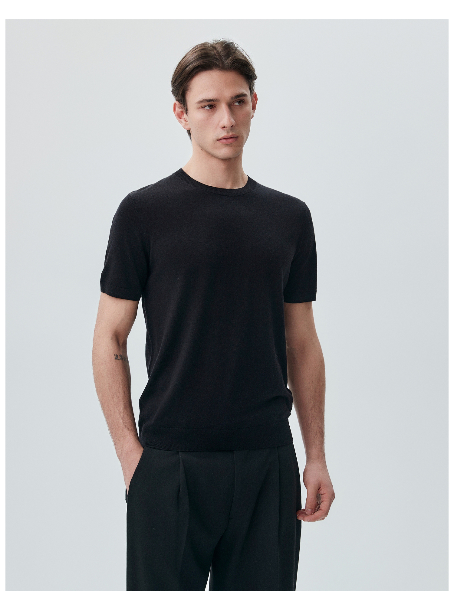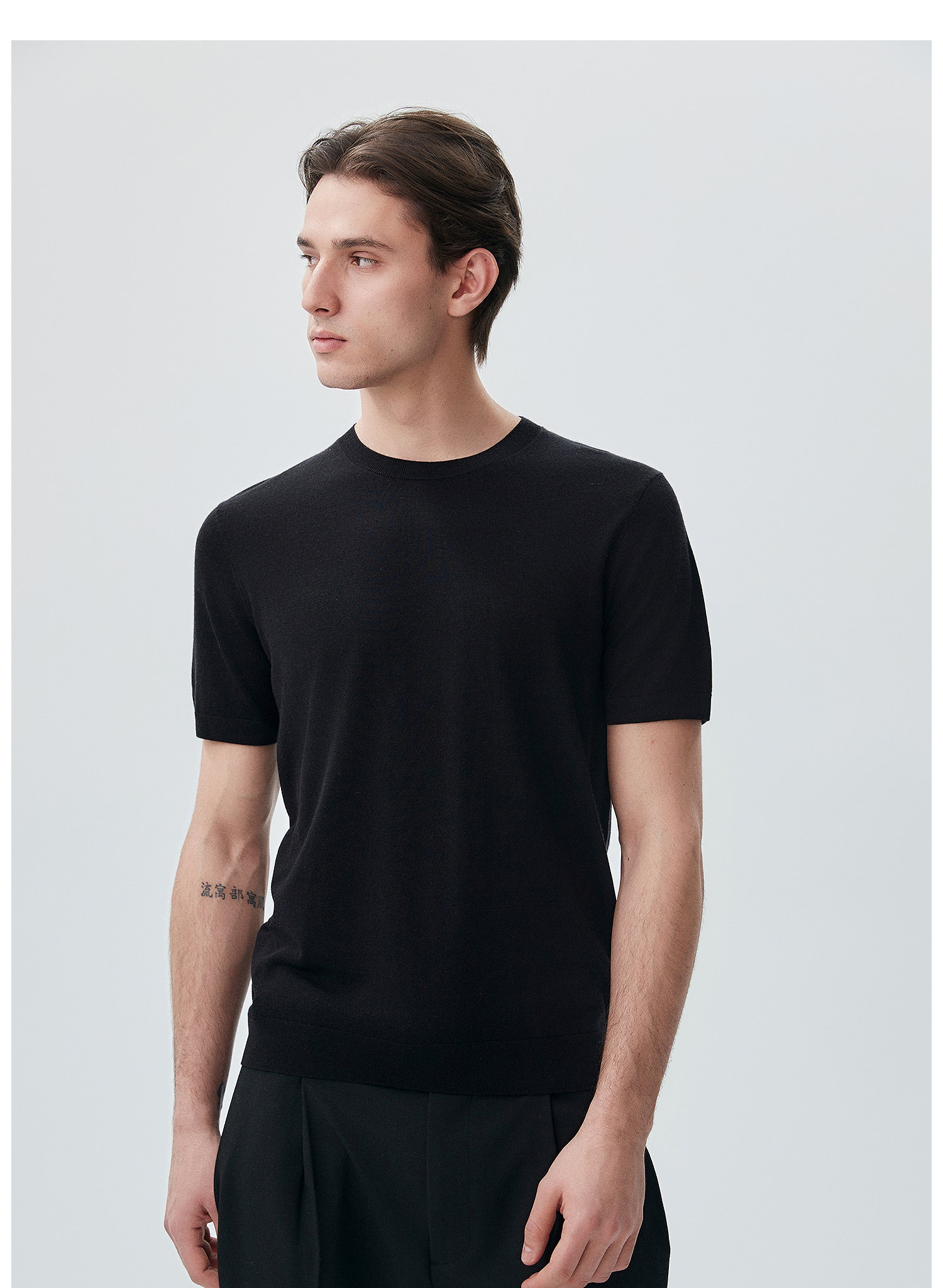 棉仓363801043-48支双 丝光羊毛 圆领短袖T