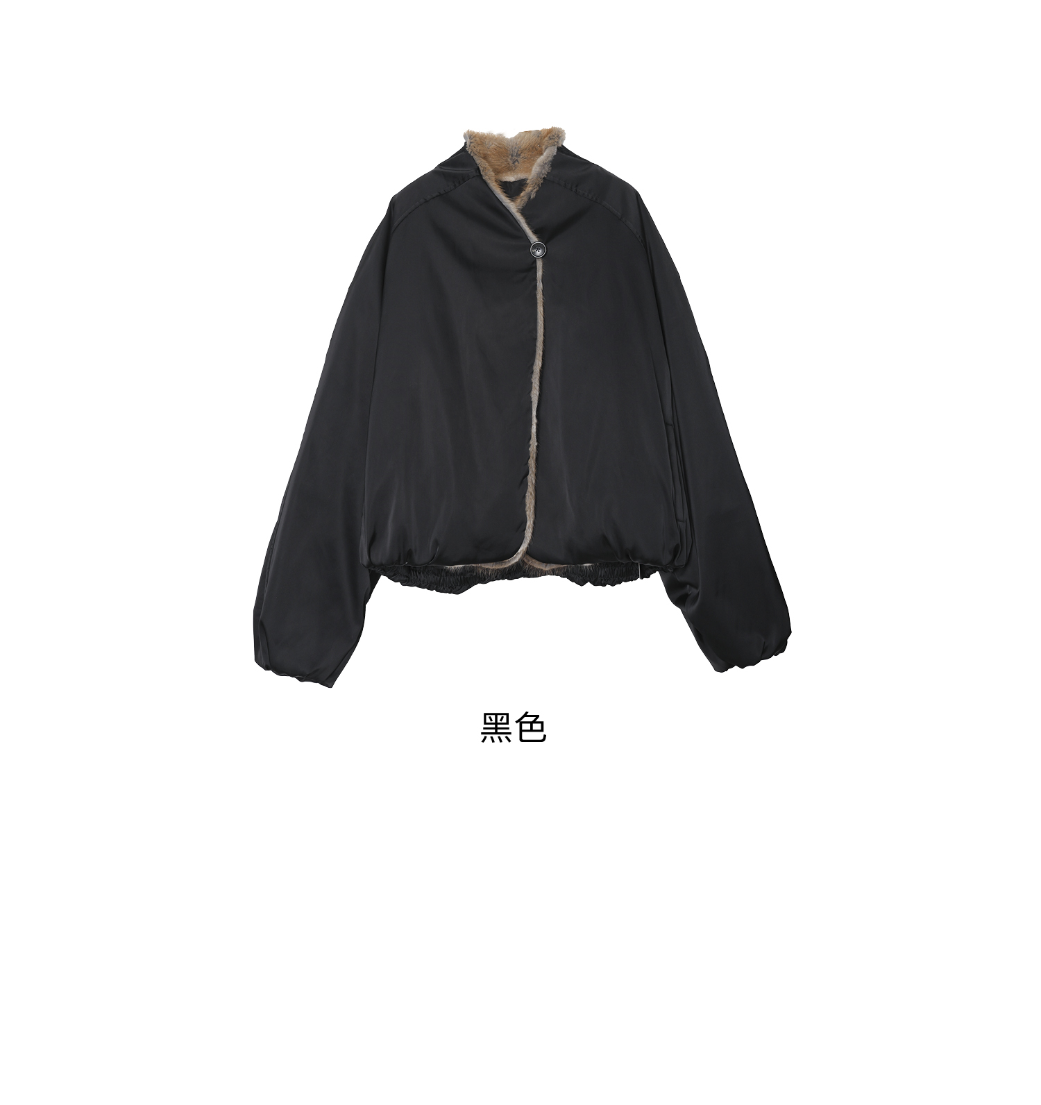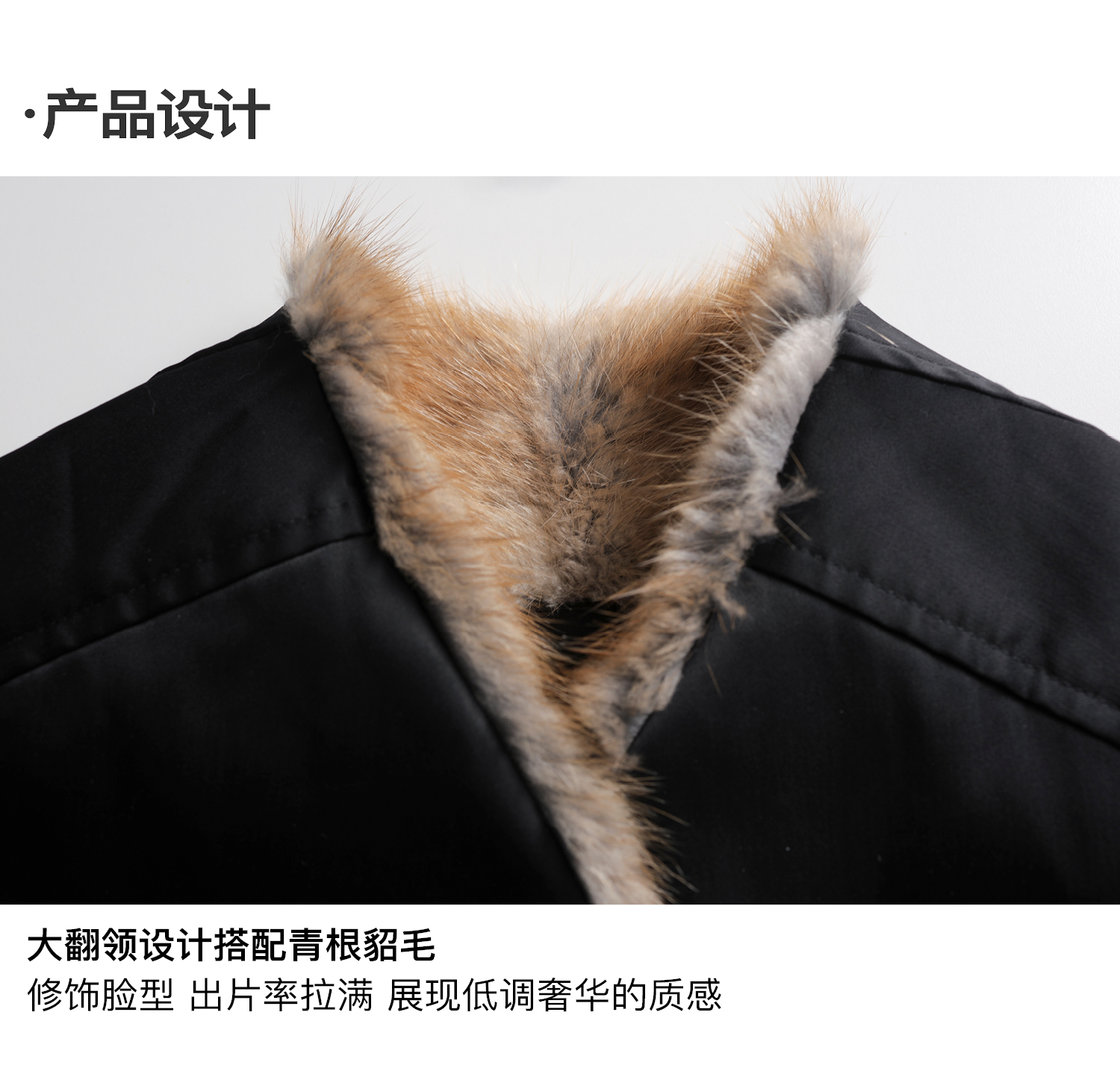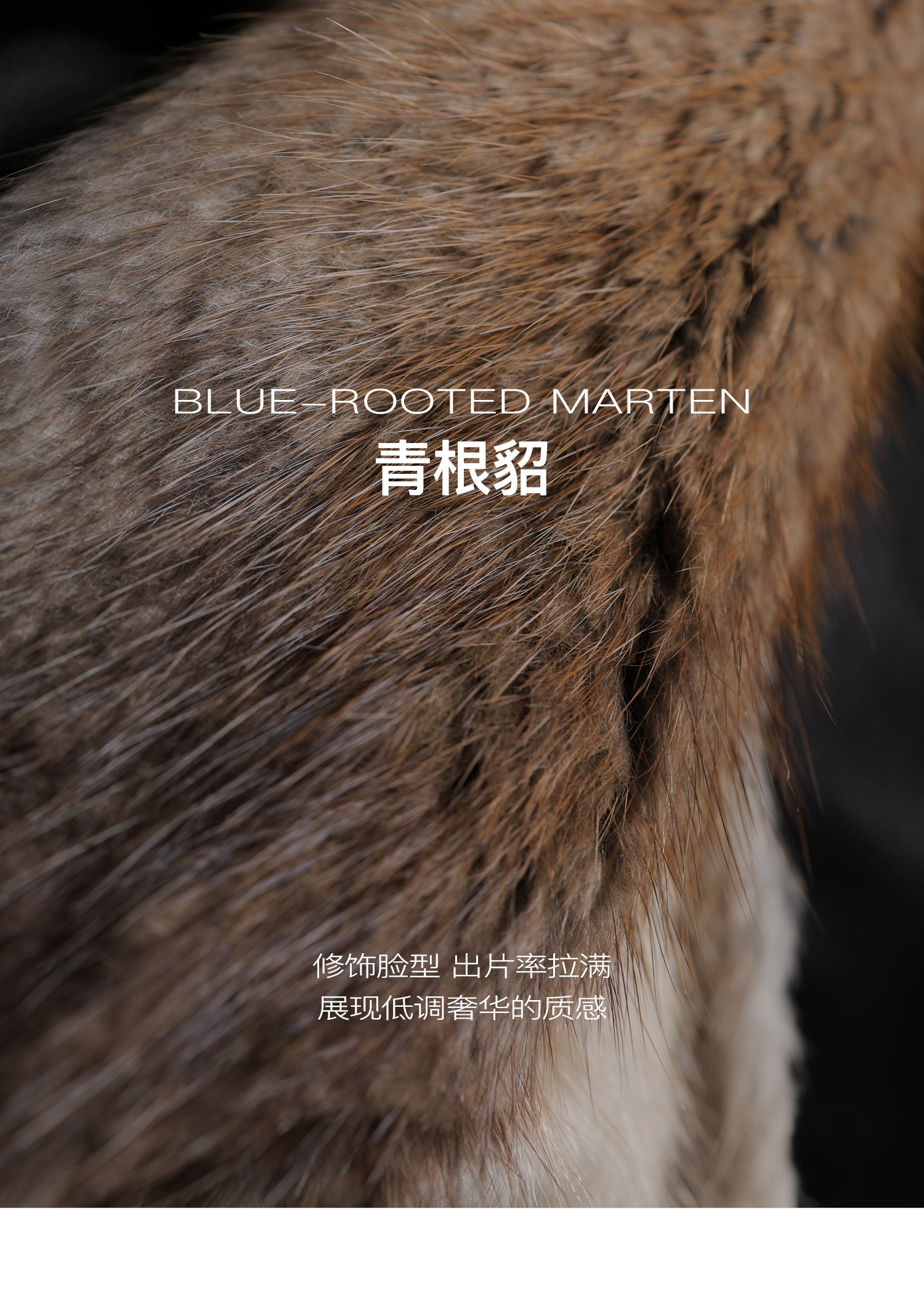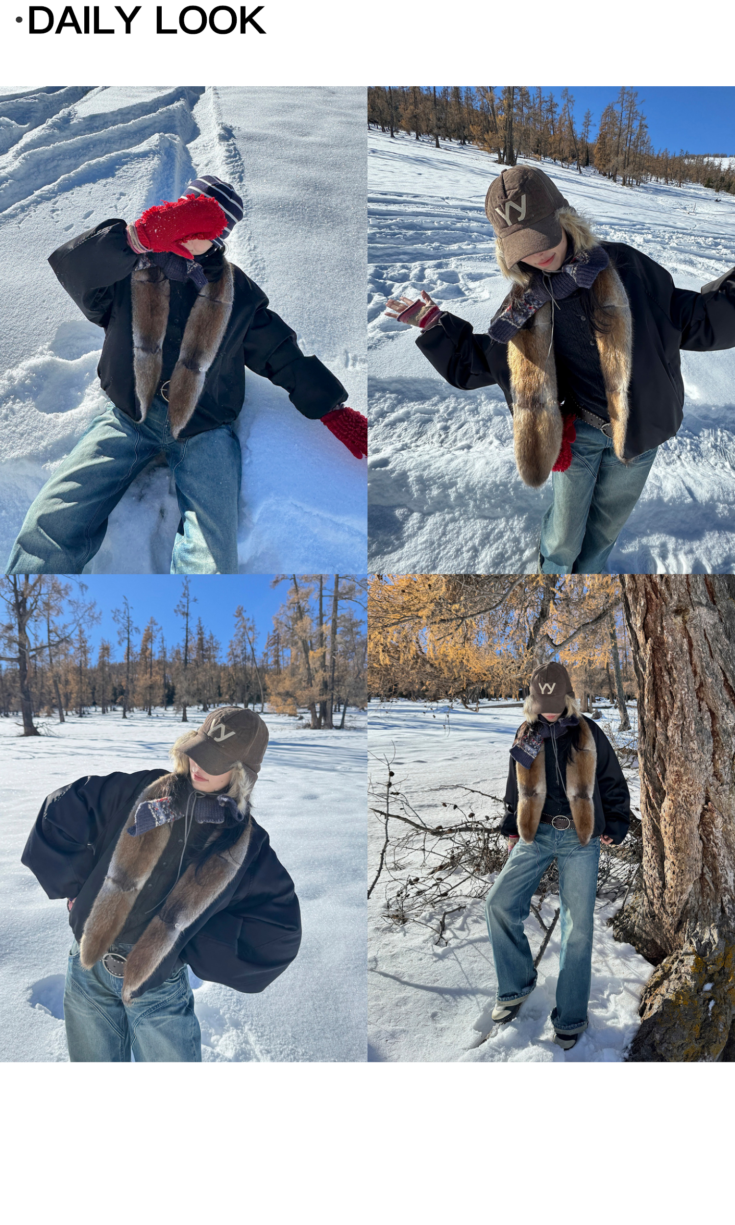 素舶 青根貂翻毛领短款夹克羽绒派克服外套
