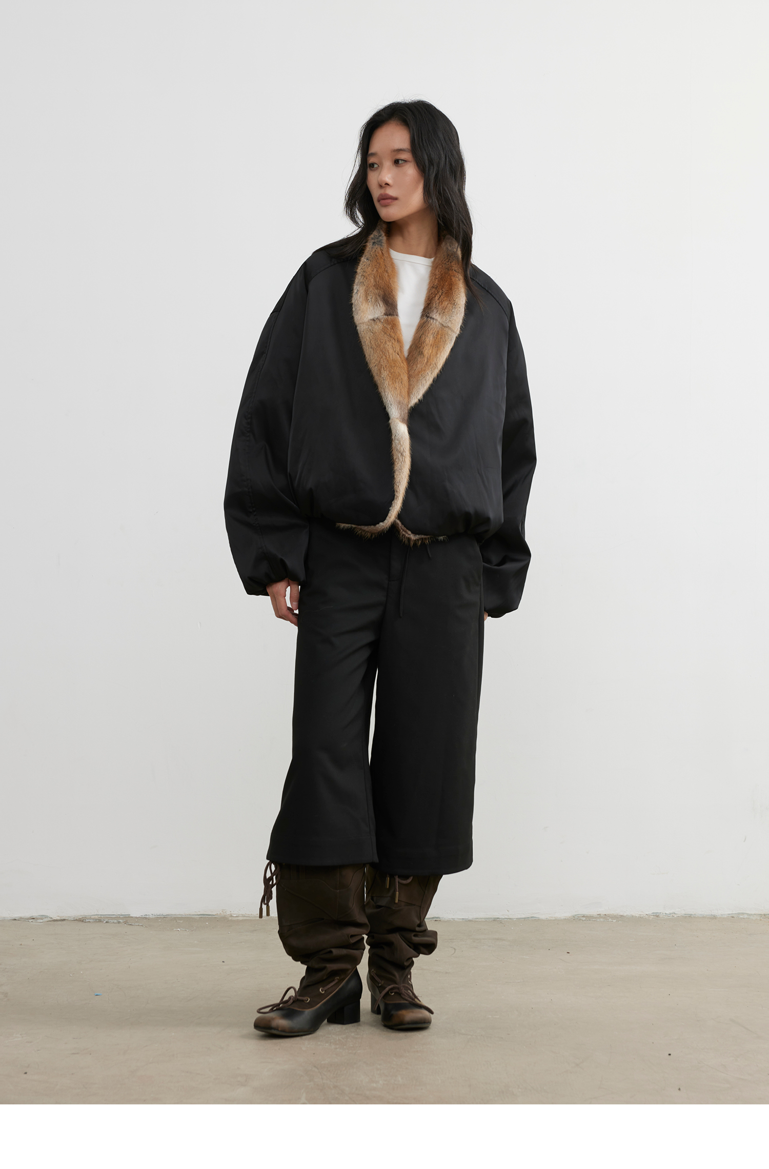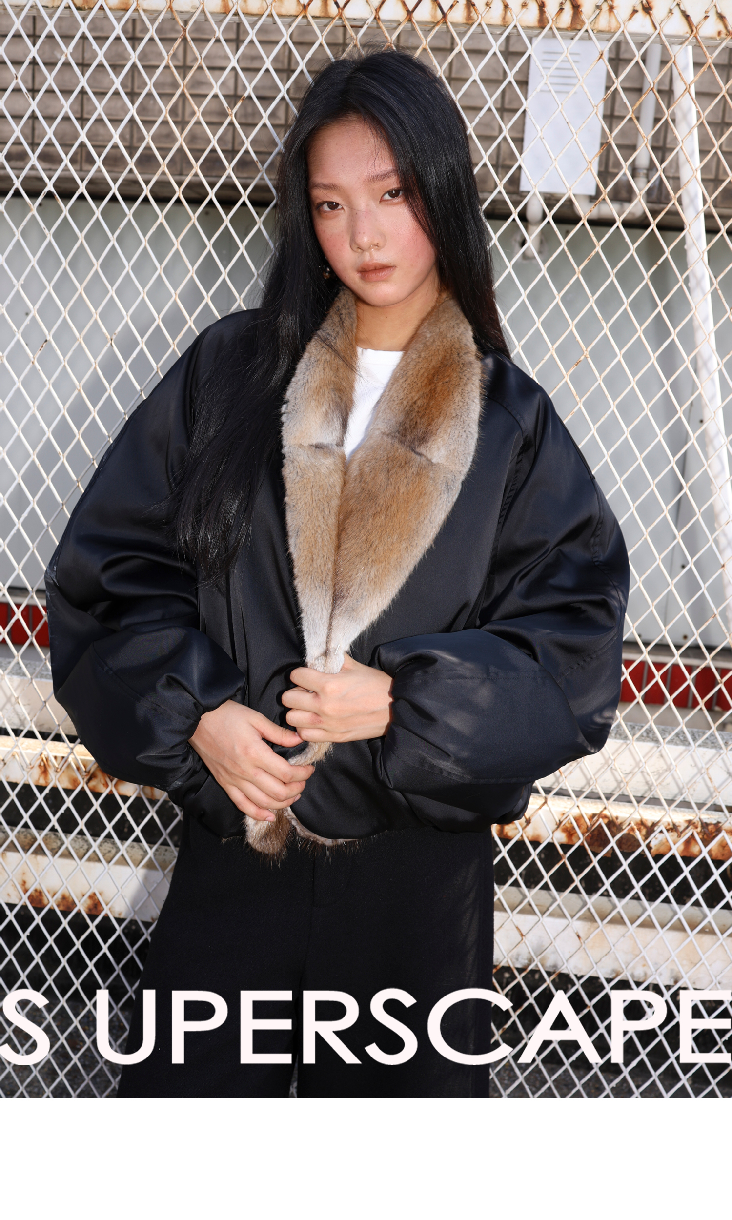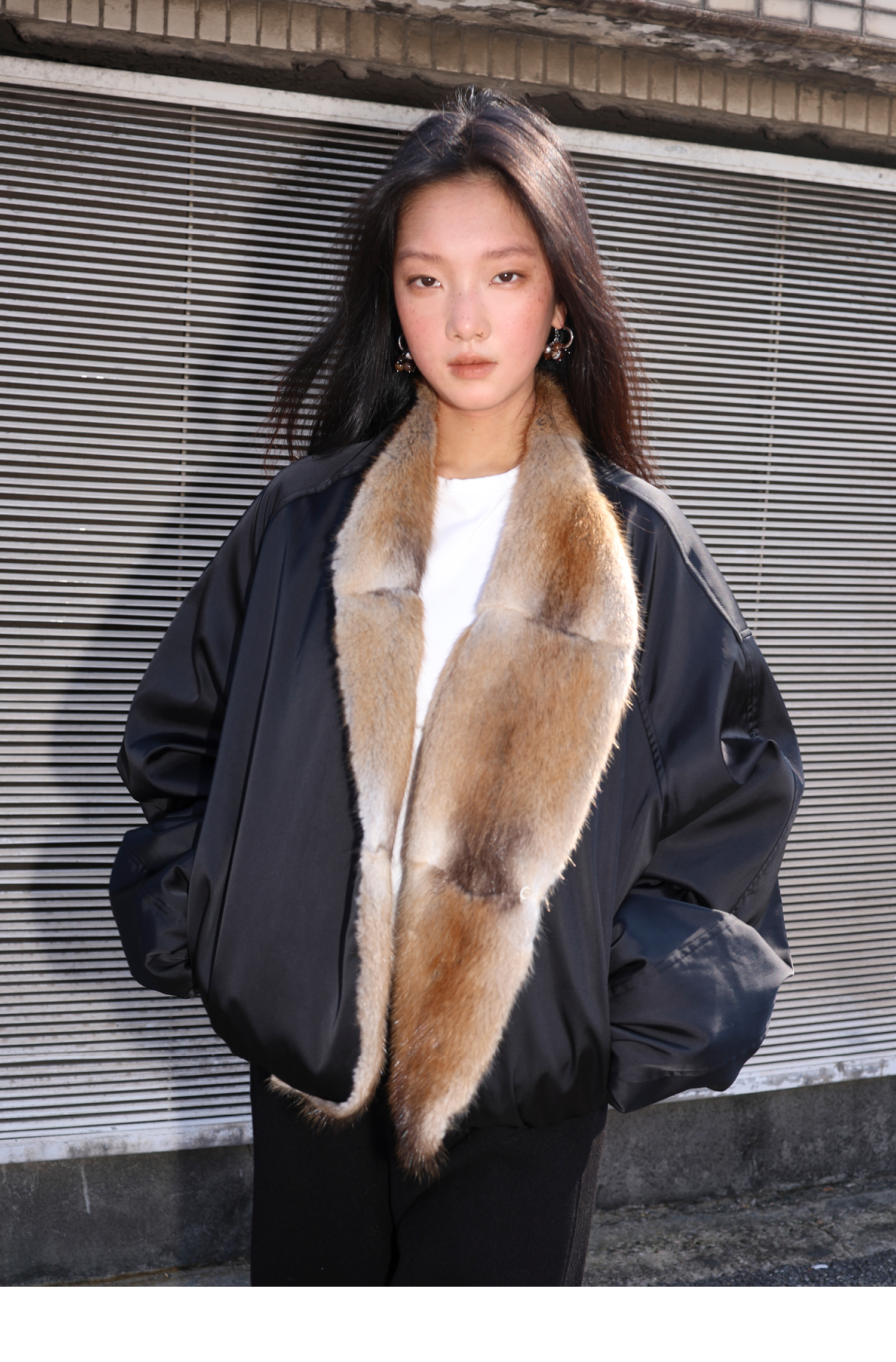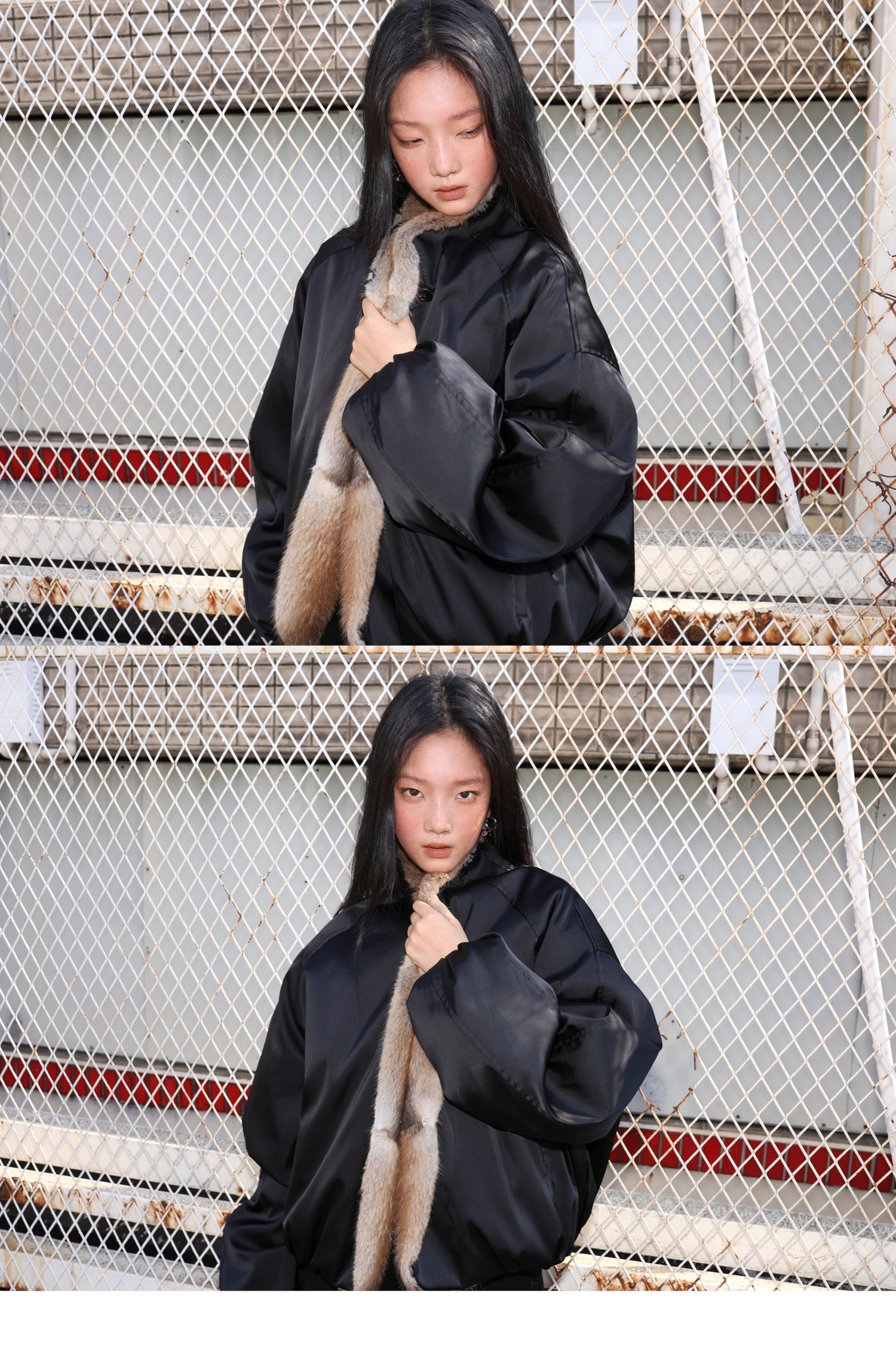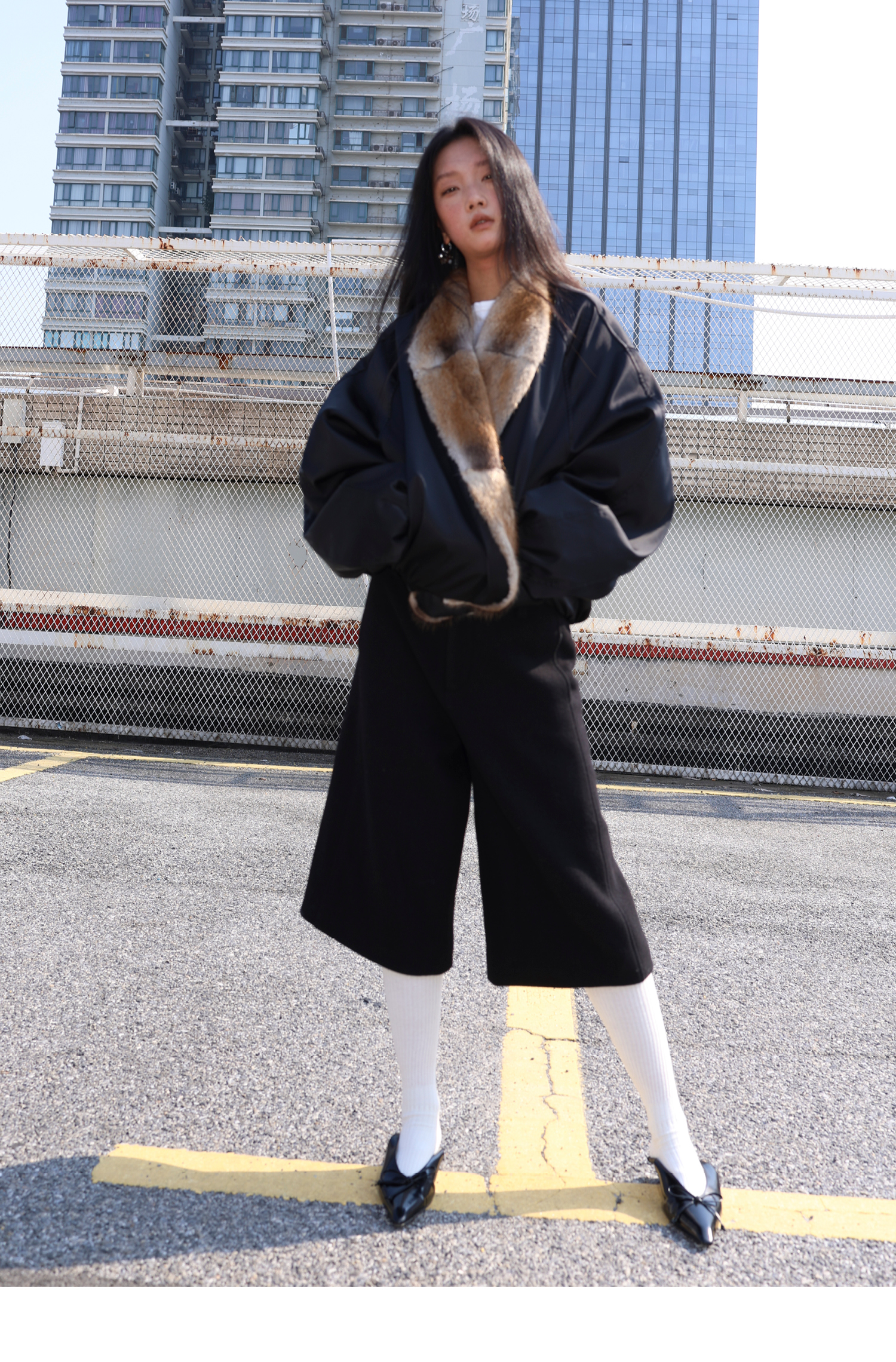 素舶 青根貂翻毛领短款夹克羽绒派克服外套