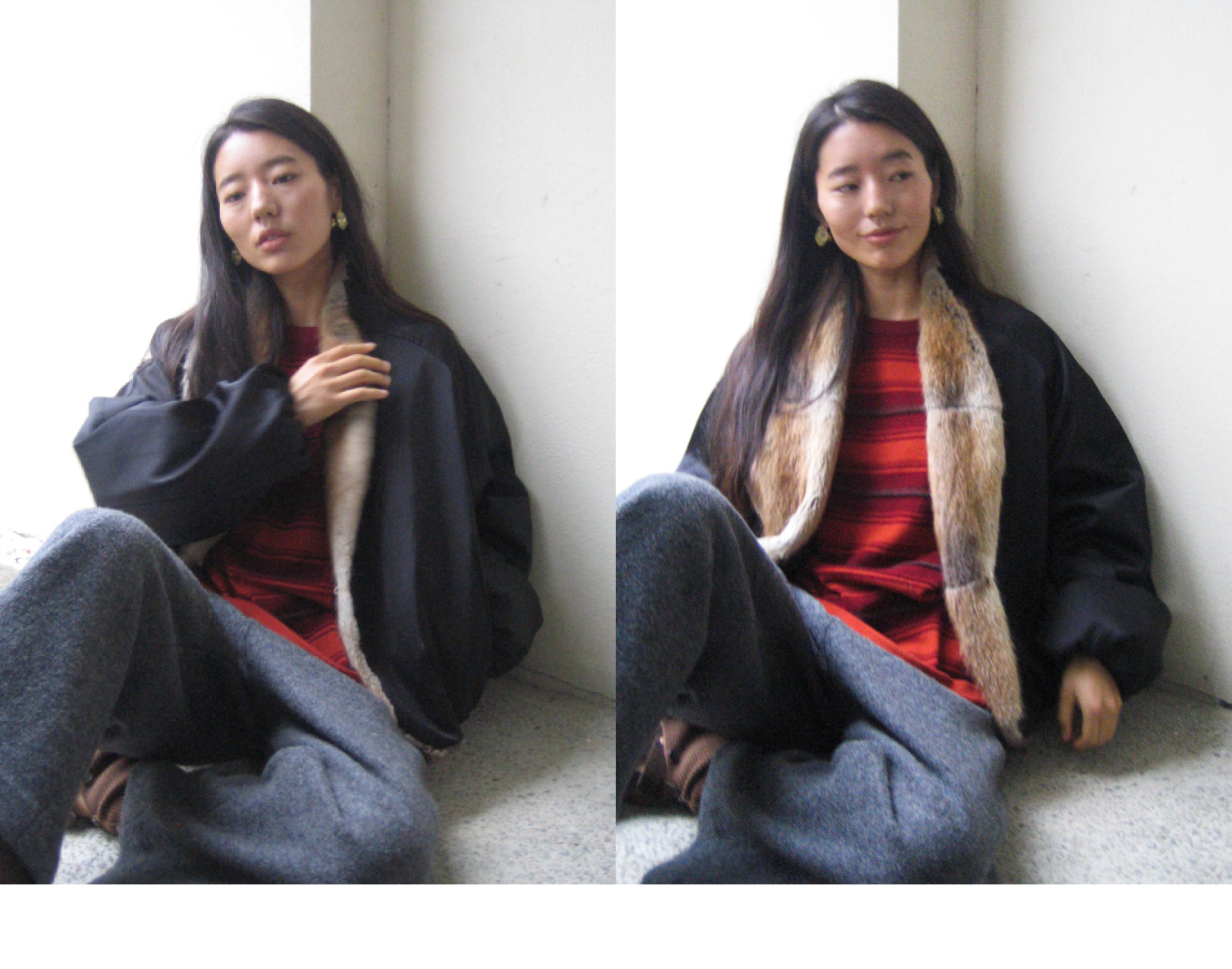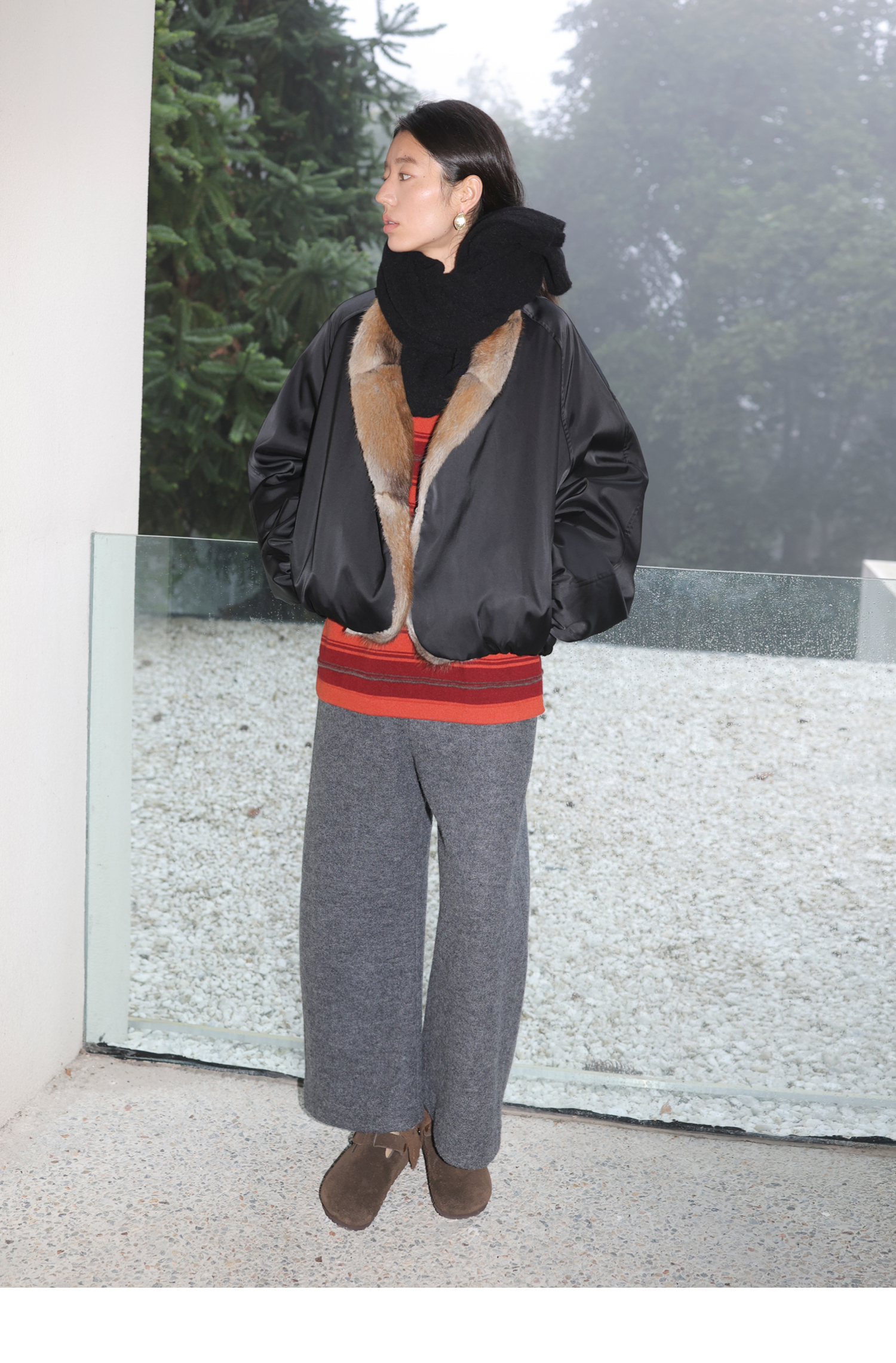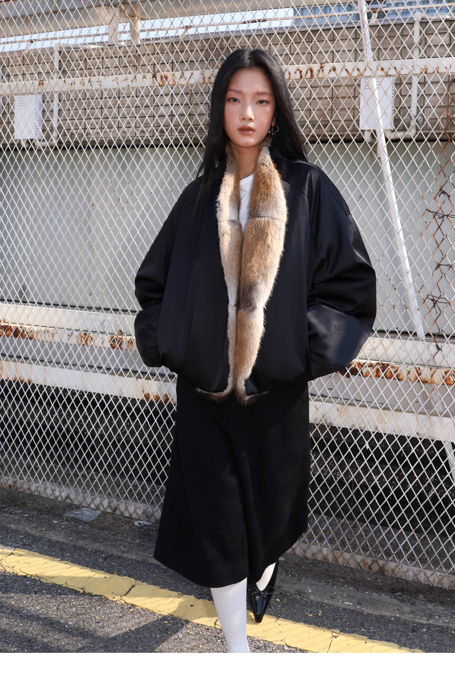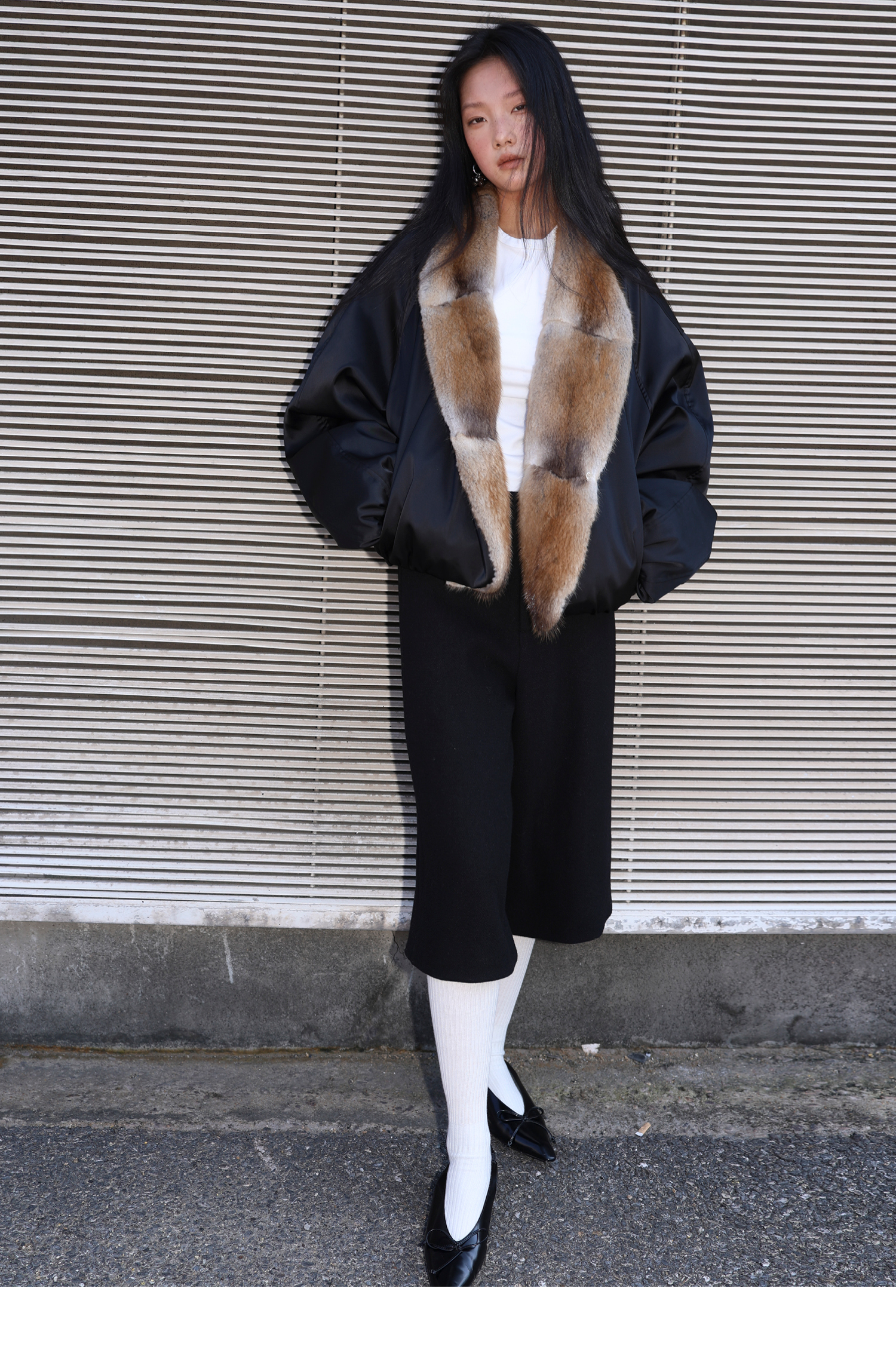 素舶 青根貂翻毛领短款夹克羽绒派克服外套