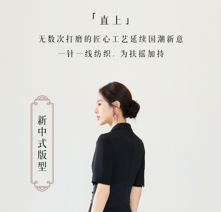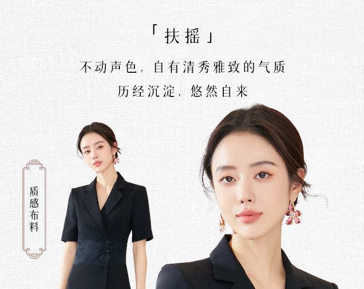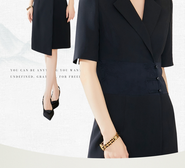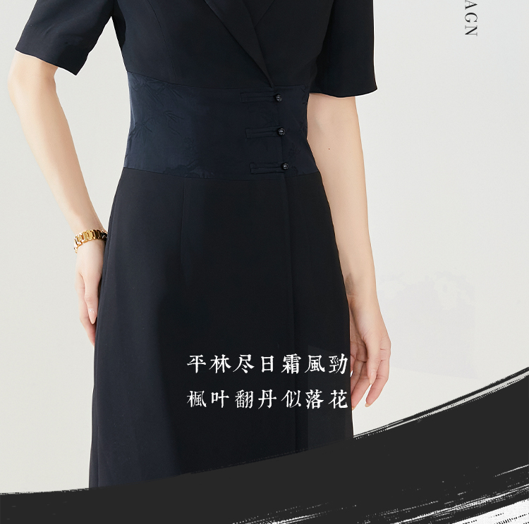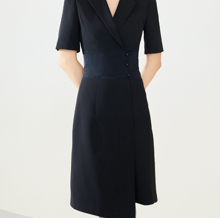 FUYAO扶摇 夏季女装连衣裙高级感黑色拼接西装裙新中式工作服裙子
