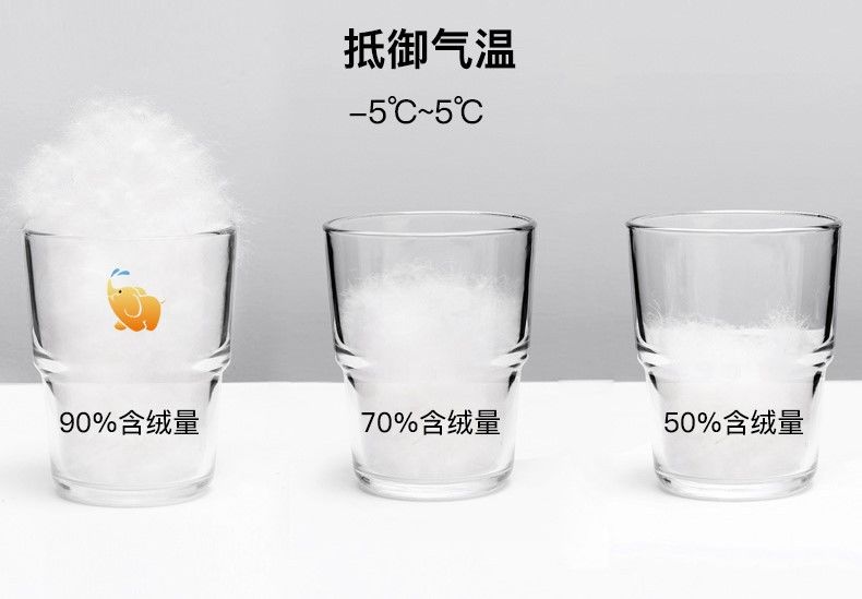 充绒量:110码-108g/120码-120g/130码-132g/140码-144g/150码-156g/160码-168g