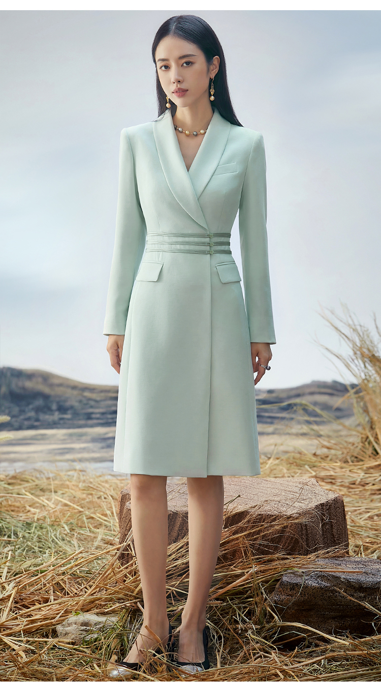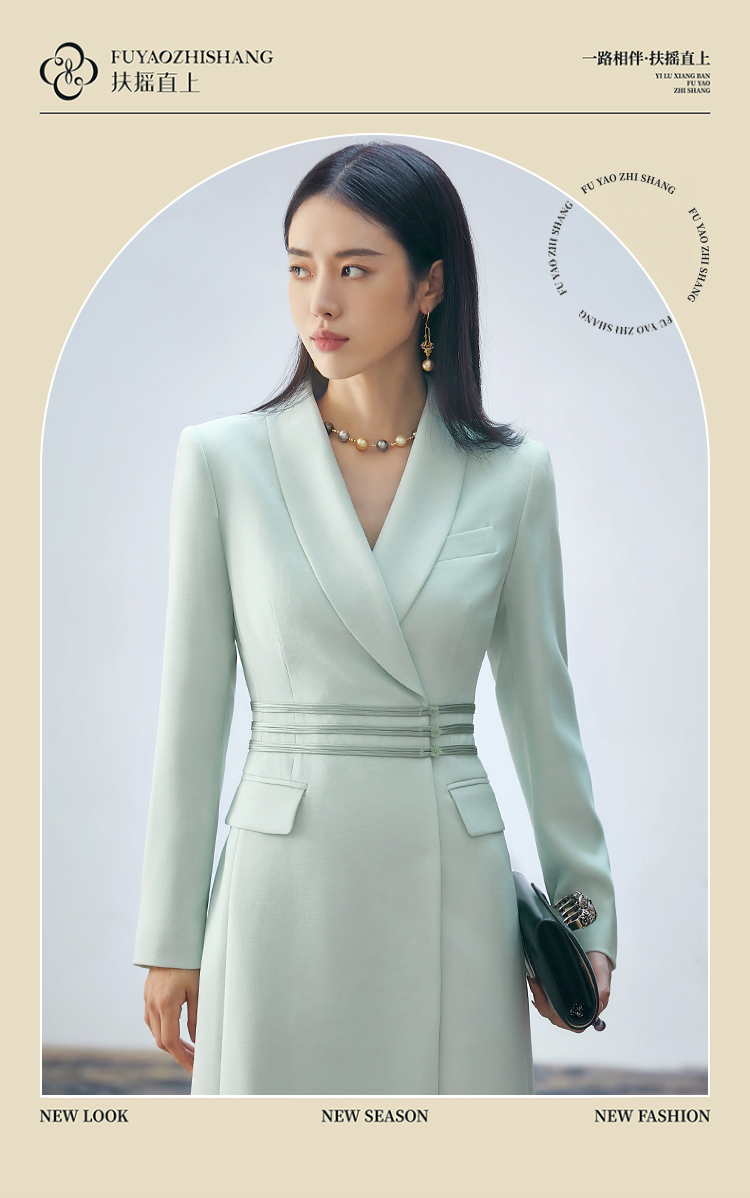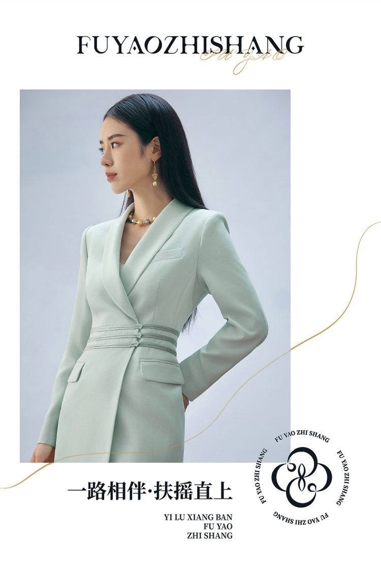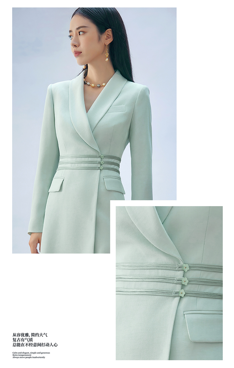 FUYAO扶摇 高端盘扣醋酸连衣裙女气质新中式国风西装裙设计师款