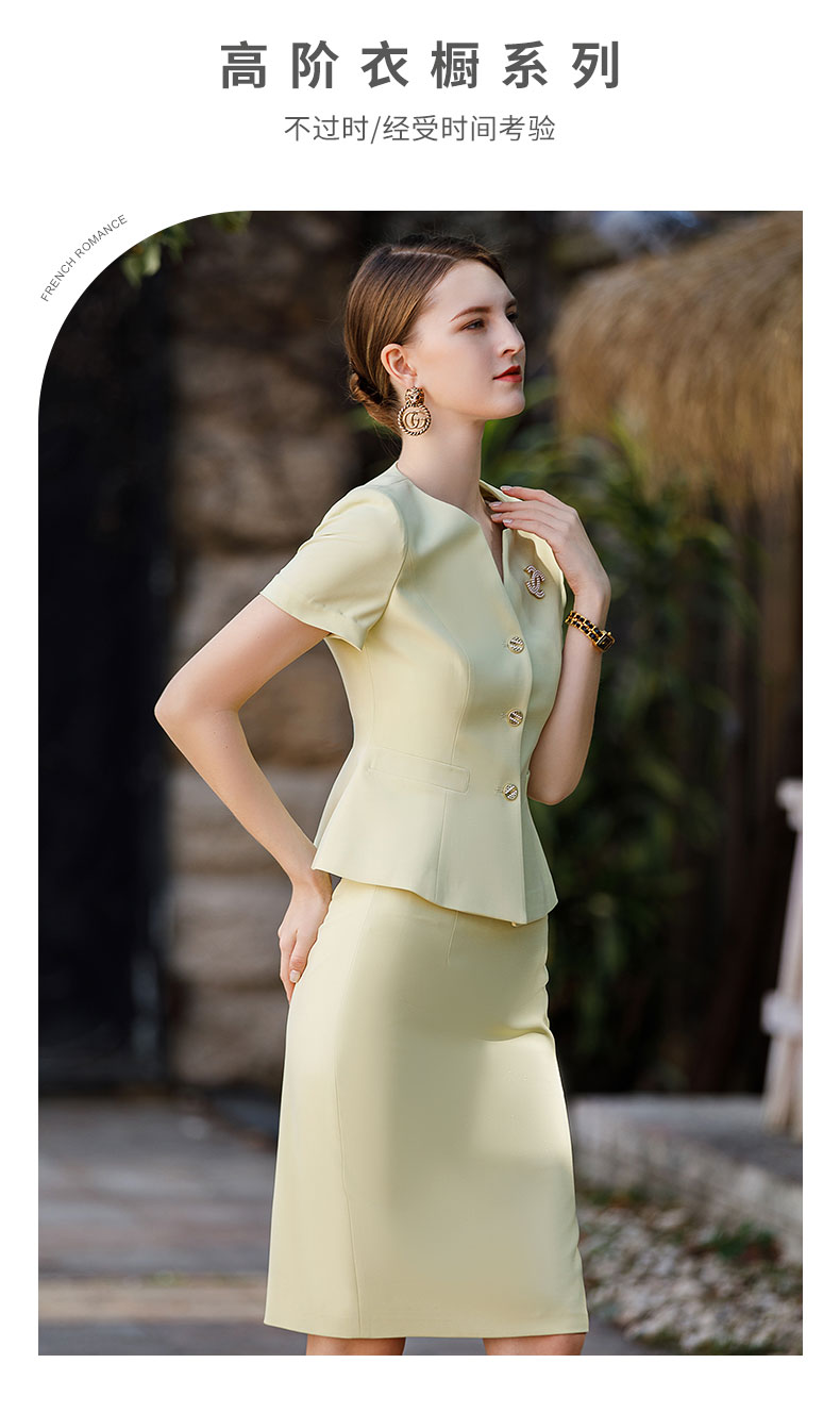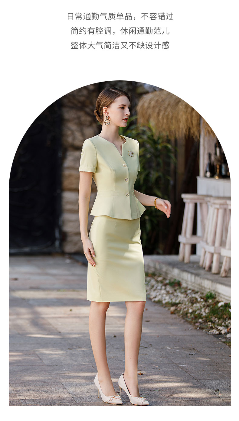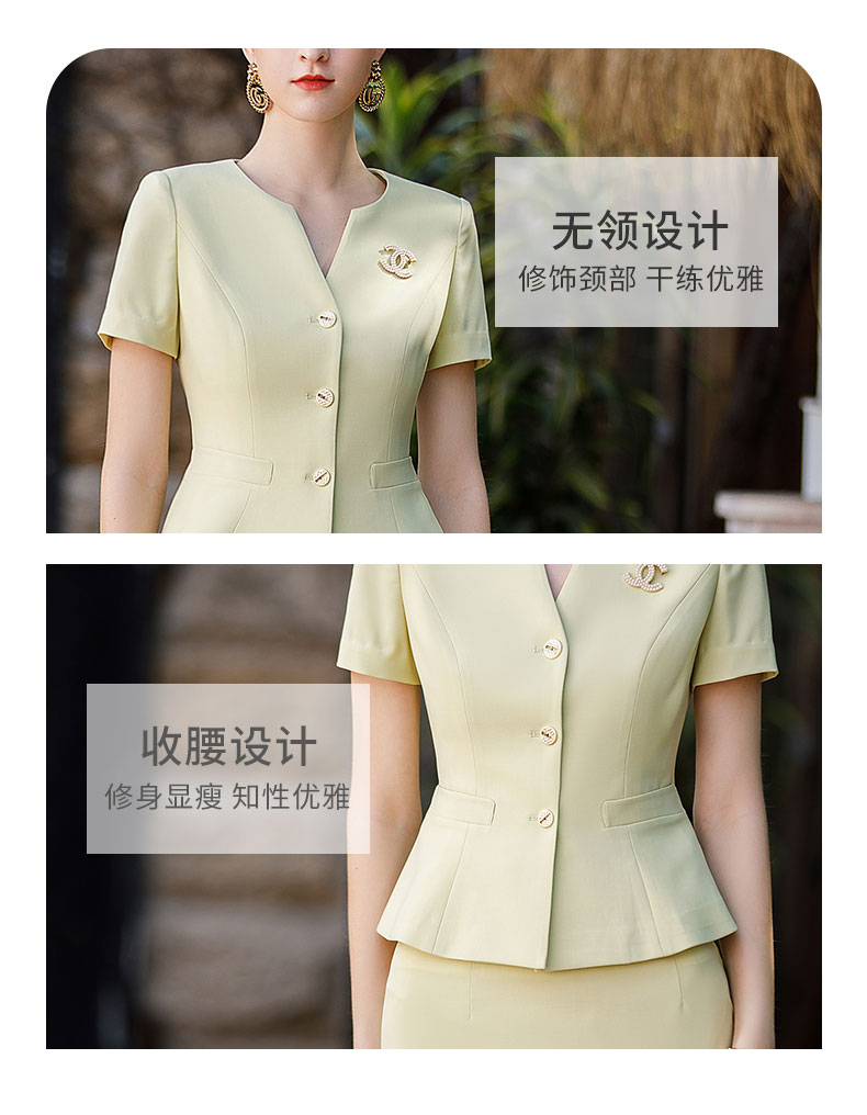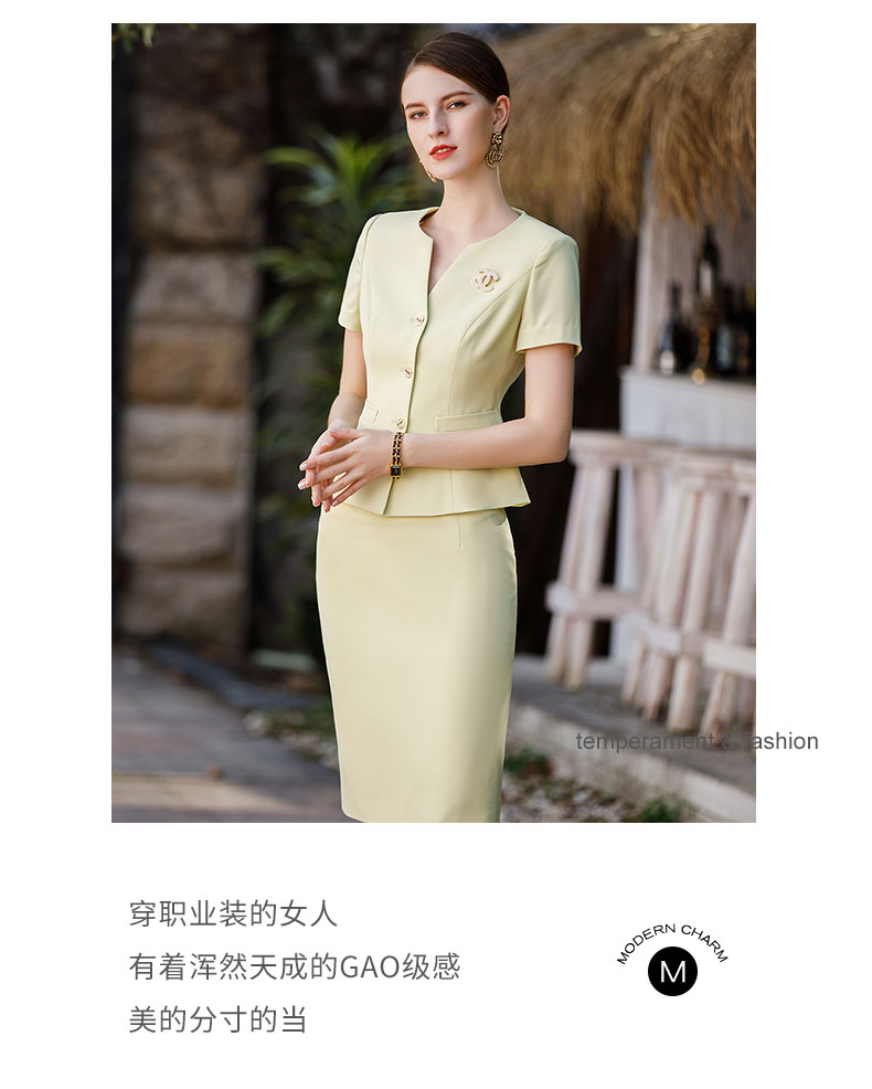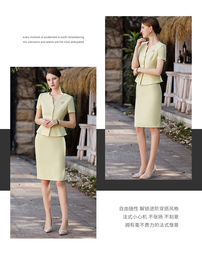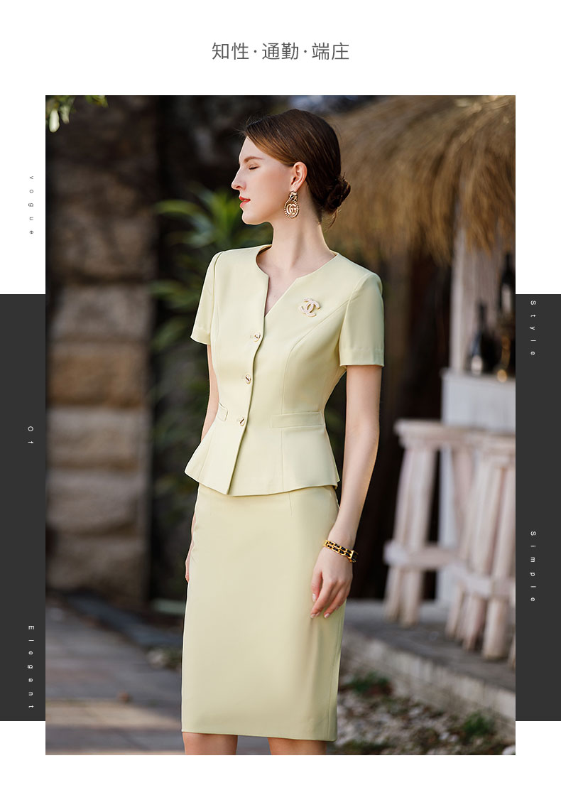 AD工作服职业气质女神范套装高端米黄色短袖西装套裙收腰显瘦工装