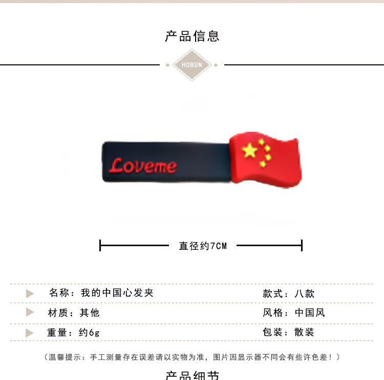 10.1国庆节学生爱国中国心五星红旗发夹小巧可爱文艺发夹发饰