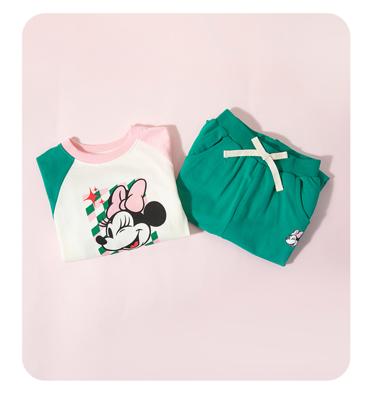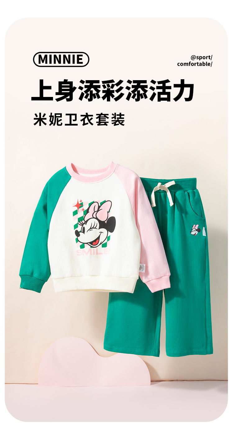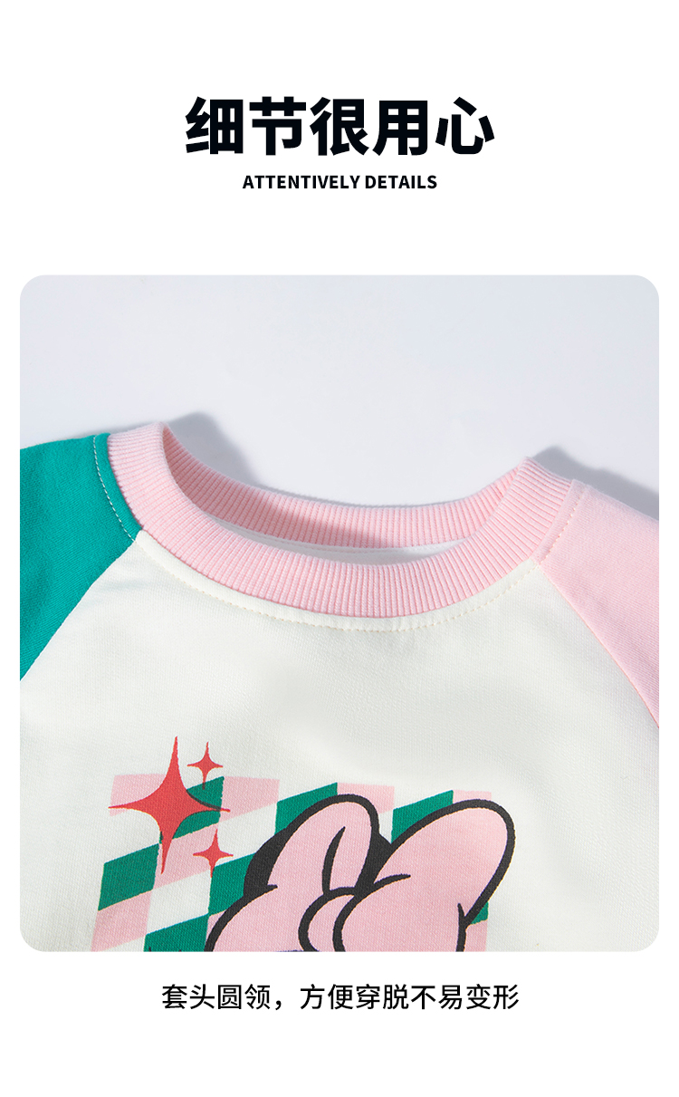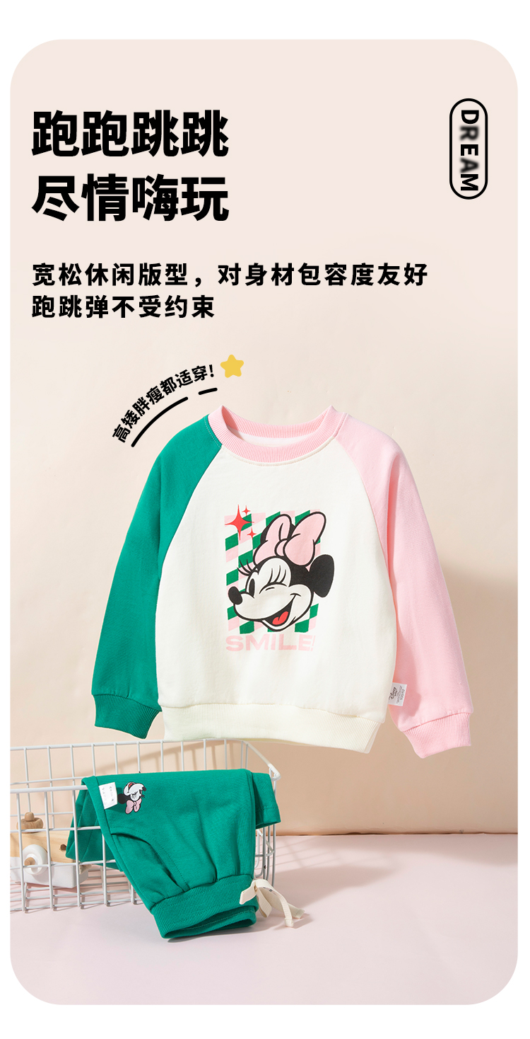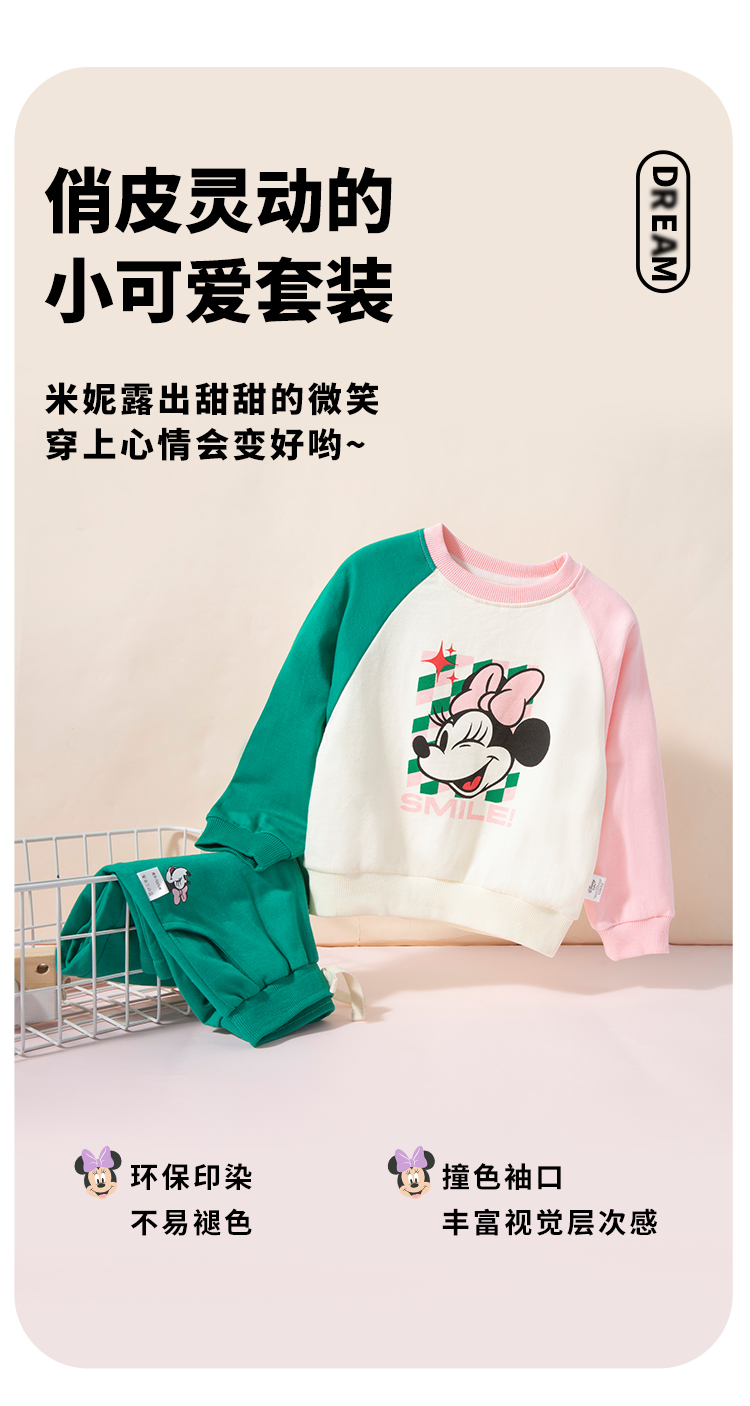 【撞色插肩袖米妮套装】春季新款女童纯棉柔软舒适卫衣卫裤两件套ZD1DT015