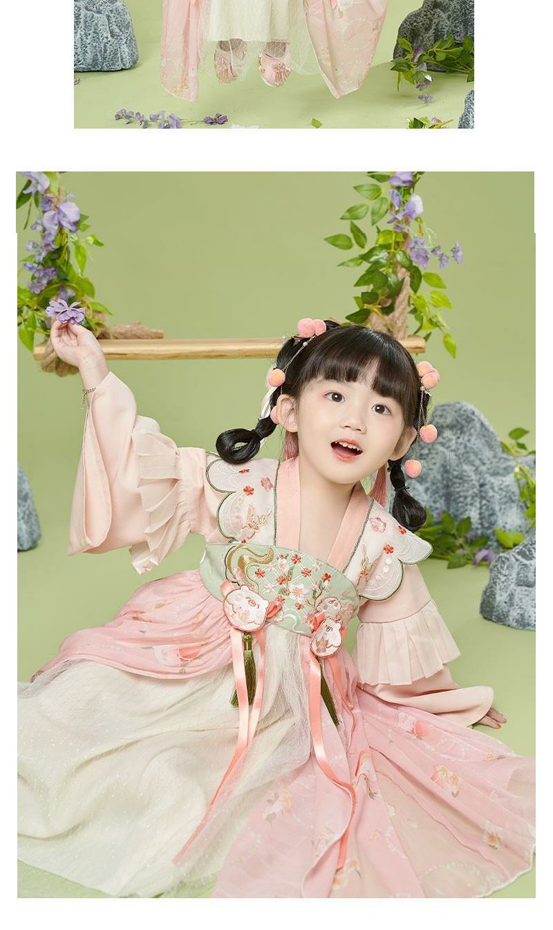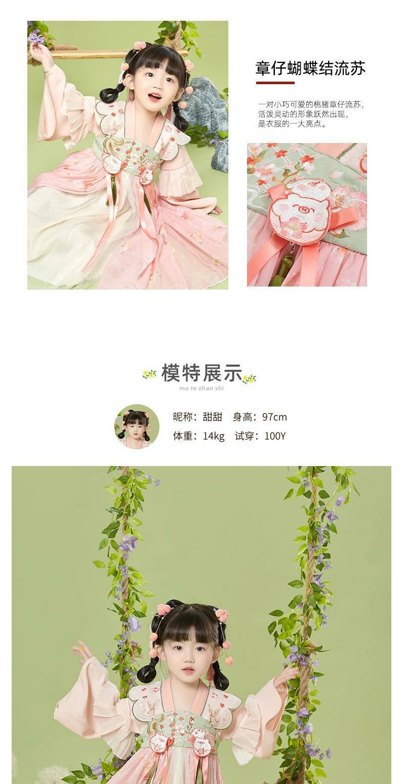 汉服女童春装桃源仙境公主风古代全套粉色小清新套装可爱动物刺绣