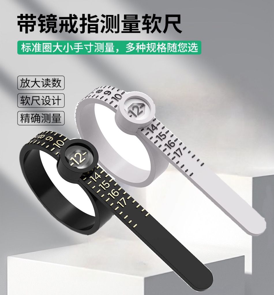 测量带 美港带放大镜戒指软尺 日欧手寸测量圈手指指围大小筛选环