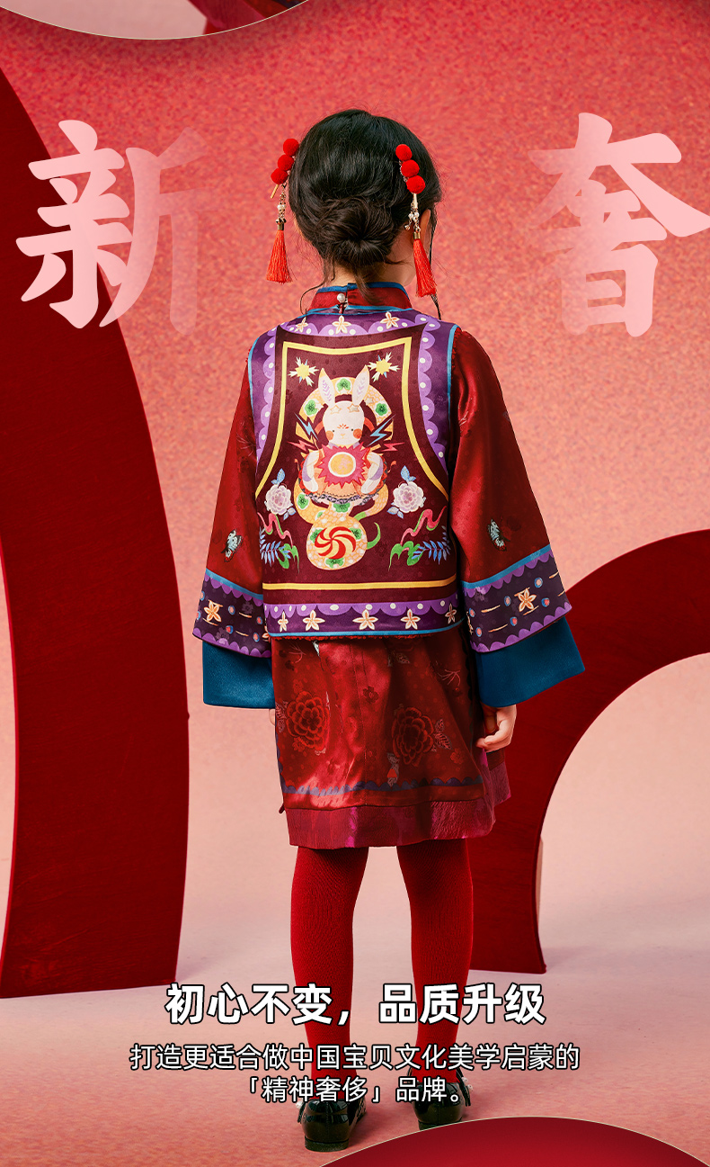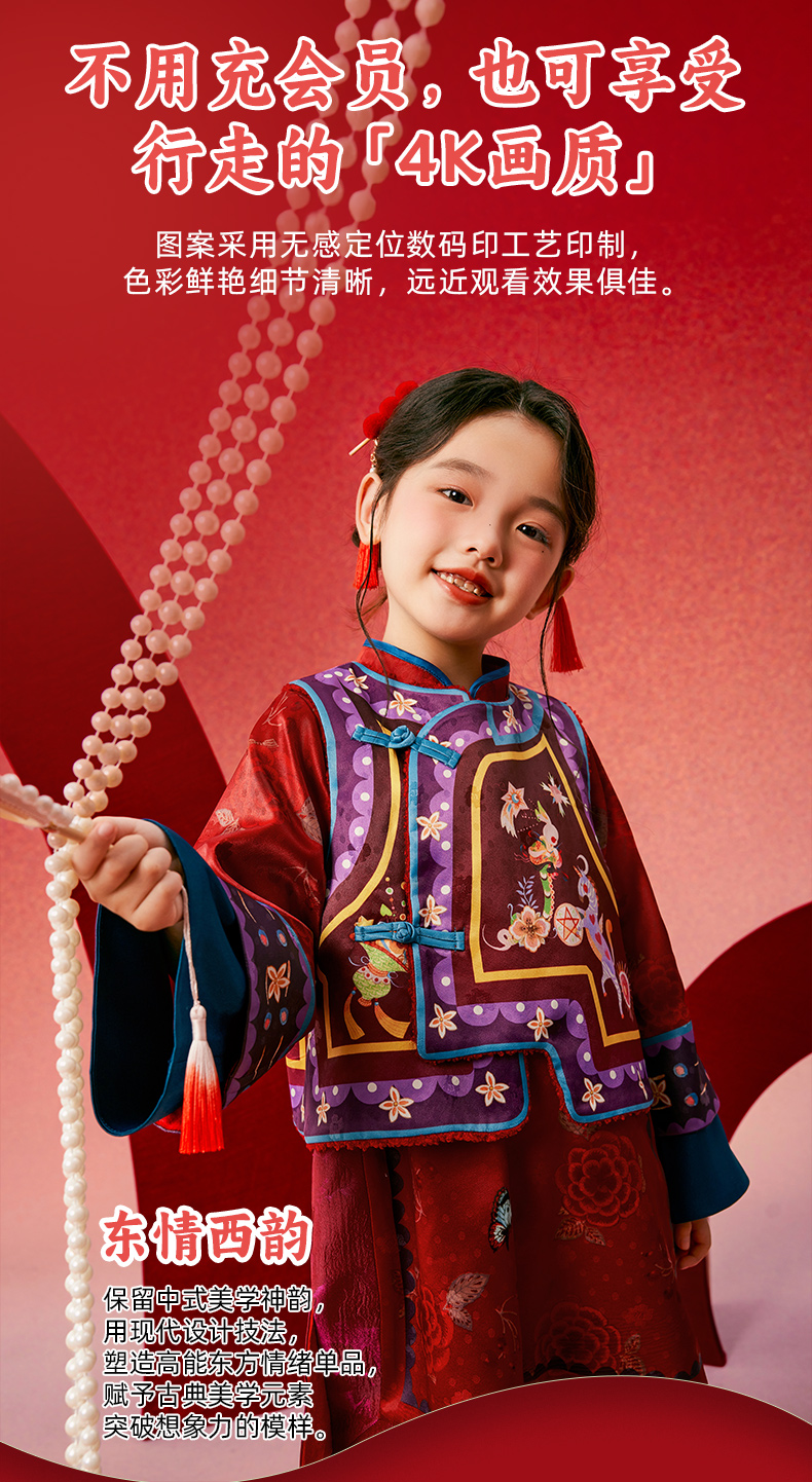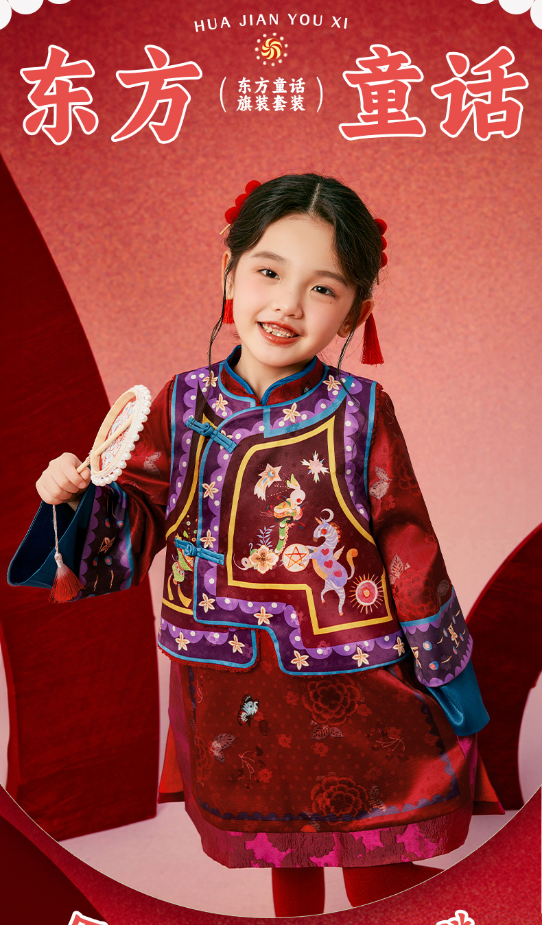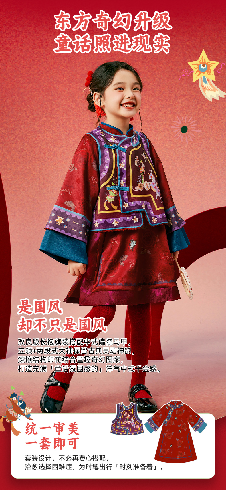 年衣童装女童套装秋冬新款唐装新中式儿童改良旗袍马甲甜美2件套东方童话旗装套装