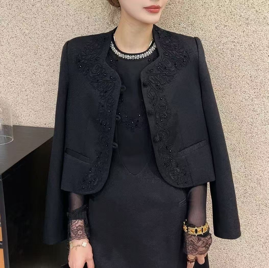 SZ3A65_漆黑色_外套上衣_秋季_中式立领盘扣重工刺绣钉珠_高级女装_BERNIEELEN 伯妮斯茵