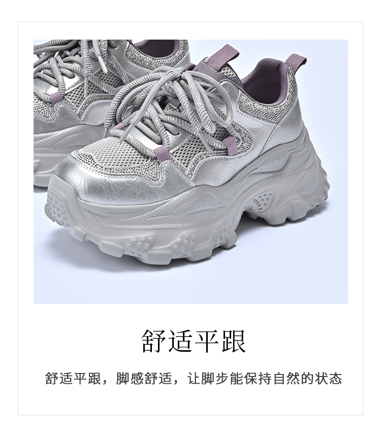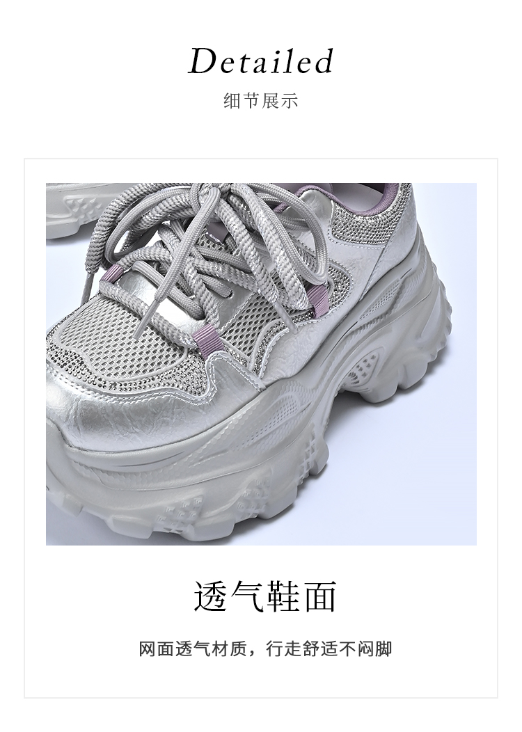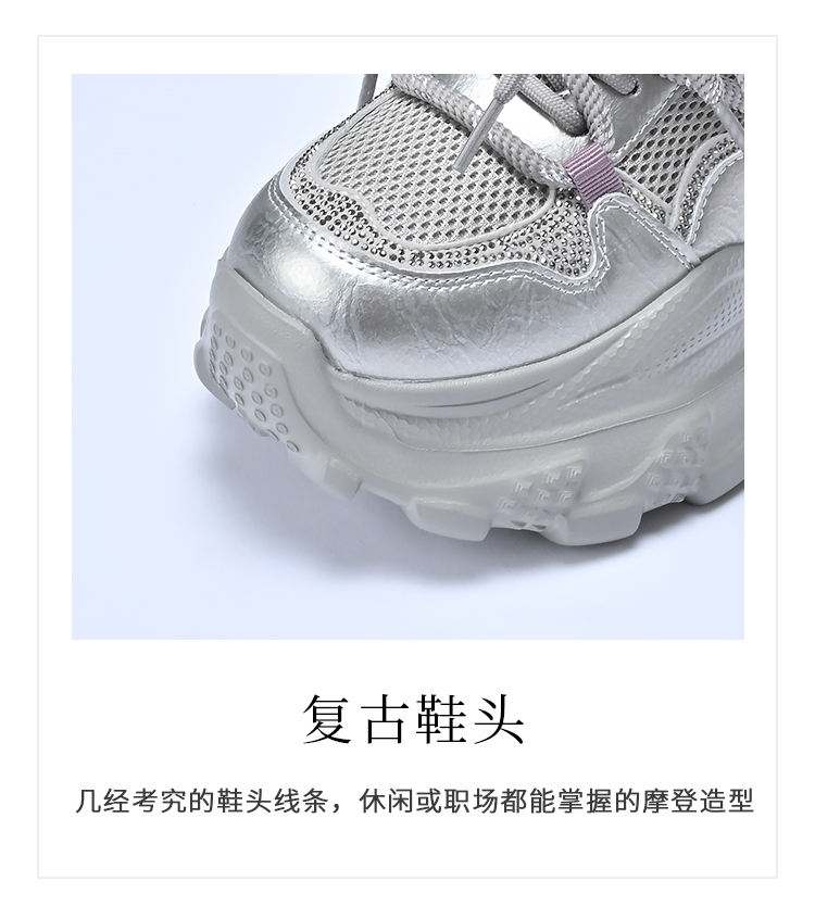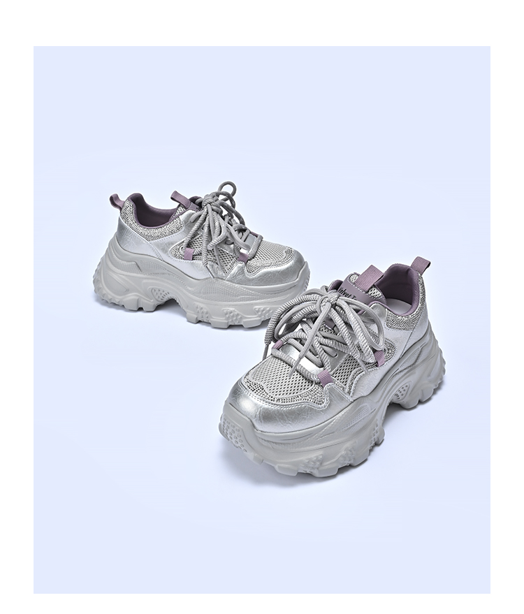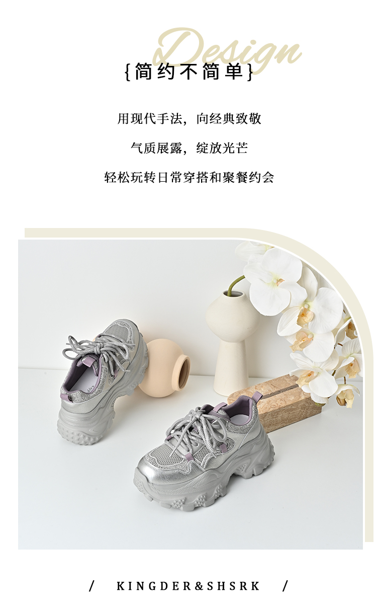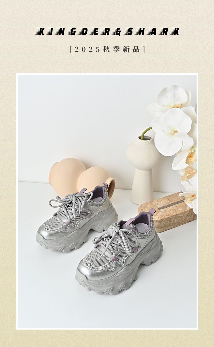 经典鲨2025秋专柜新款牛皮革潮酷网面透气显高休闲老爹鞋女KW160-537291