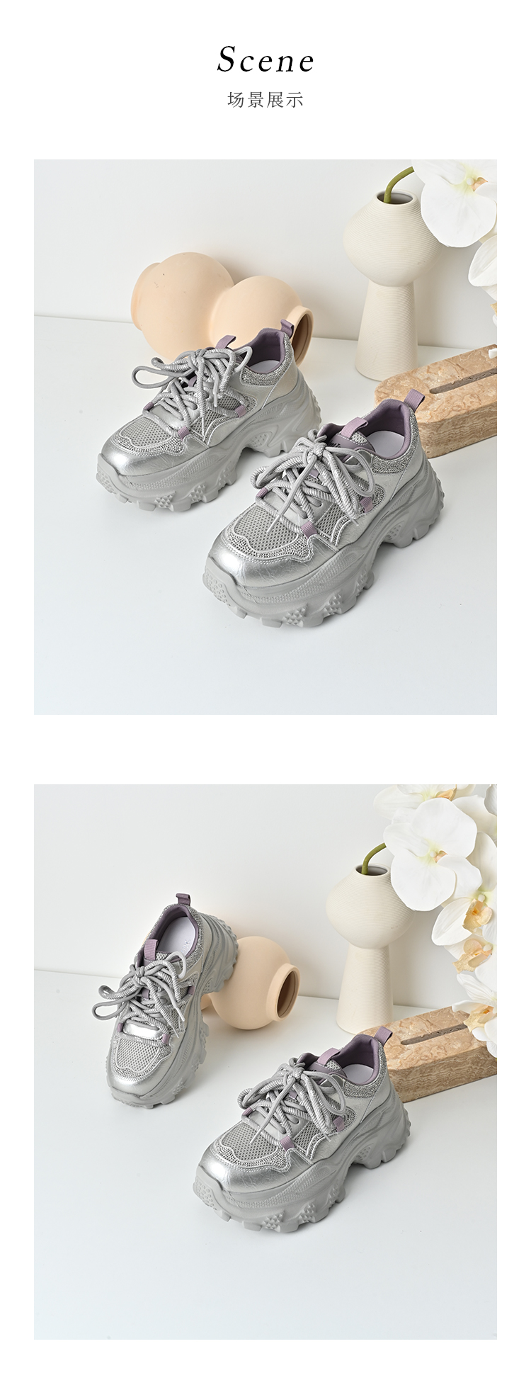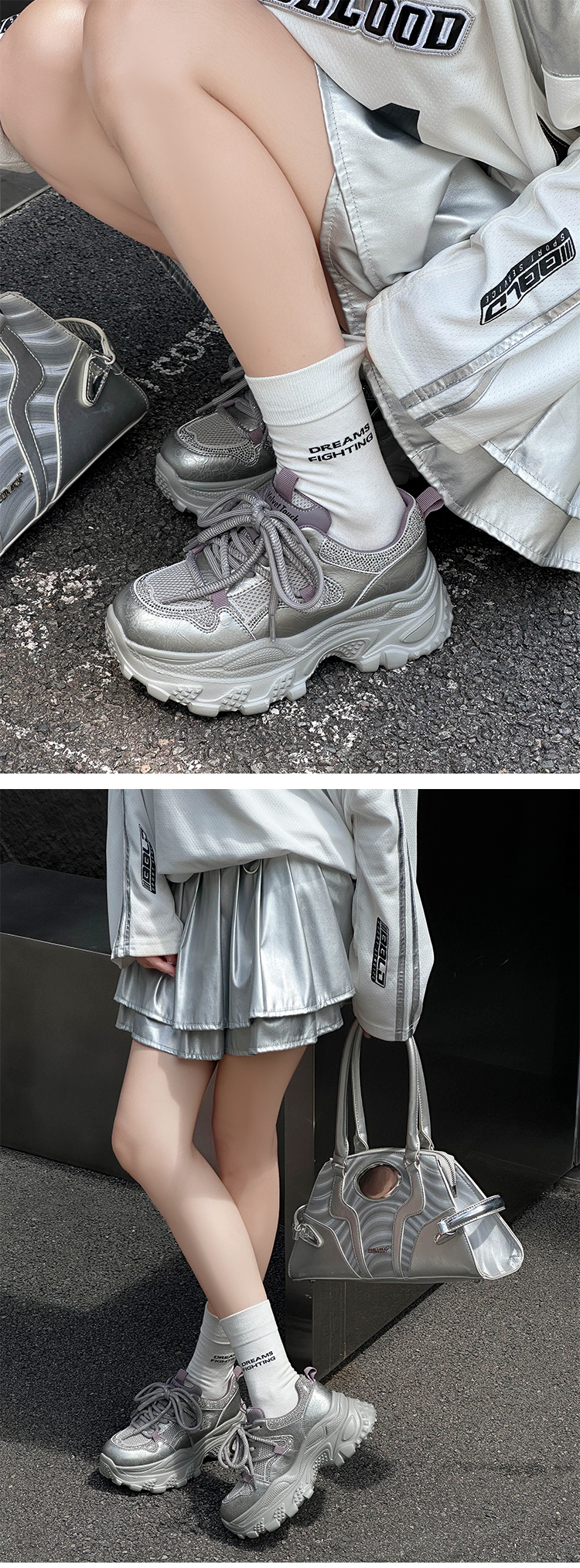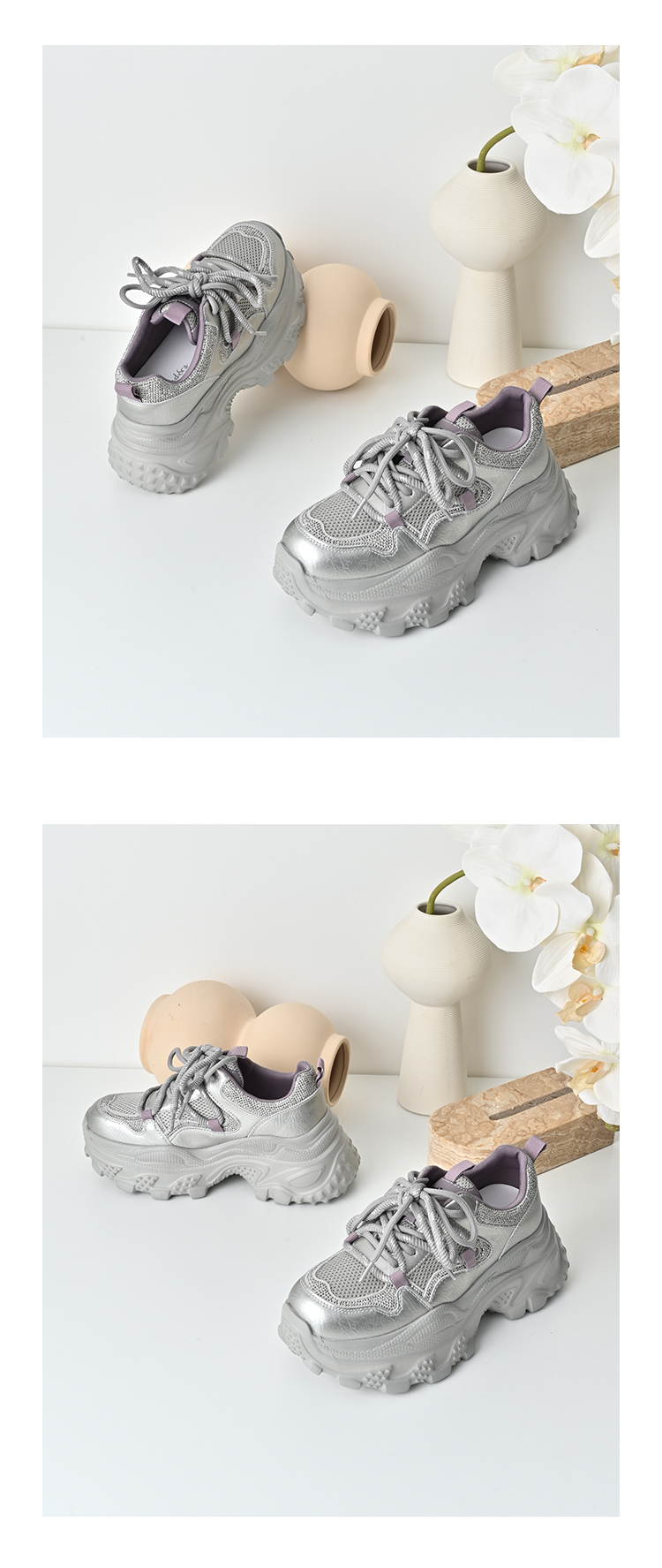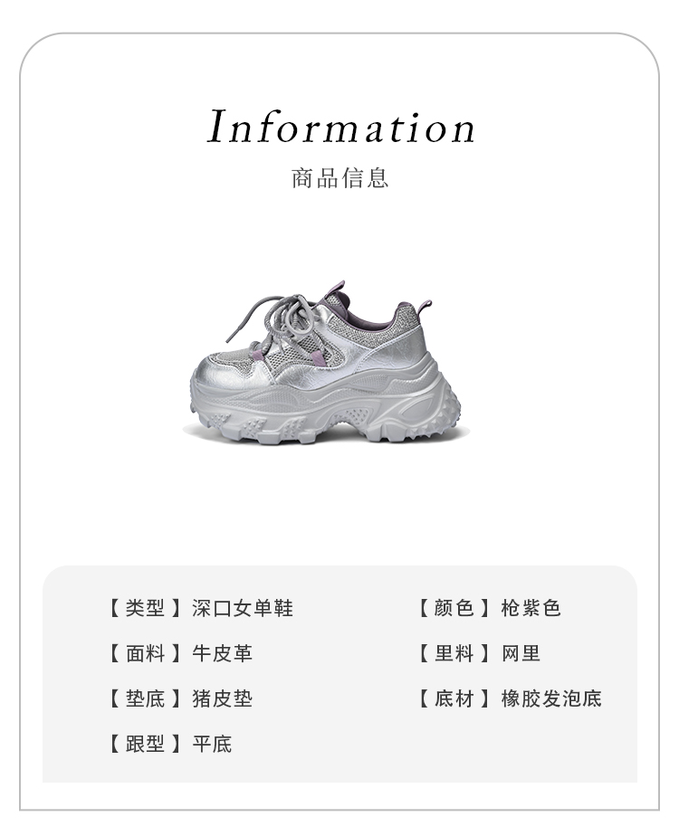 经典鲨2025秋专柜新款牛皮革潮酷网面透气显高休闲老爹鞋女KW160-537291
