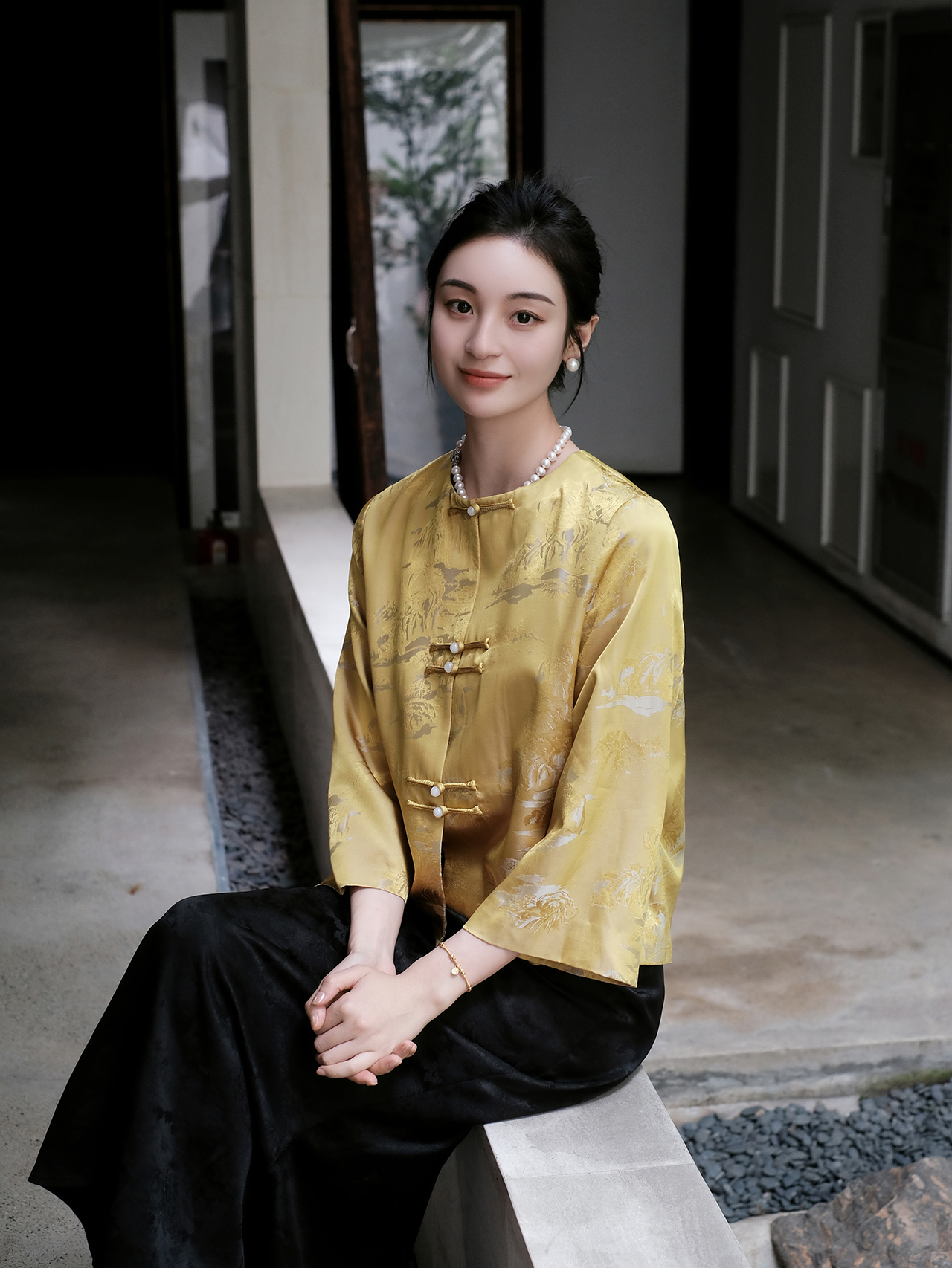 盛唐牡丹 | 时髦玉扣花香引蝶对襟女衬衫