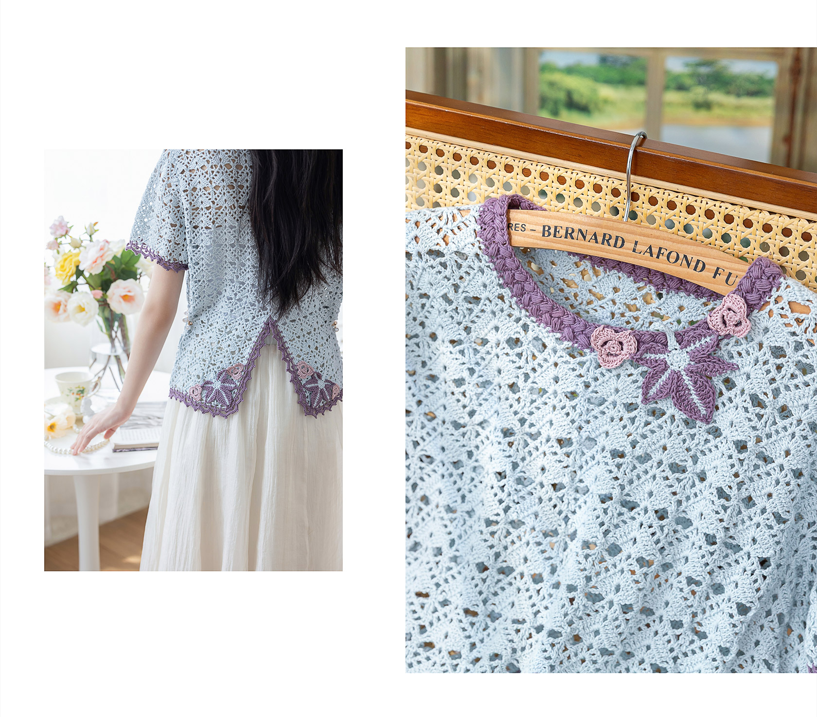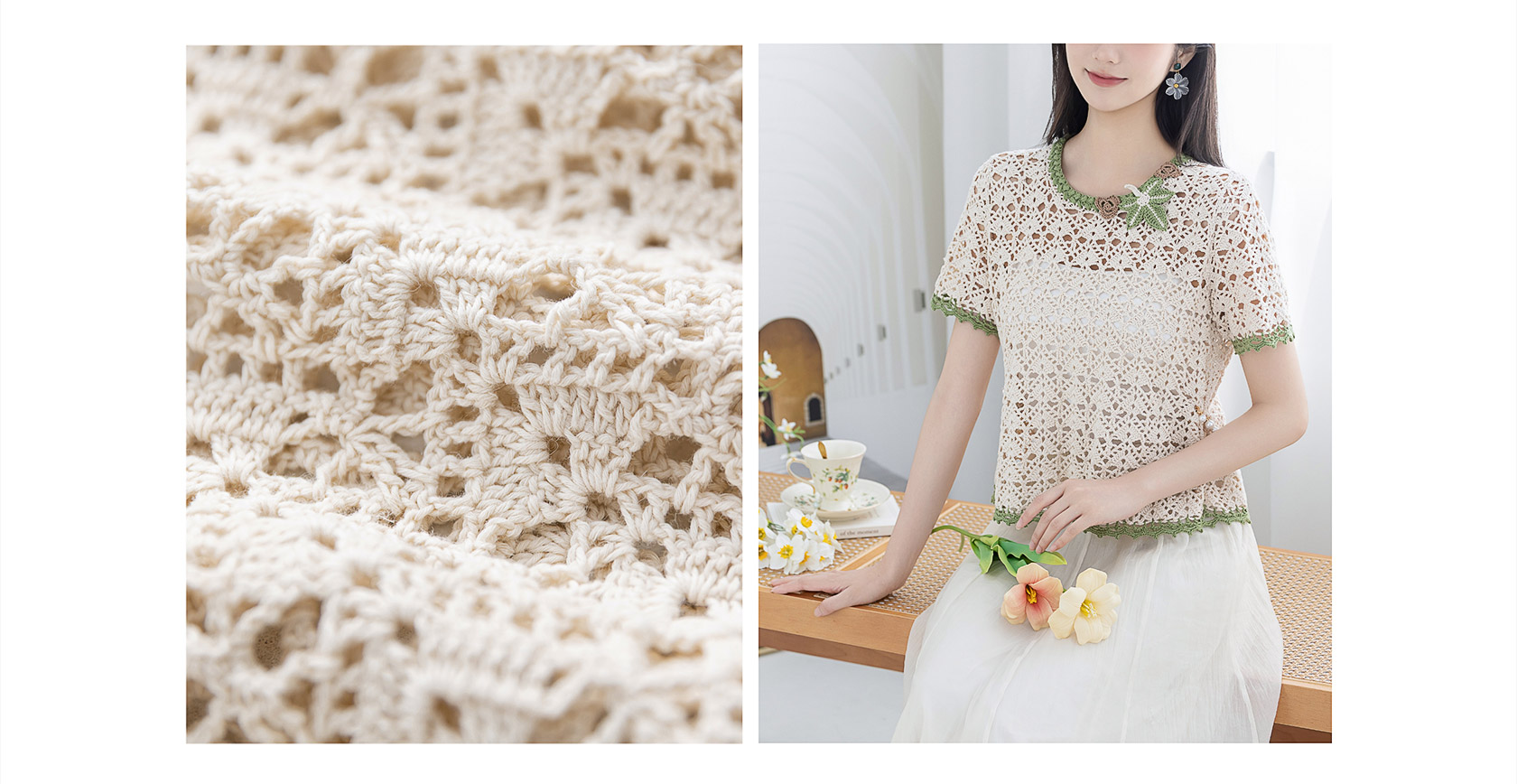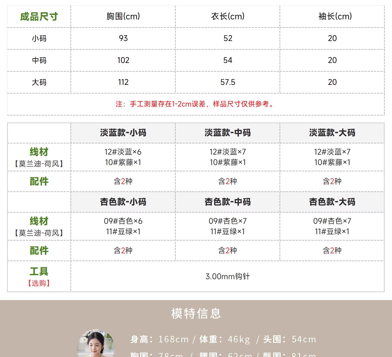 苏苏姐家念露蕾丝衣手工diy钩针棉线蕾丝亚麻短袖毛线团材料包