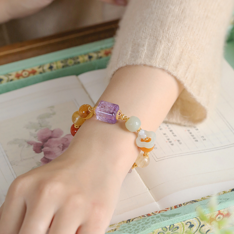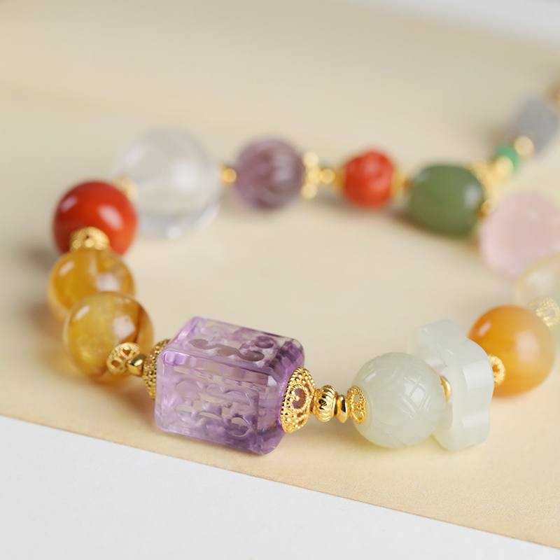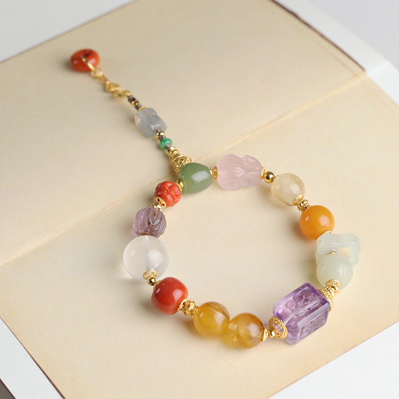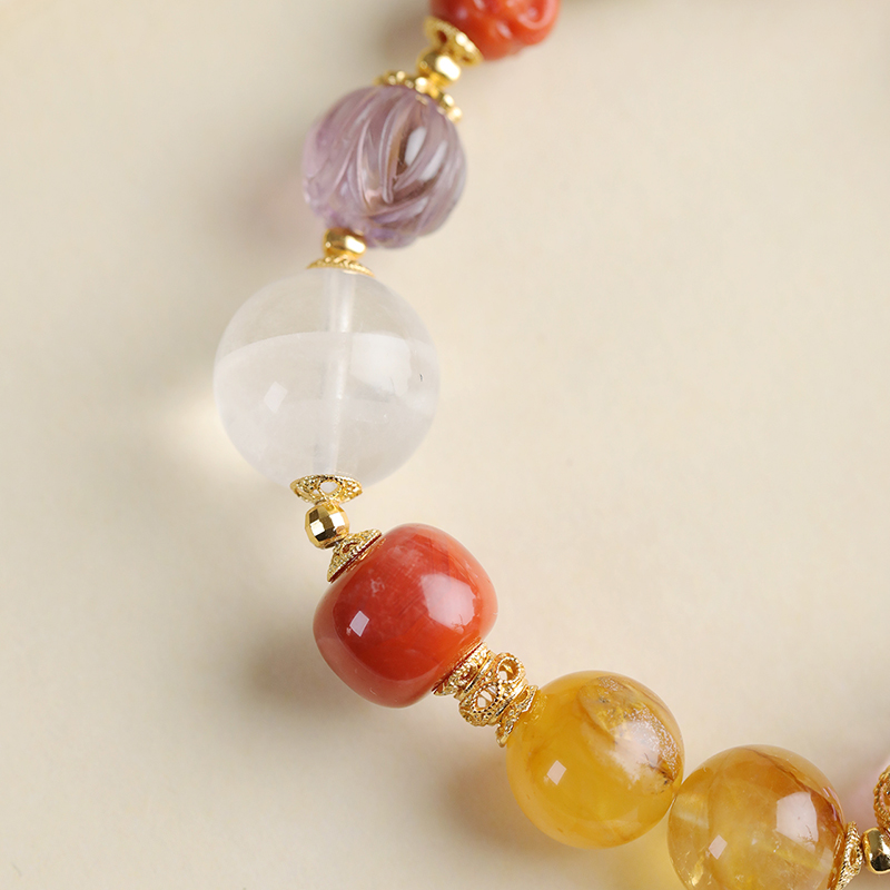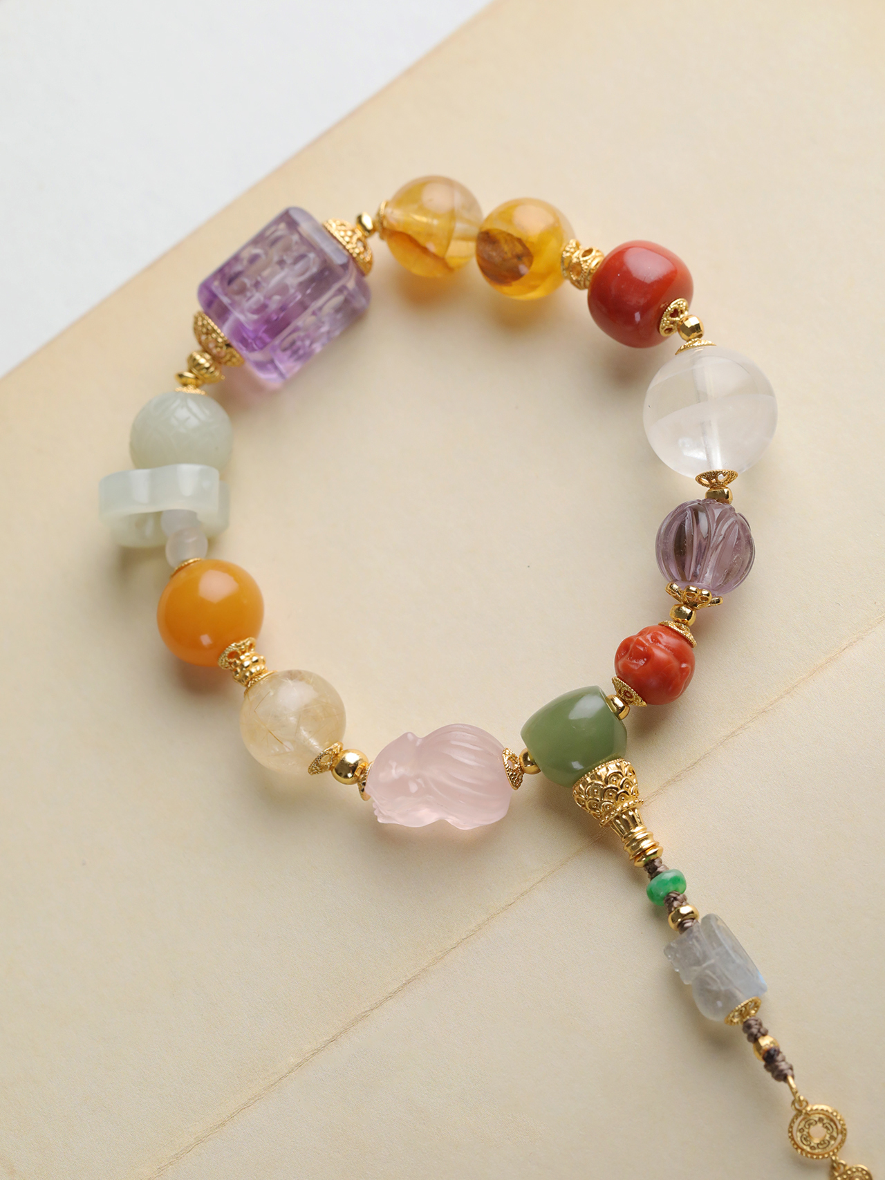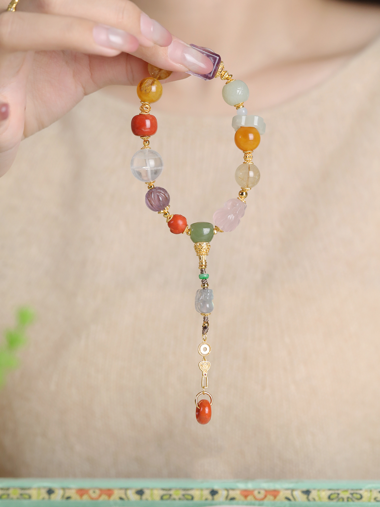 材质:水晶多宝、蜜蜡、南红、碧玉、925银