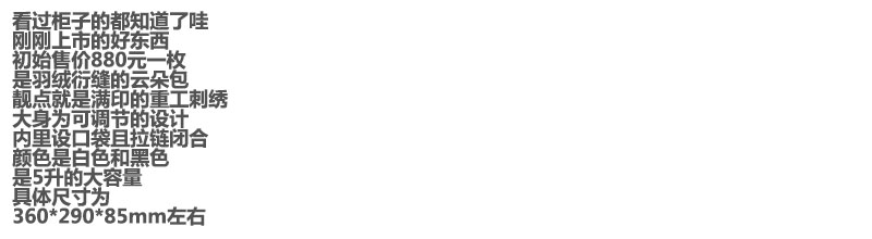云朵单肩包,重工刺绣工艺。羽绒衍缝大容量瑜伽托特包包C112858
