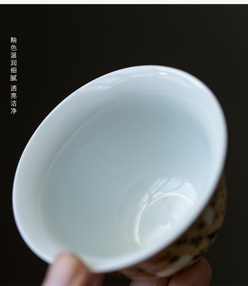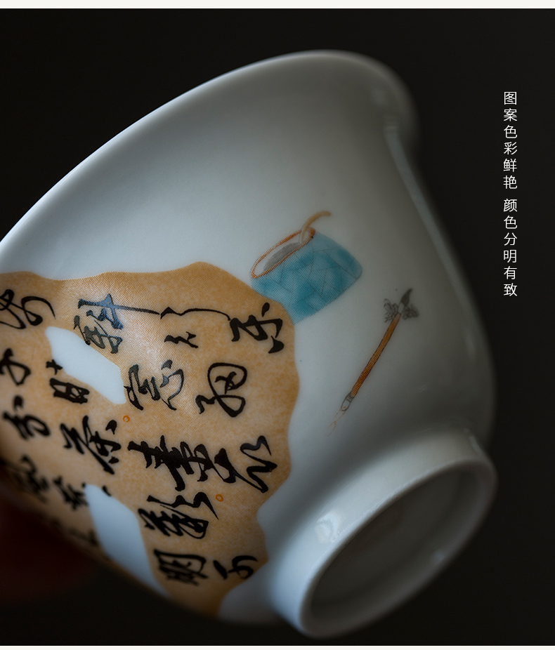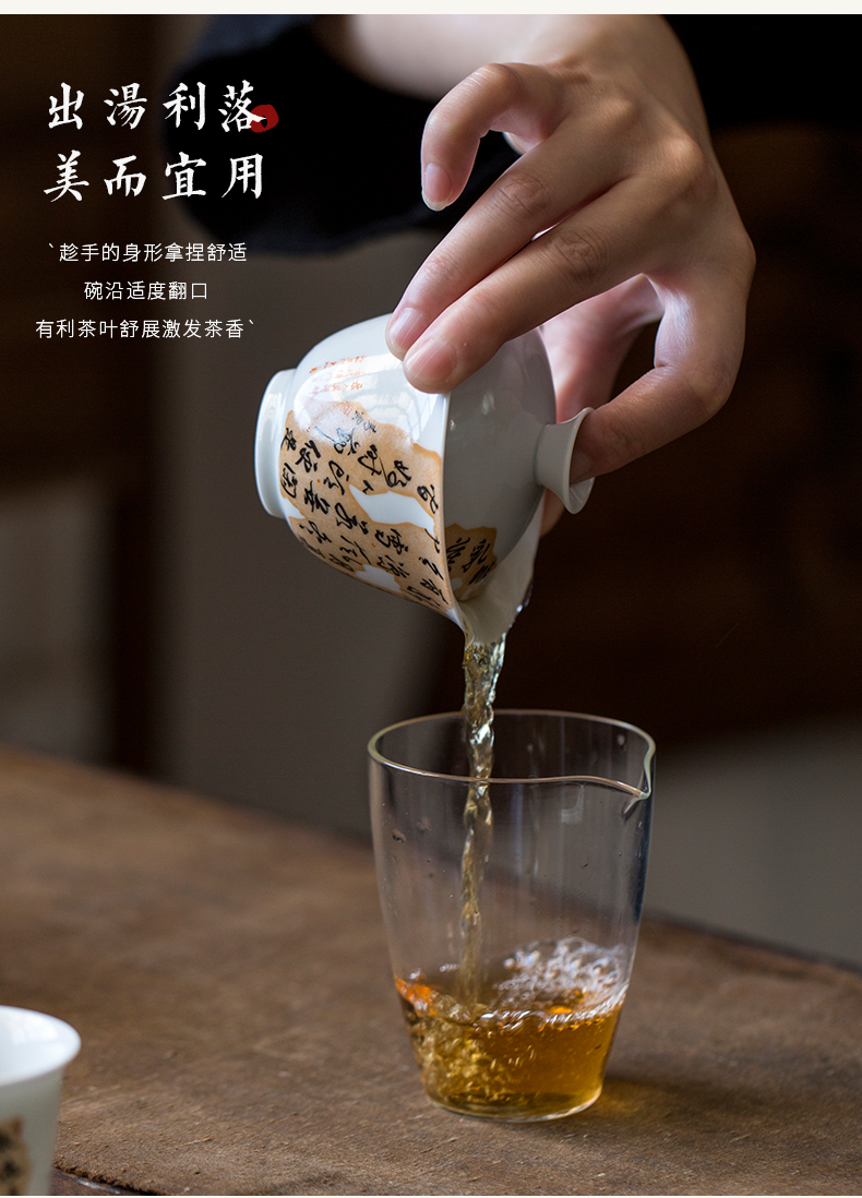 永利汇手工泡茶碗茶杯不烫手功夫茶具茶艺手写残句诗文盖碗复古