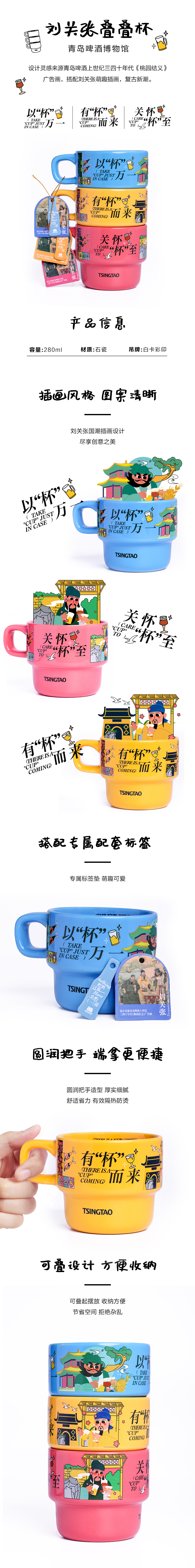 青岛啤酒博物馆 刘关张叠叠杯马克杯2024 青岛啤酒 官方文创