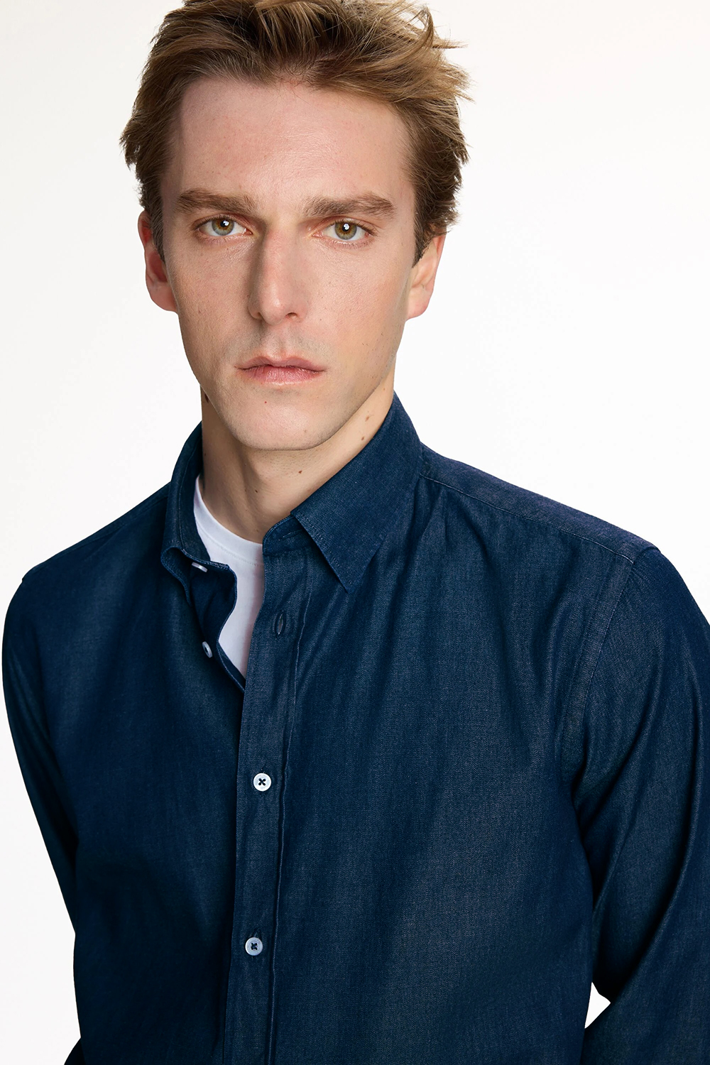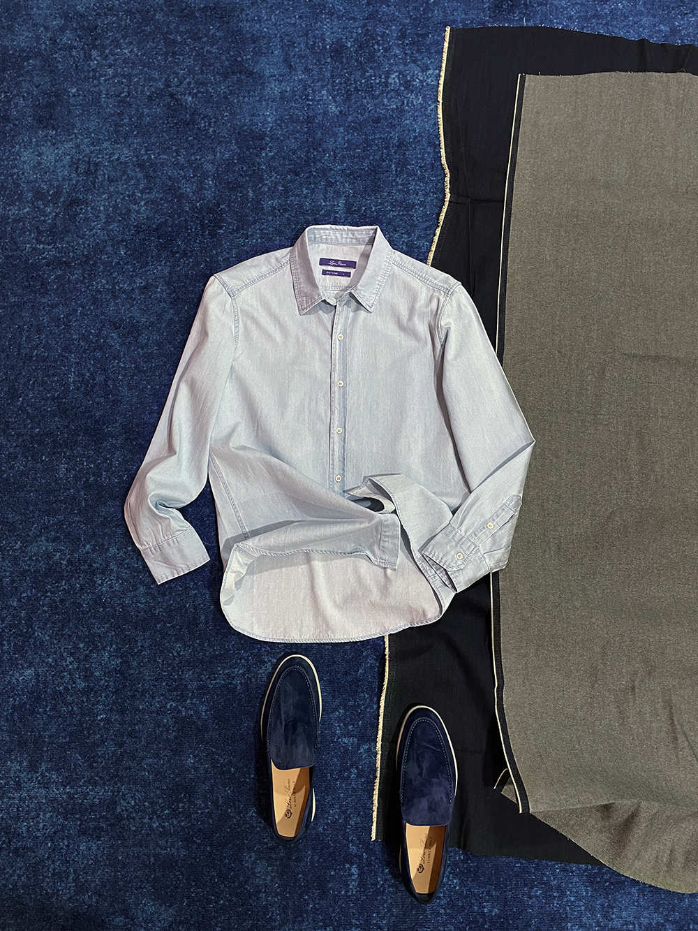 【3x-549V314】紫标系列!男子羔品质商务休闲牛仔长袖衬衫!!