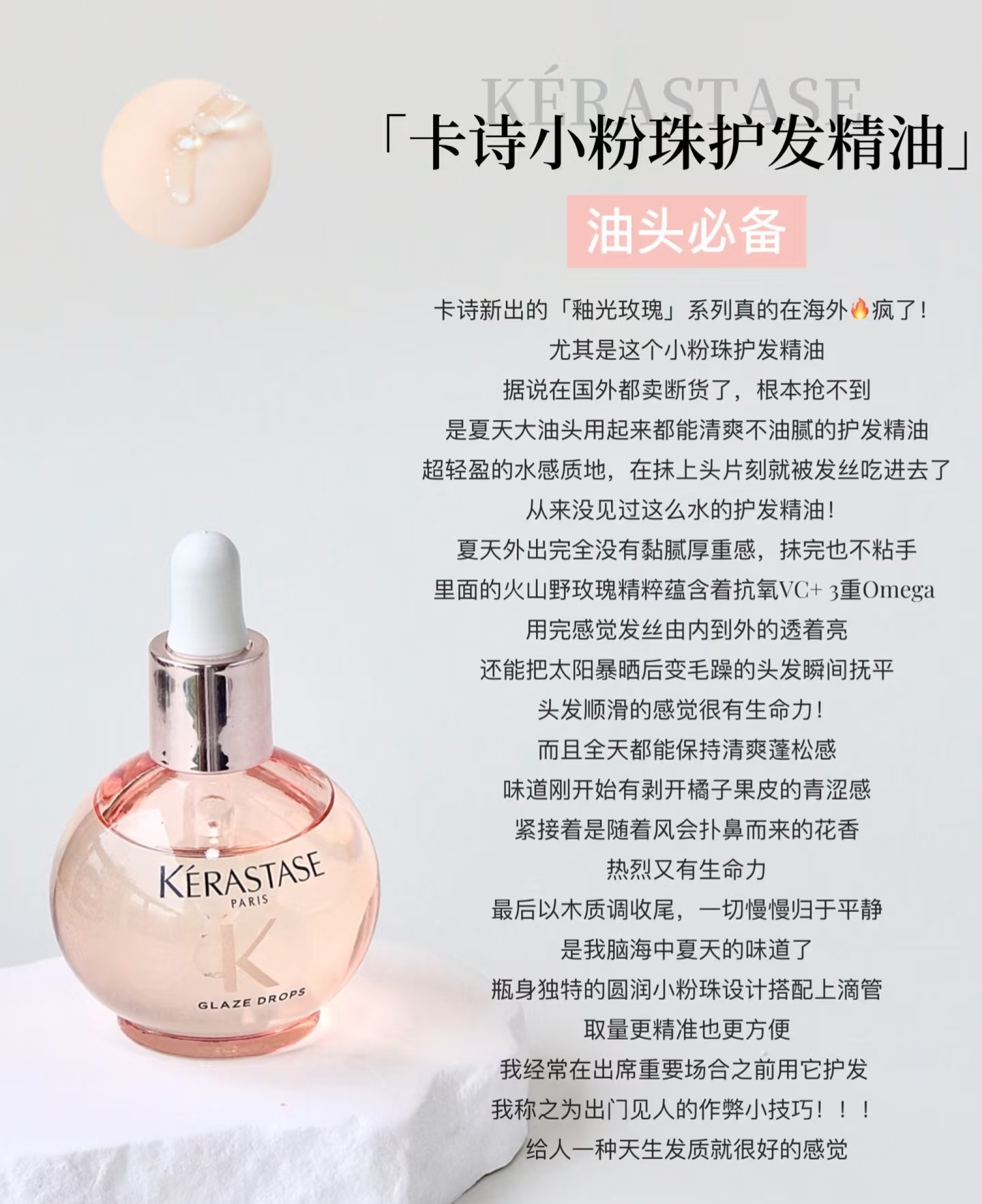 水油感质地,涂抹秒吸收,不油腻,油头也能安心用。