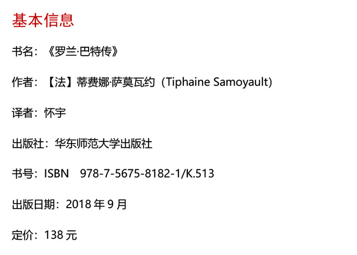 罗兰·巴特传 Roland Barthes 传记 法国文学 精装