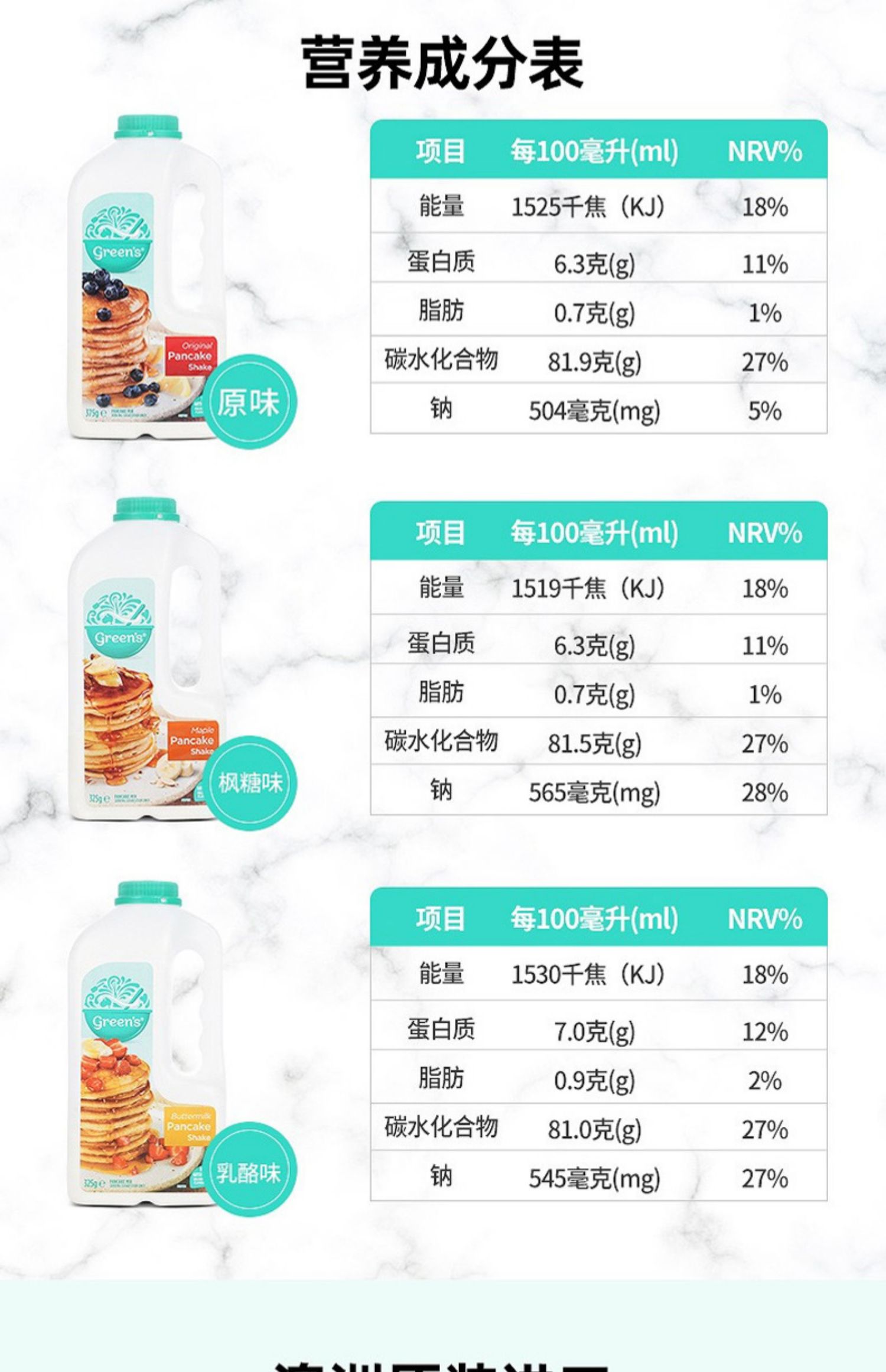 【澳洲原装进口】Greens松饼预拌粉375g煎饼粉华夫饼西式糕点蛋糕营养早餐烘焙