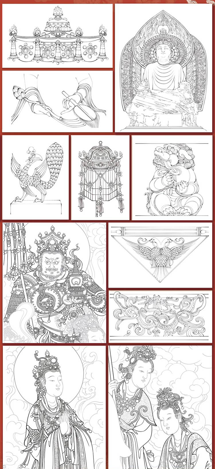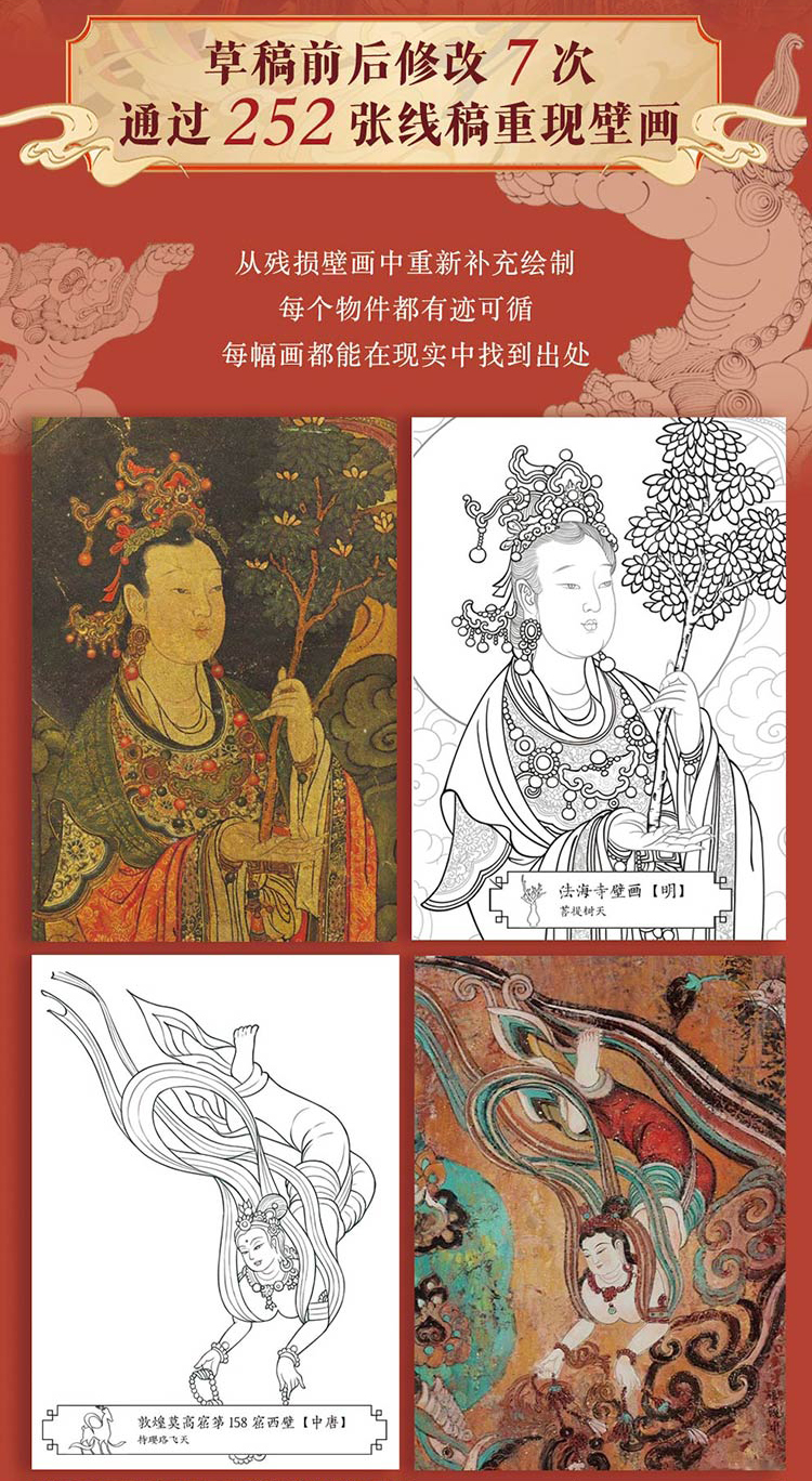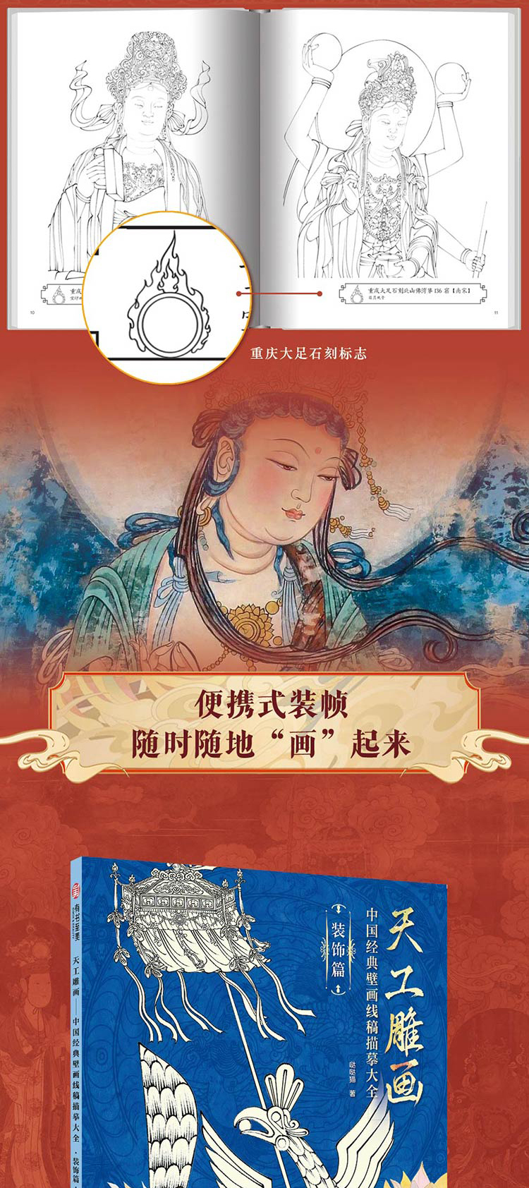 《天工雕画》(全4册) | 能描线涂色的石窟壁画书!一书三用,能玩能看,更懂东方审美的佛系减压书!赠檀香型描金笔+10支笔芯