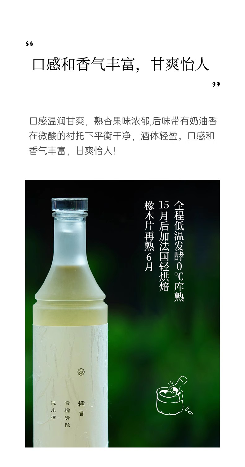 【尝鲜小支装】糯言·雪糯清酿纯米酒350ml百分百纯糯米酿造当代表达