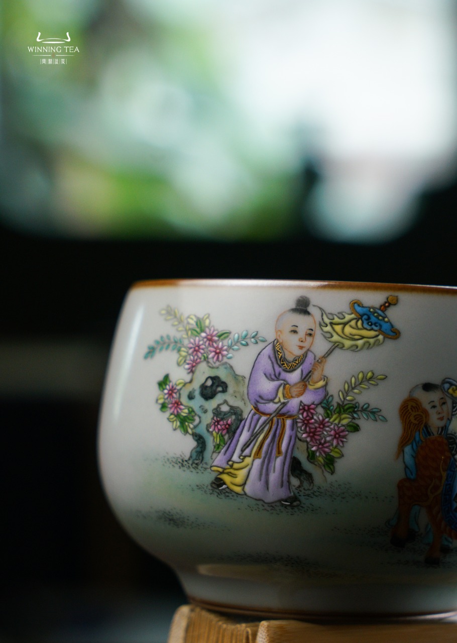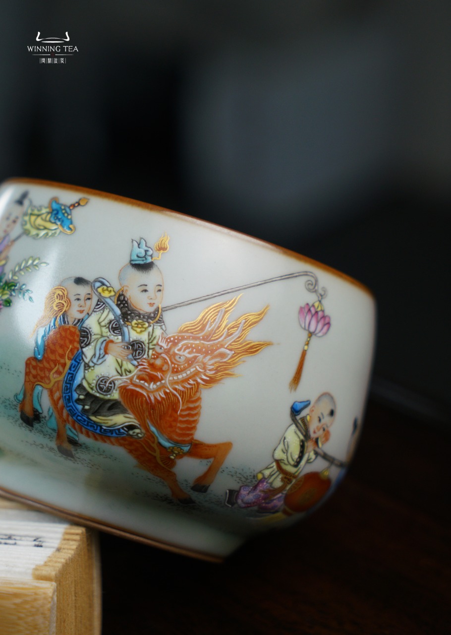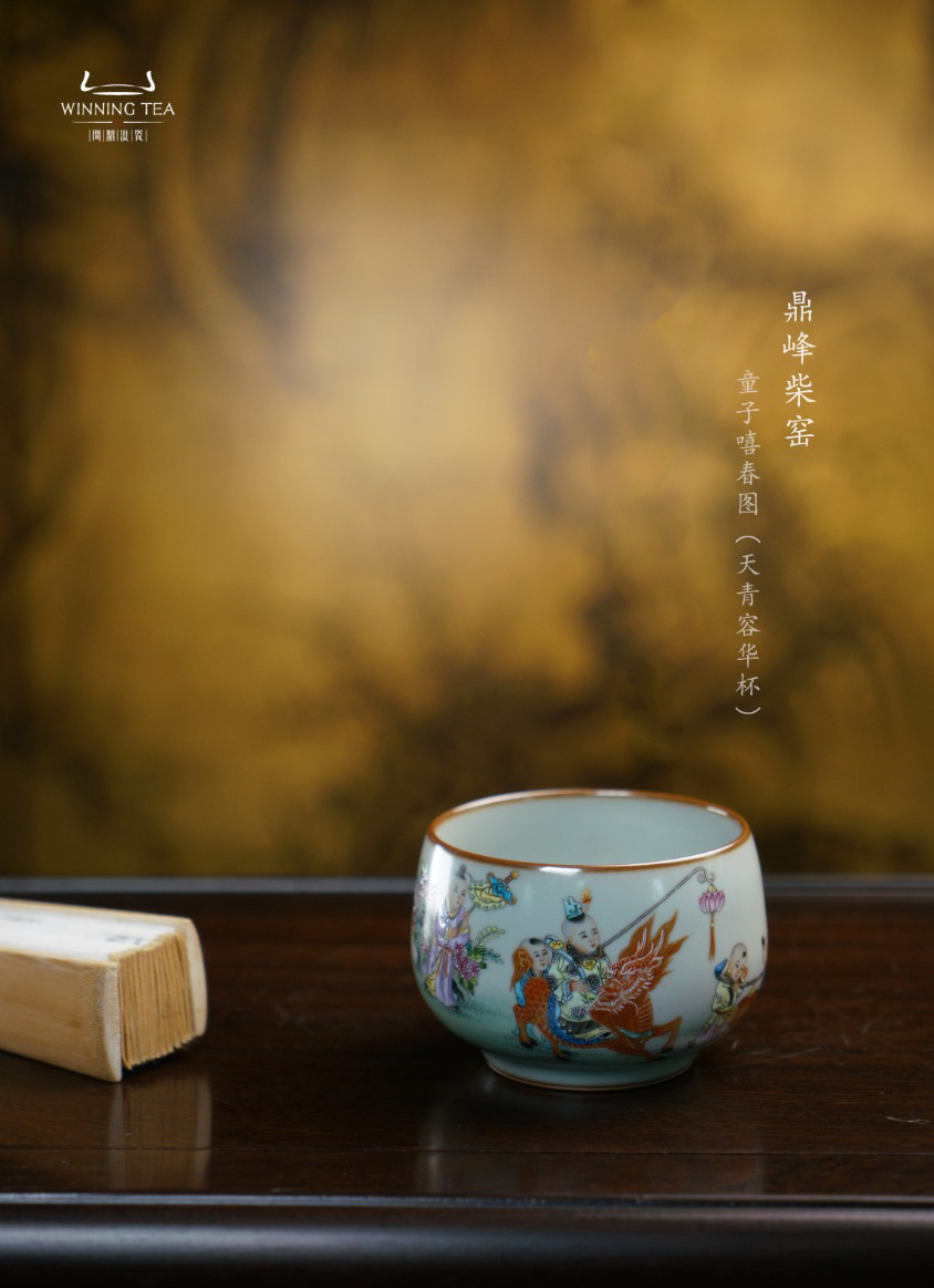 问鼎汝瓷鼎峰柴窑天青容华杯(童子嘻春图)(缺货)