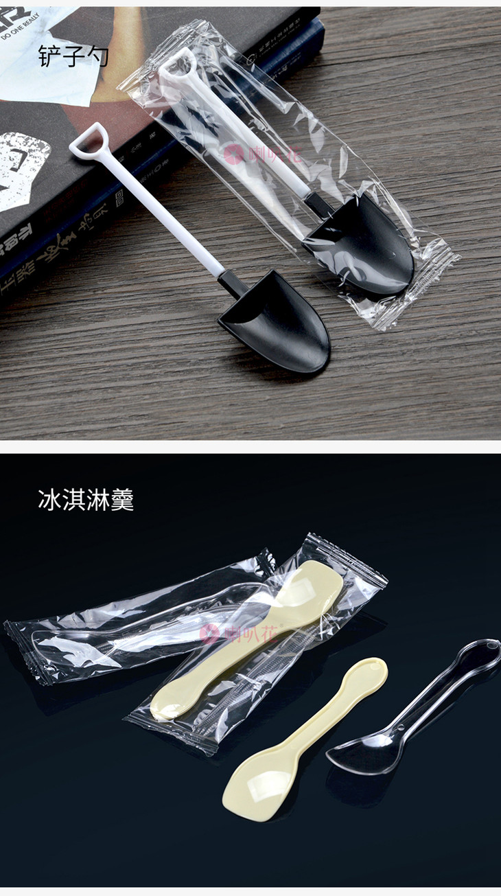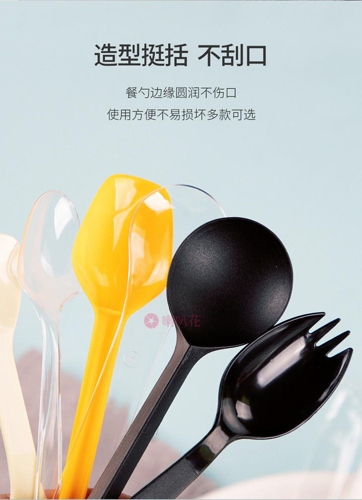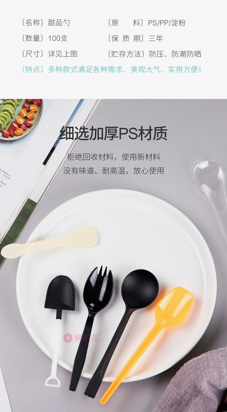 喇叭花透明一次性塑料勺子布丁勺酸奶勺冰淇淋勺雪糕勺甜品勺铲子勺100支