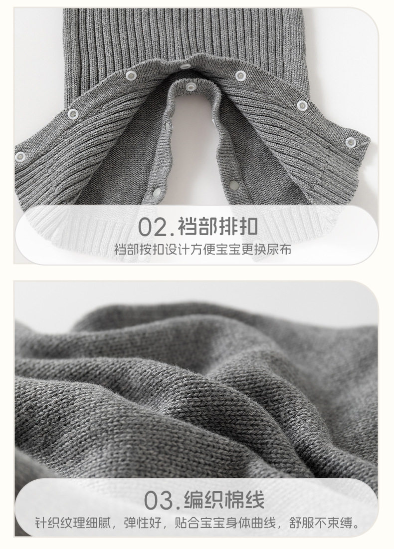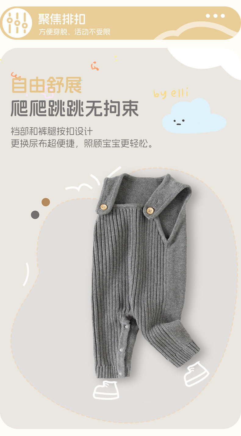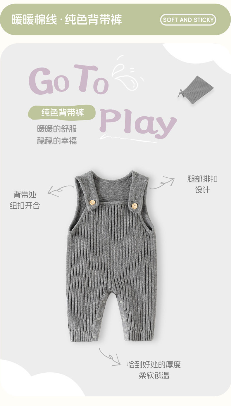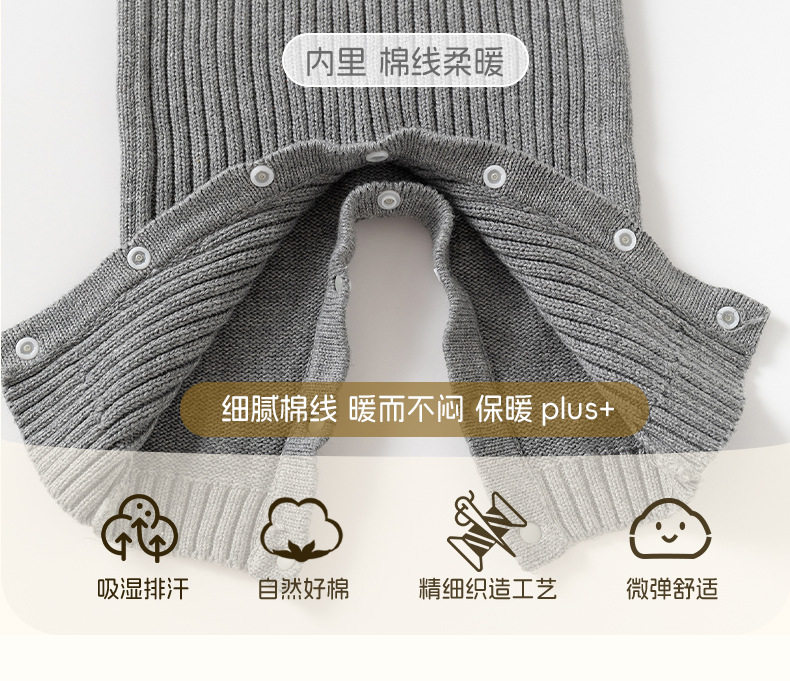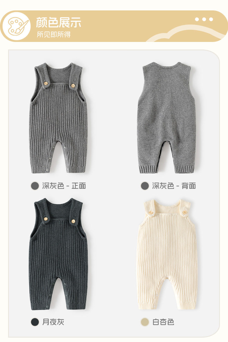 韩版纯色婴儿连体衣纯棉A类跨境ins风婴儿背带裤秋冬款婴儿毛线裤