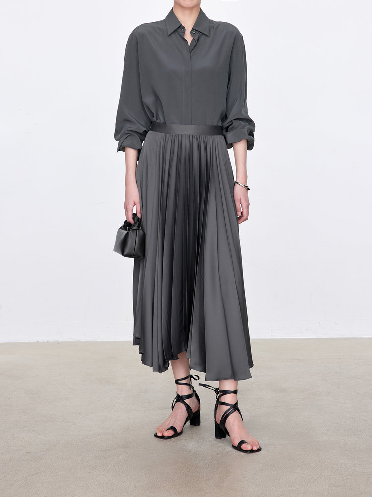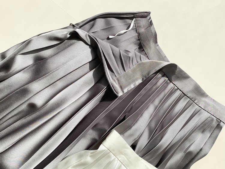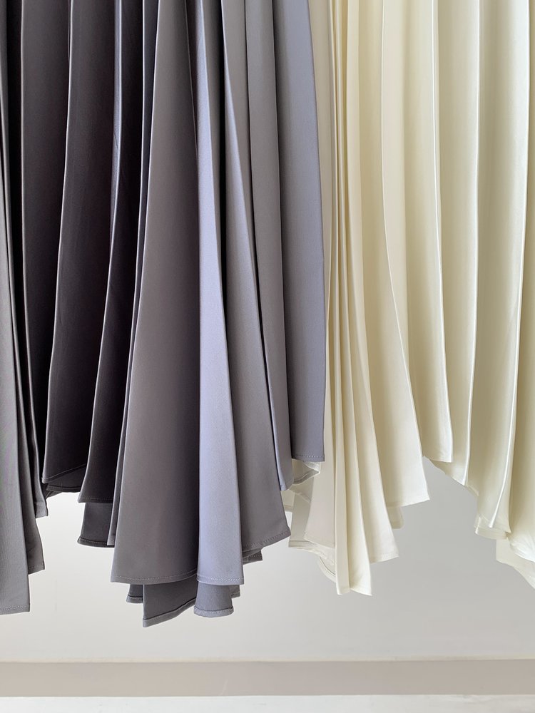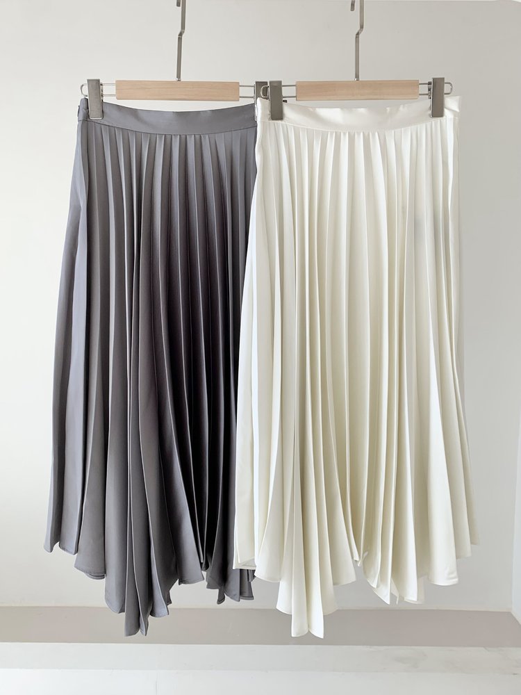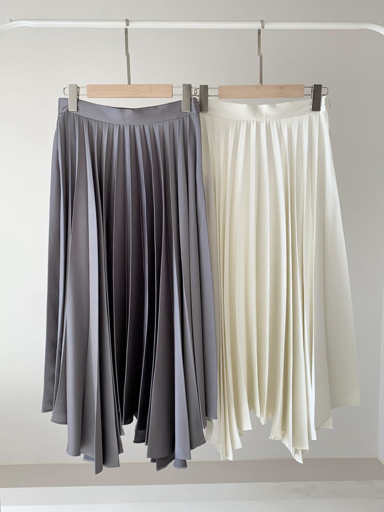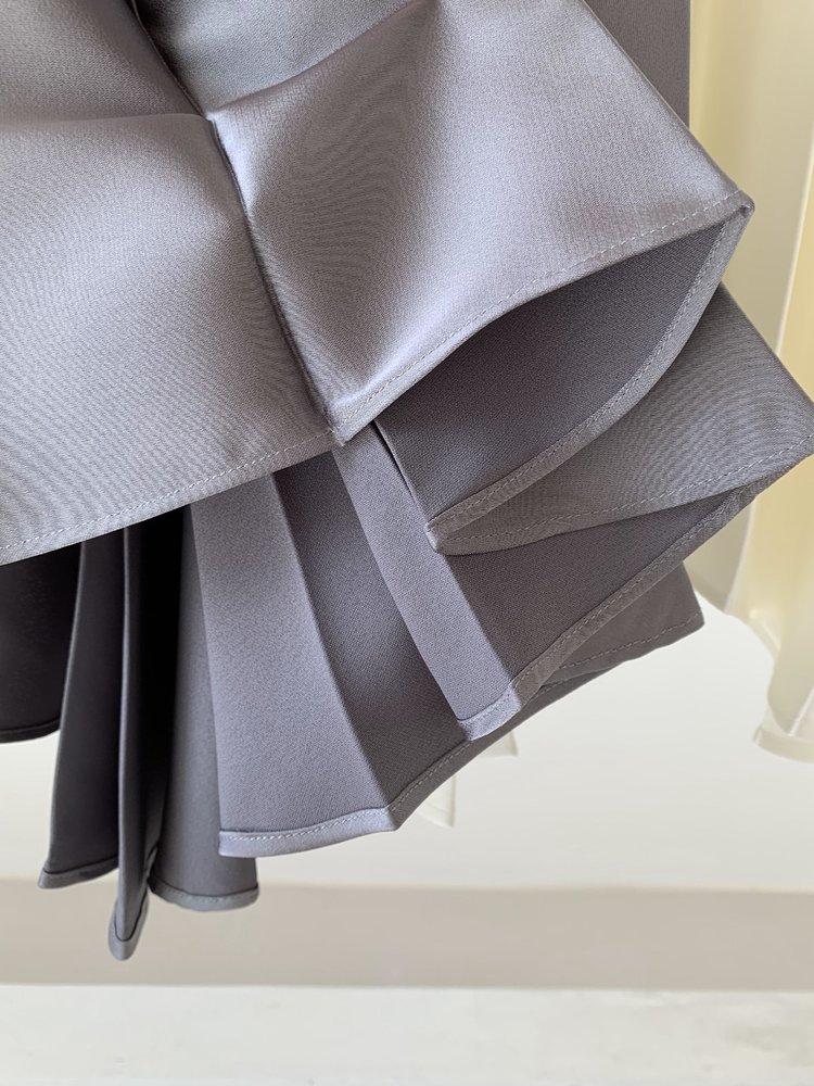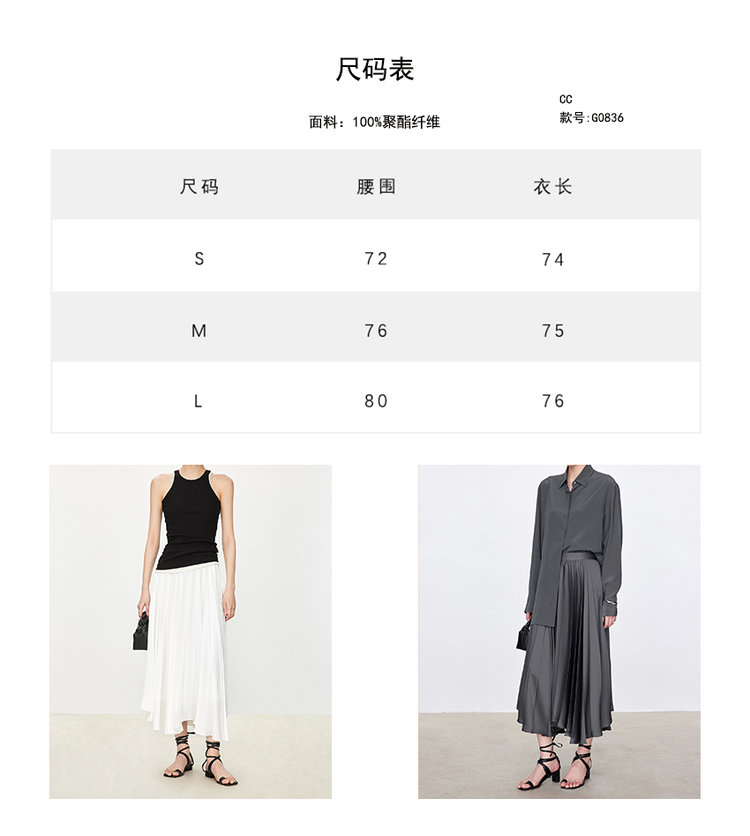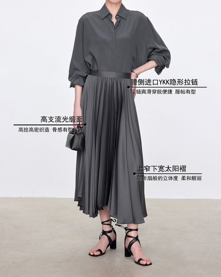 流光缎面扇形不规则百褶裙半裙 大体量有宽度的褶皱 造型感十足 重工立体扇形太阳褶 立裁A字裙型 中长长度显高显瘦G0836