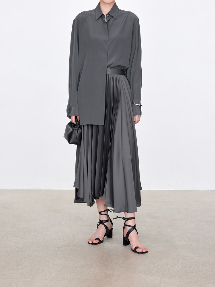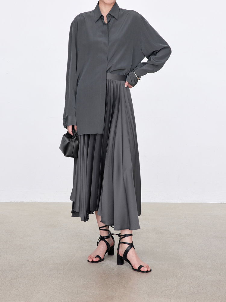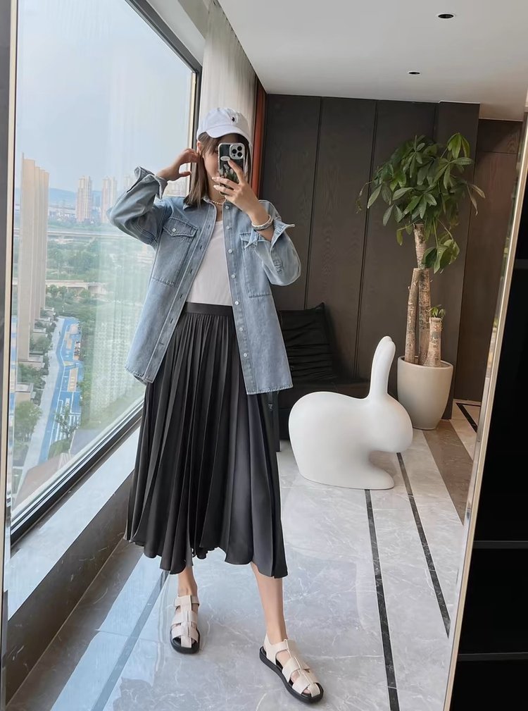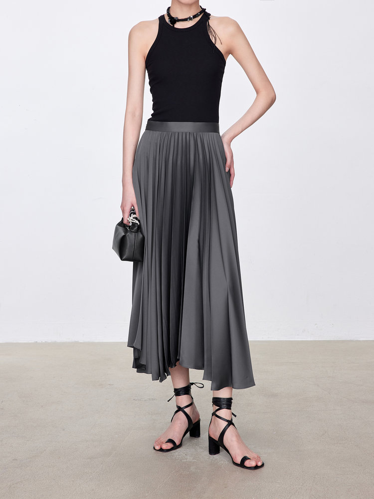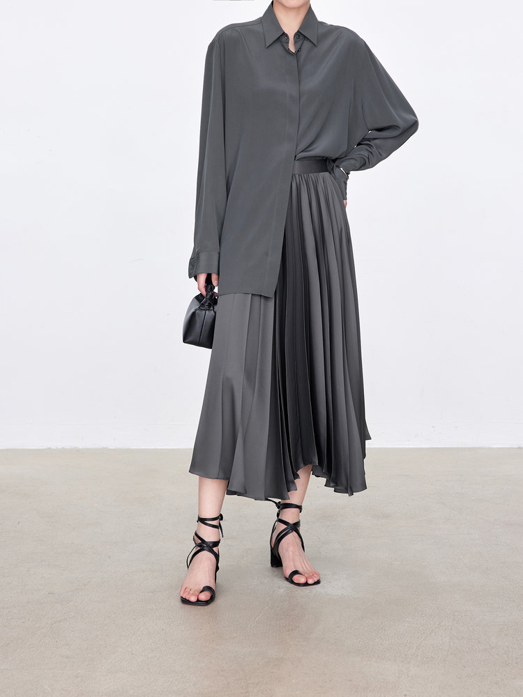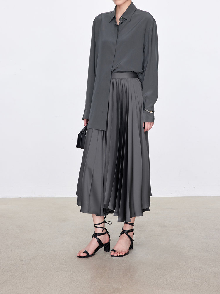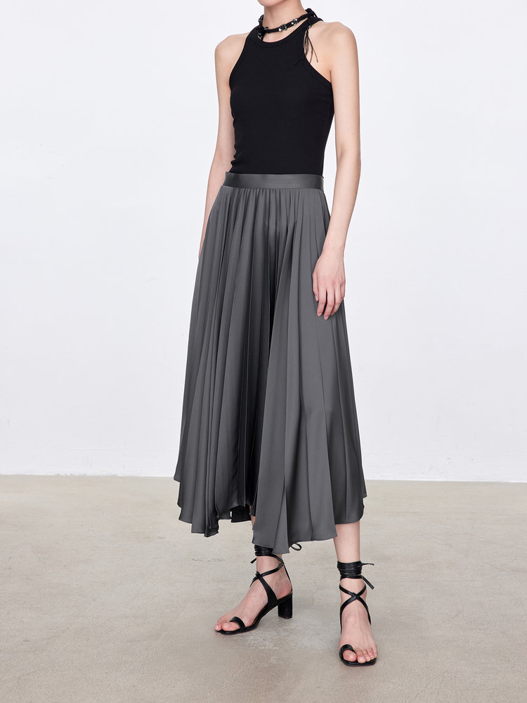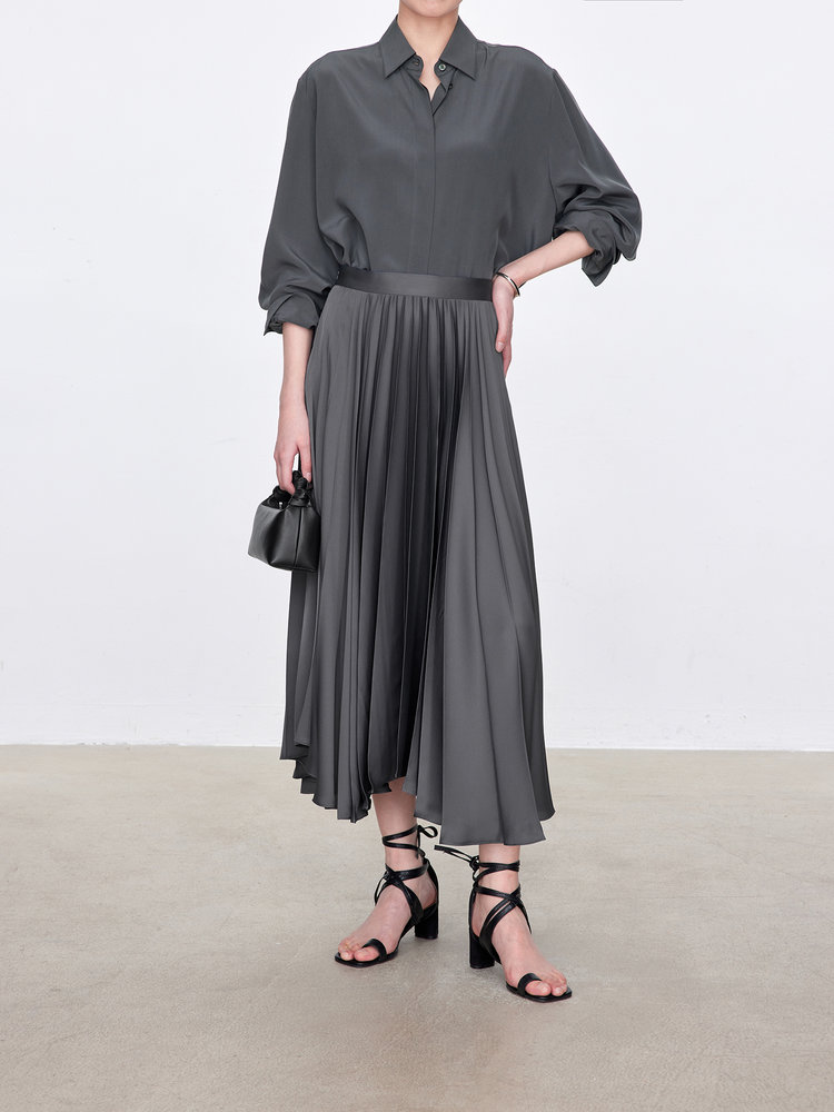 流光缎面扇形不规则百褶裙半裙 大体量有宽度的褶皱 造型感十足 重工立体扇形太阳褶 立裁A字裙型 中长长度显高显瘦G0836