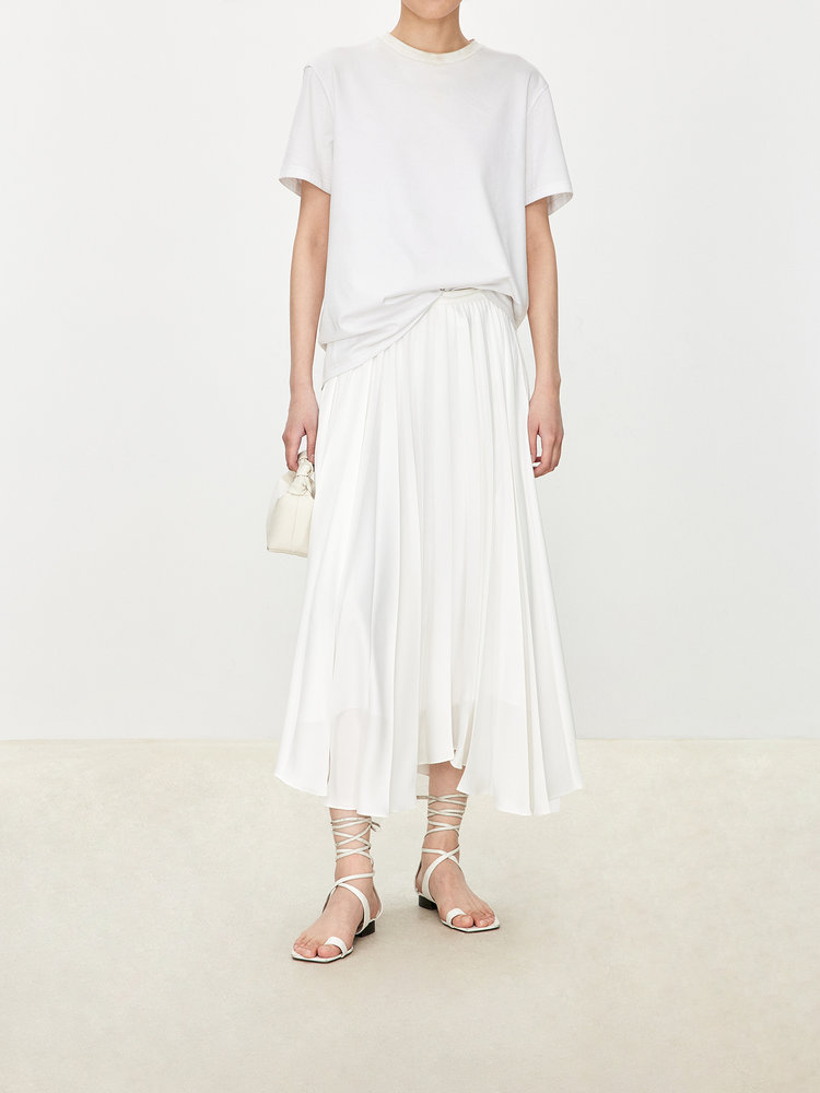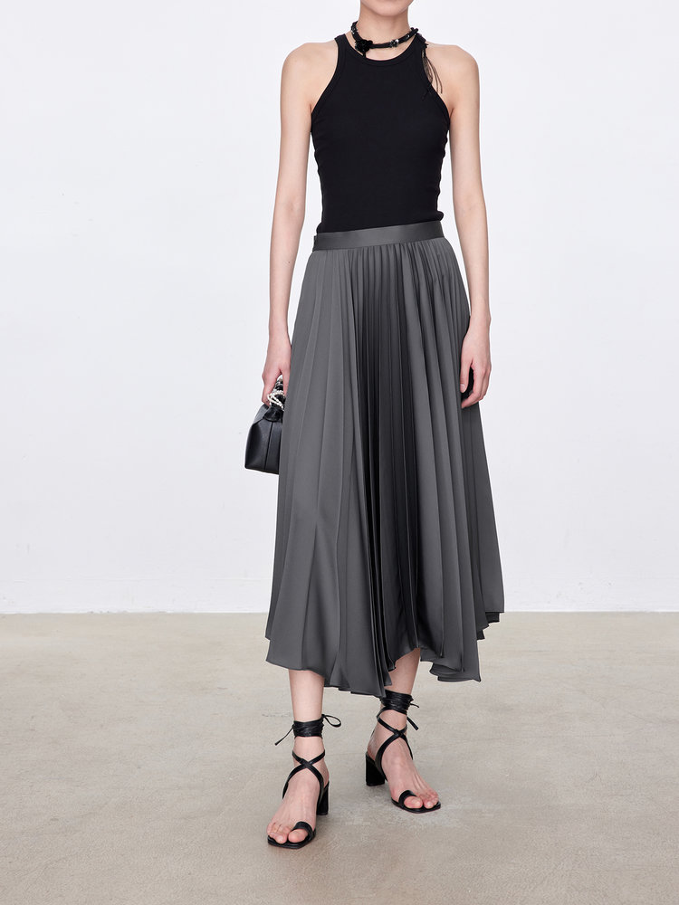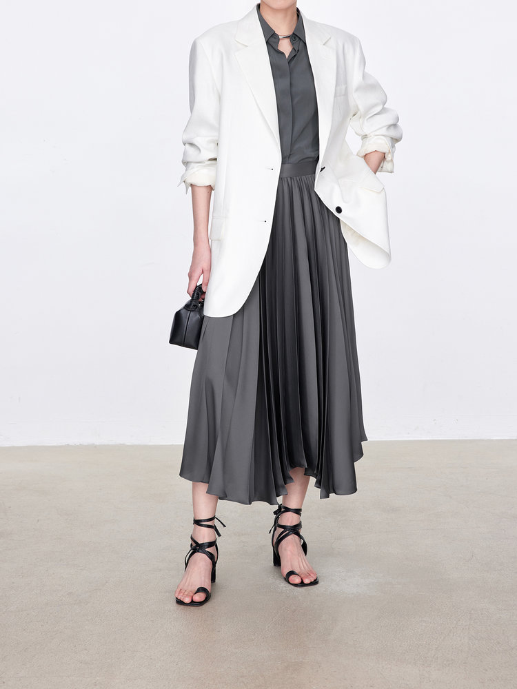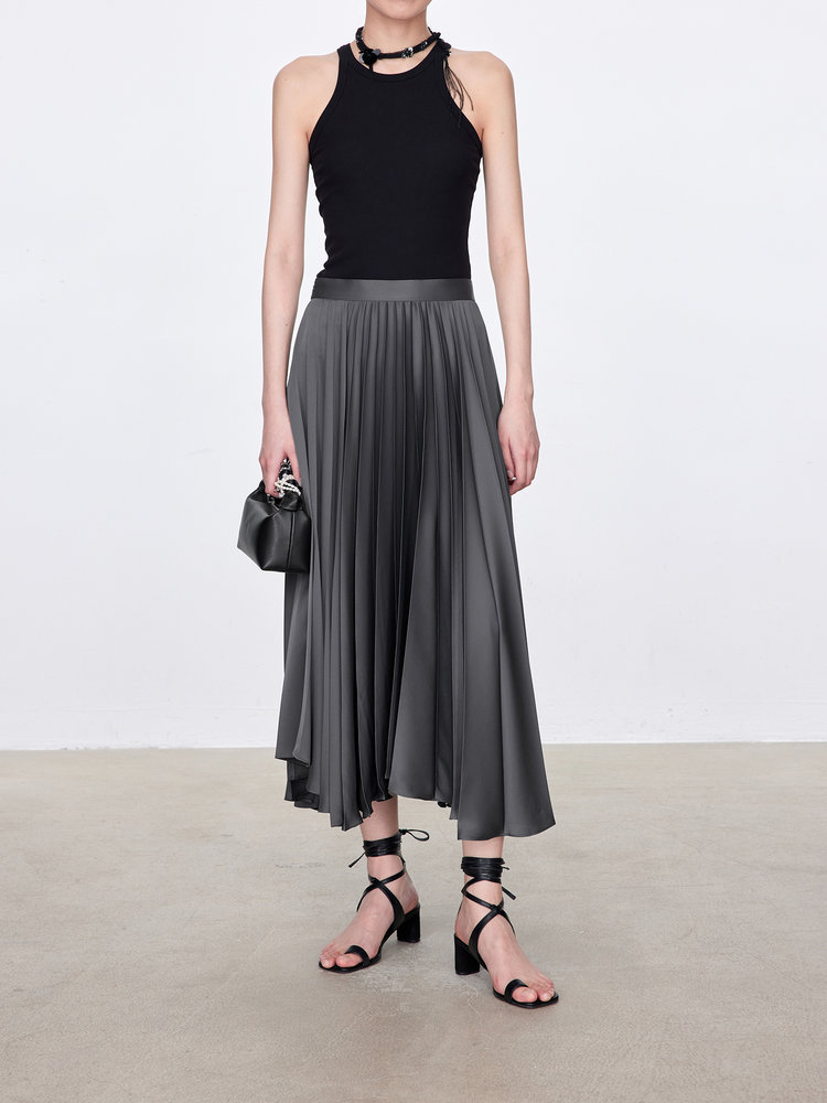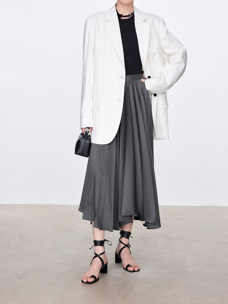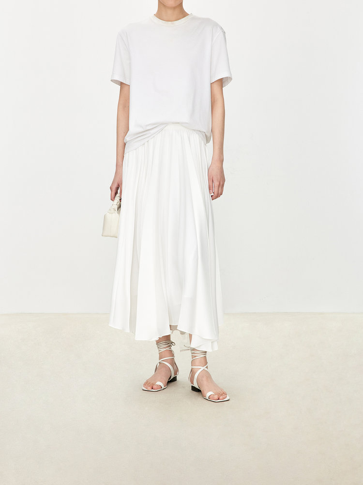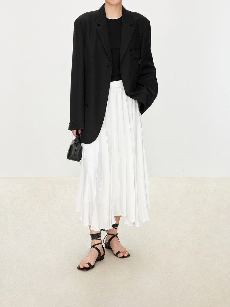 流光缎面扇形不规则百褶裙半裙 大体量有宽度的褶皱 造型感十足 重工立体扇形太阳褶 立裁A字裙型 中长长度显高显瘦G0836