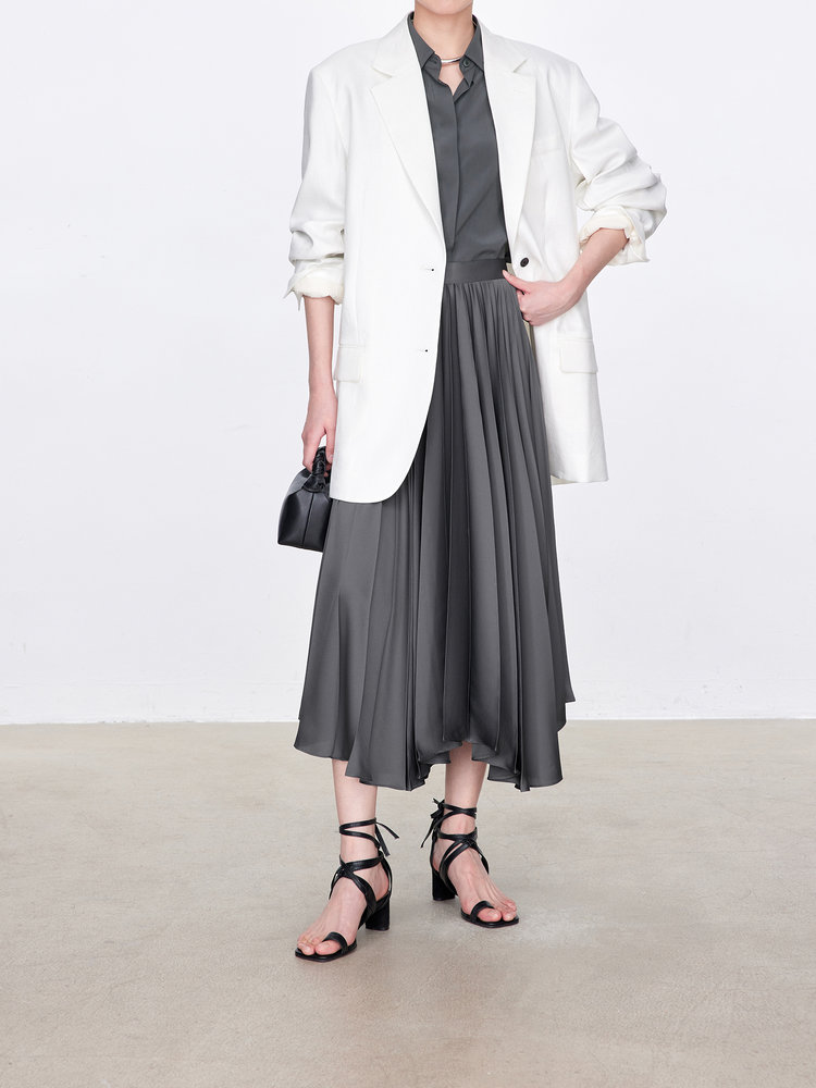 百褶裙凭借气质高级时髦百变,好驾驭的优势,迅速成为风靡街拍和各大奢牌秀场的王炸单品,翩翩而动的立体褶皱总与春夏穿搭格外合拍。